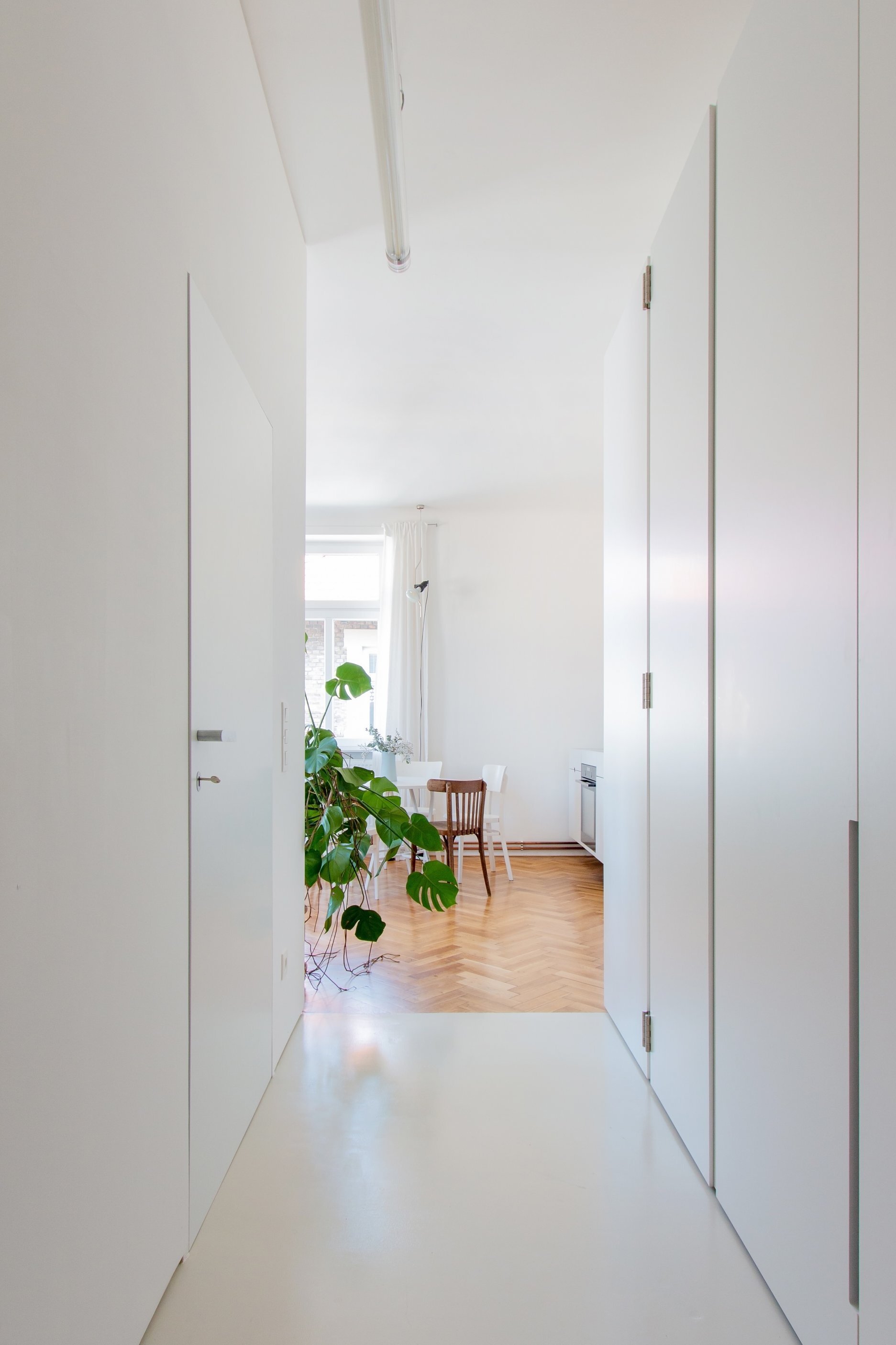 Byt v sebe nesie tichý dialóg medzi históriou a súčasnosťou. Prítomnosť zachovaných vrstiev je stále čitateľná, ale dostáva nový rytmus. Priznáva vkladané. Intervencia si uvedomuje mierku priestoru aj mieru zásahu – s rešpektom, ale aj s ambíciou vytvoriť súčasné bývanie s charakterom.