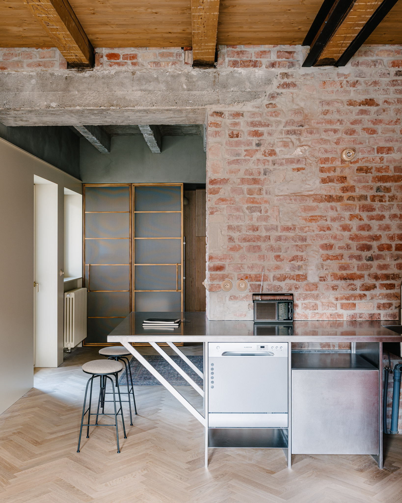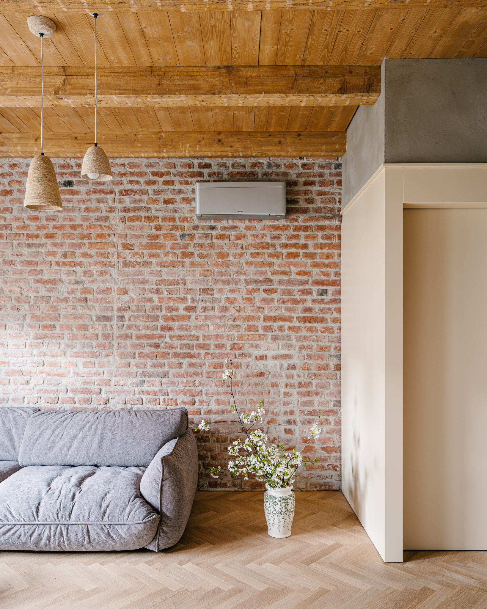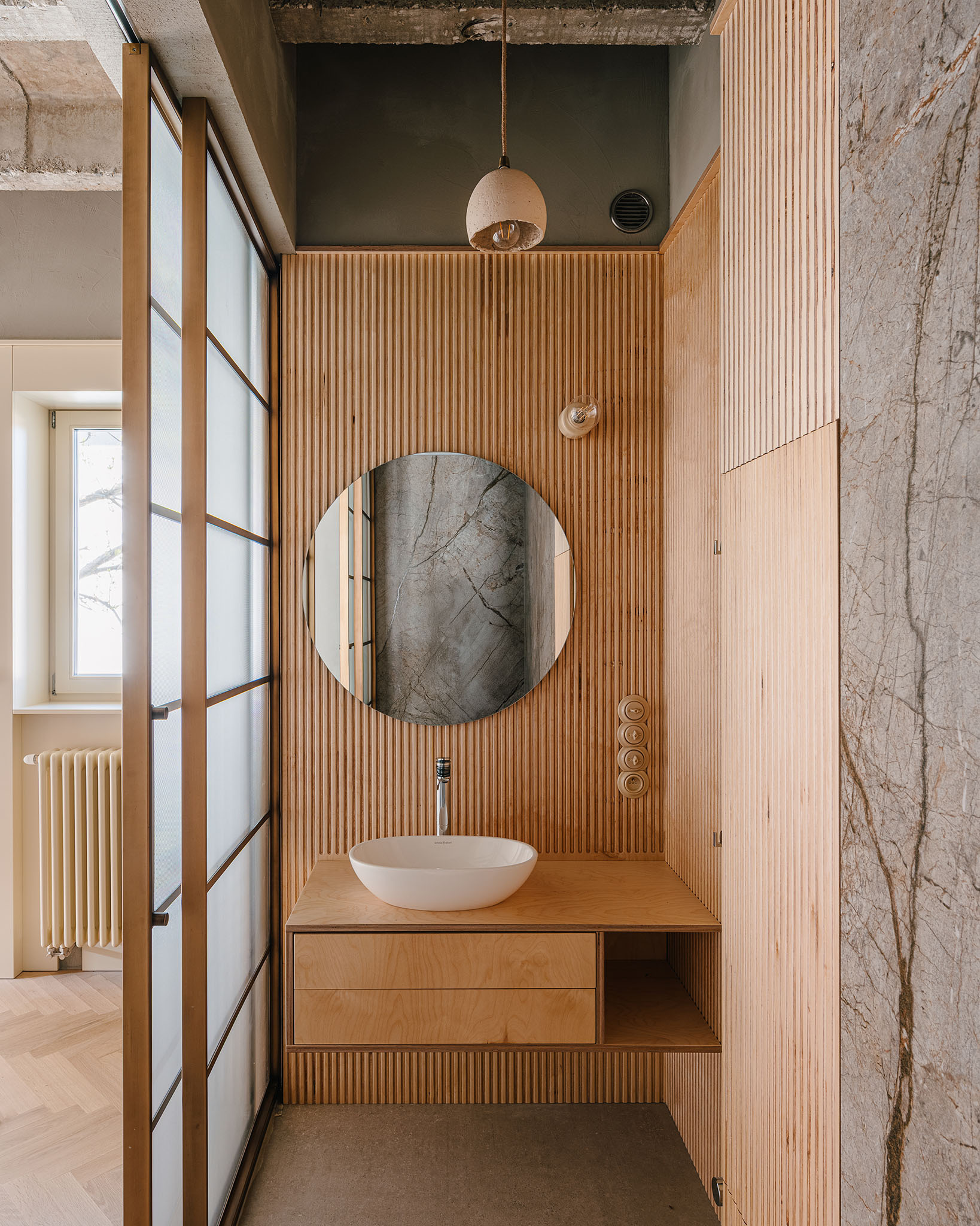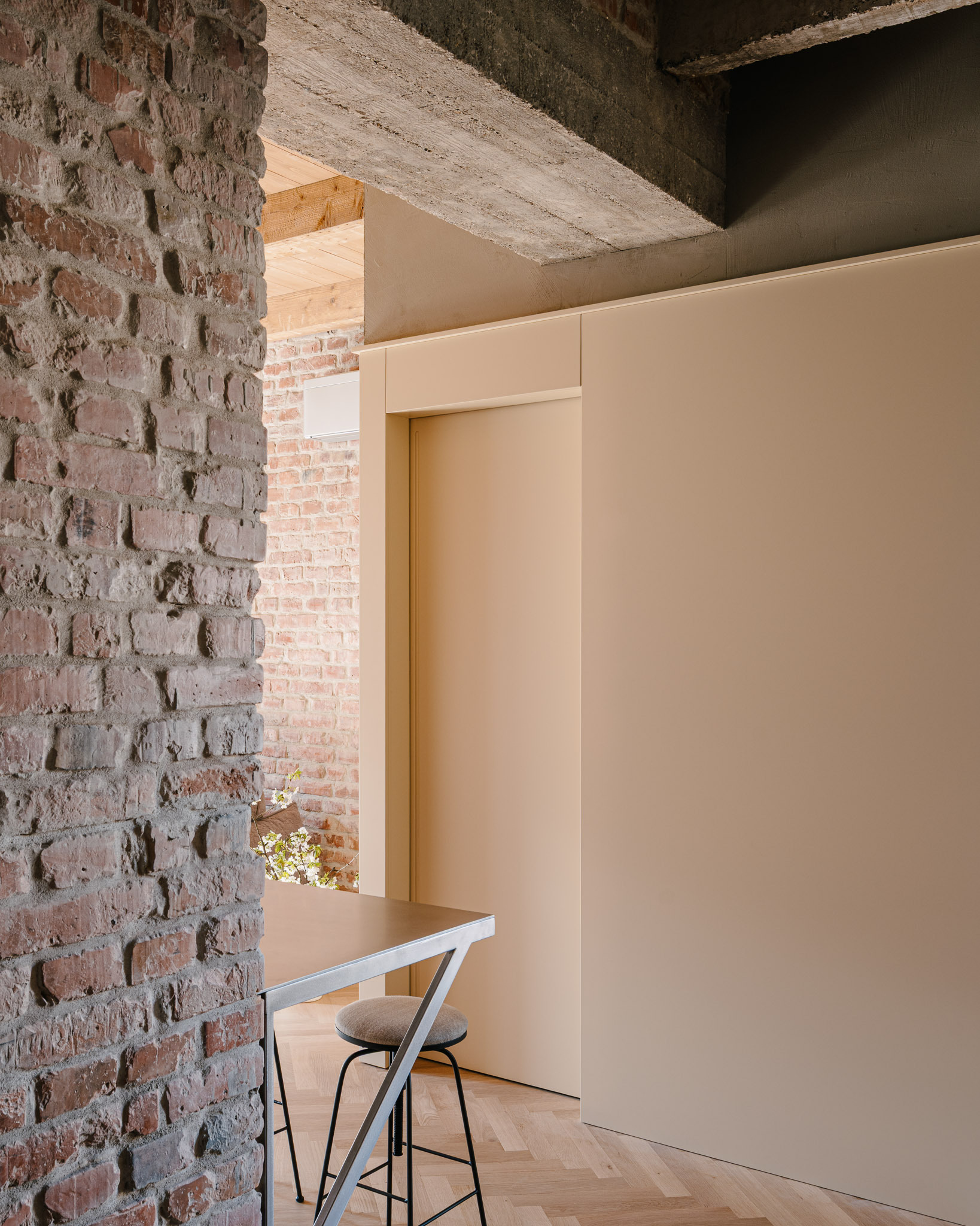 Celý priestor je poctou remeslu a pravdivosti materiálov – bez zbytočného prikrášľovania, zato s dôrazom na detail, autenticitu a architektonickú úprimnosť.