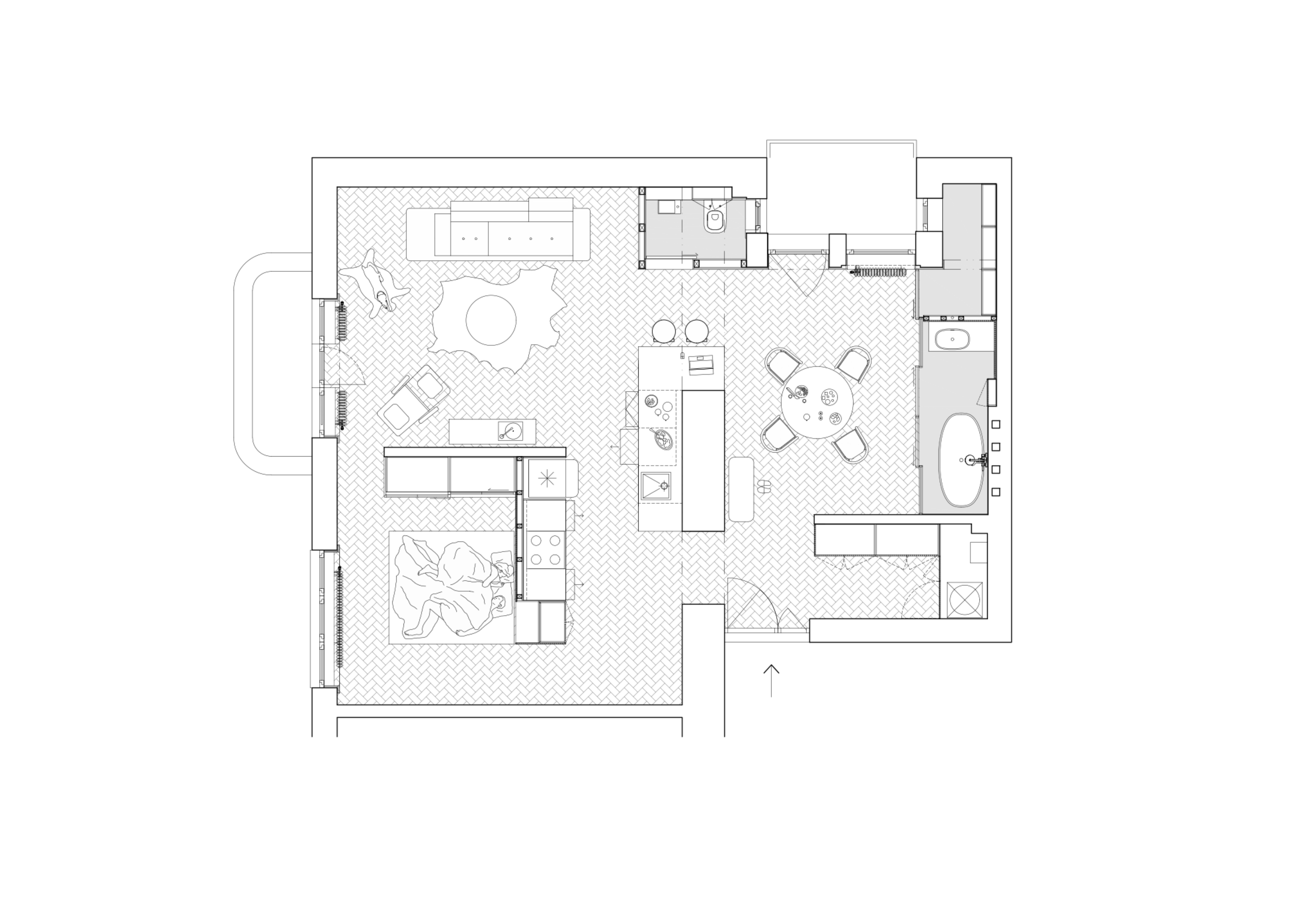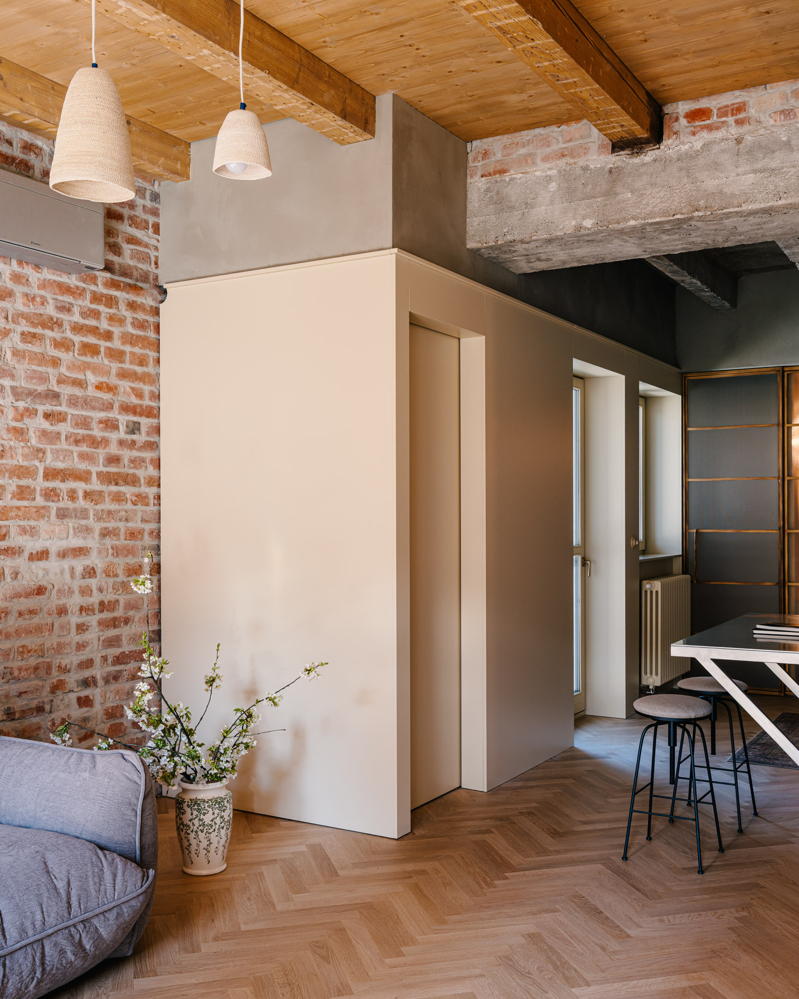 Bývanie v bratislavskom Starom Meste s výrazným rukopisom ateliéru TOITO architekti. Nosnou témou ráznej rekonštrukcie bytu sú aj v tomto prípade premyslené stavebné úpravy, odhalenie  pôvodných vrstiev a konštrukcií. Dôležitú súčasť bývania šitého na mieru tvoria precízne nábytkové solitéry, definujúce jednotlivé funkčné celky.