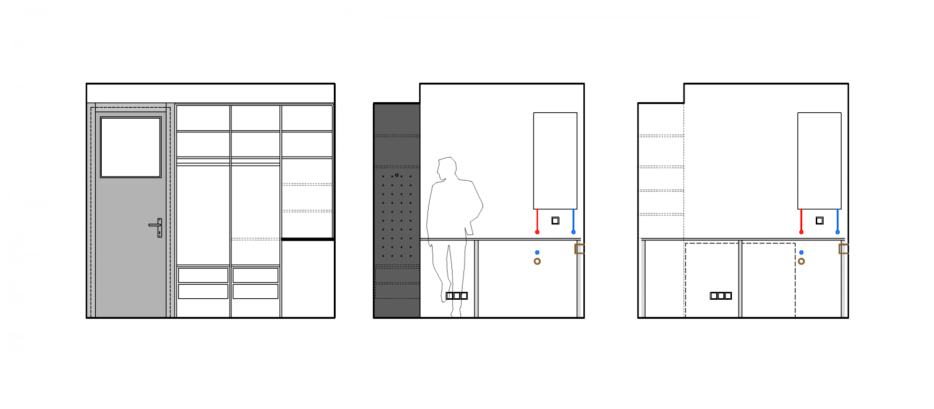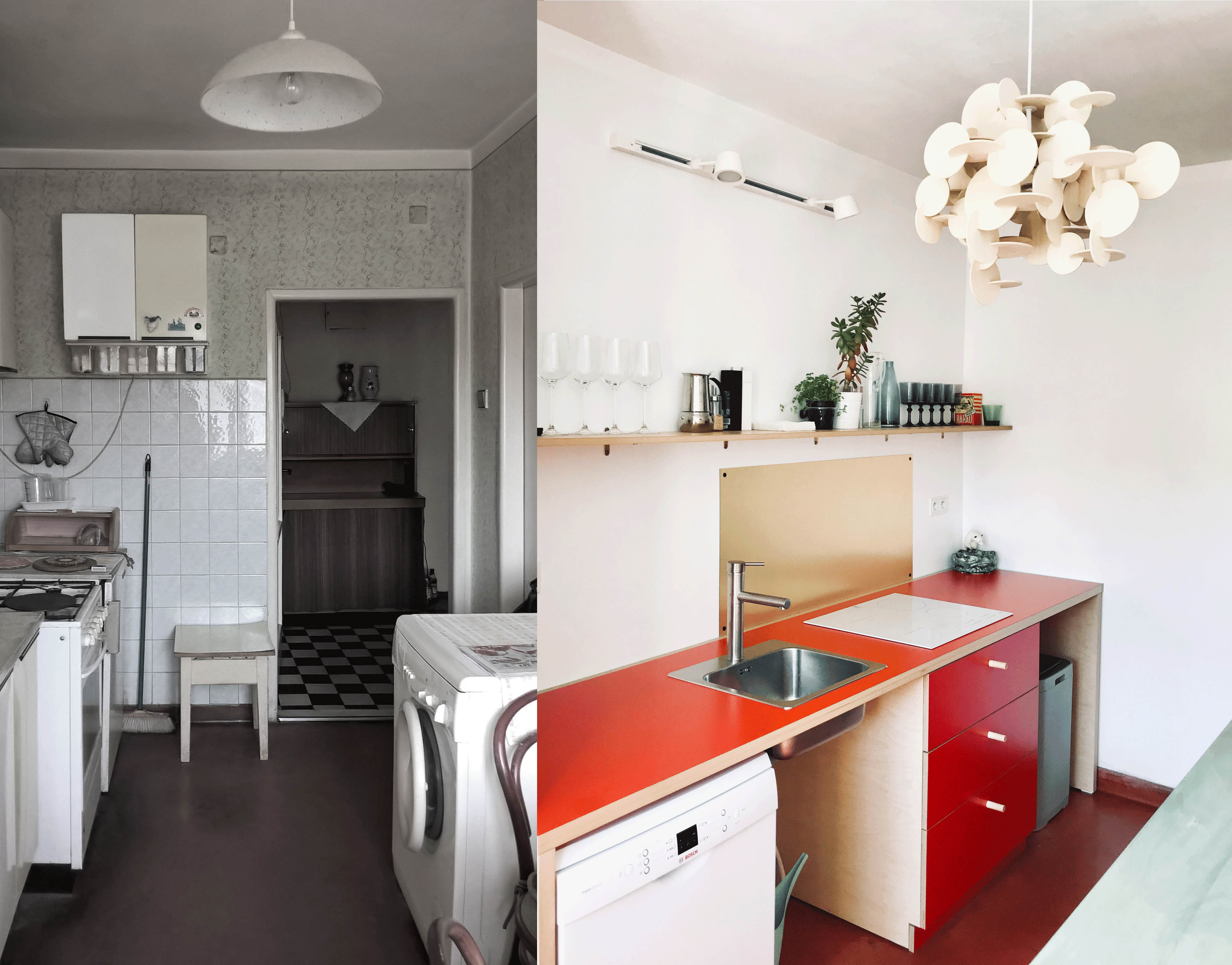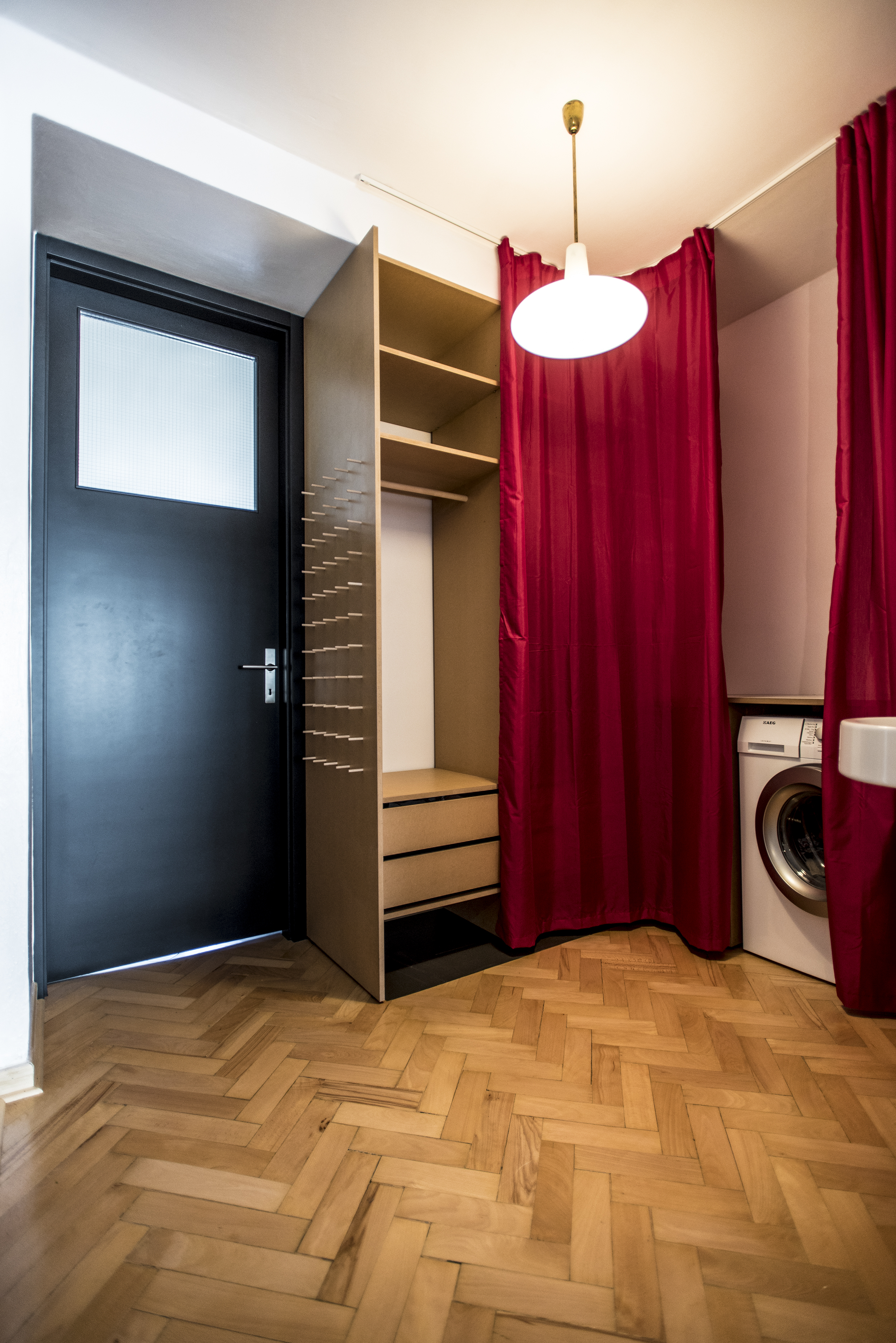 ZS: Už pred rekonštrukciou sme sa zhodli, že holý priestor bytu je vydarený, a nie je nutné ho veľmi meniť. Našim cieľom nebolo vytvoriť “byt v byte”, mali sme veľmi obmedzený rozpočet. Aj preto sme sa snažili využiť čo najviac z pôvodného interiéru, veľa úprav bolo realizovaných v vlastnej réžii a s pomocou kamarátov. Množstvo drobných detailov bolo dokončených po víkendoch, veľa vecí sa zrecyklovalo. Napríklad po bývalom majiteľovi nám ostala funkčná “československá” skriňa.
