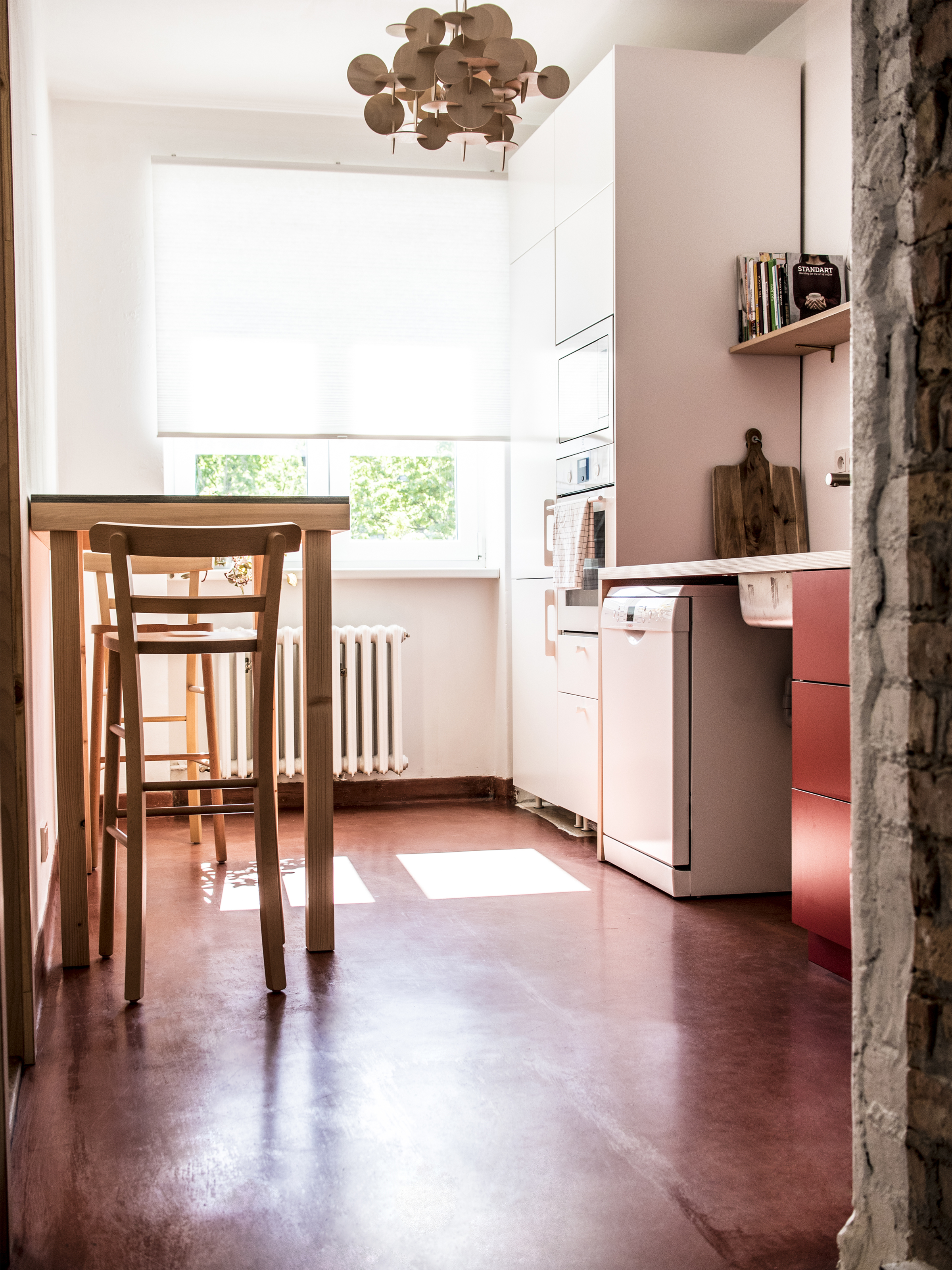 JM: Zaujal nás prechod v podlahe na mieste prahu medzi kuchyňou a chodbou. Aký zámer ste tým sledovali?