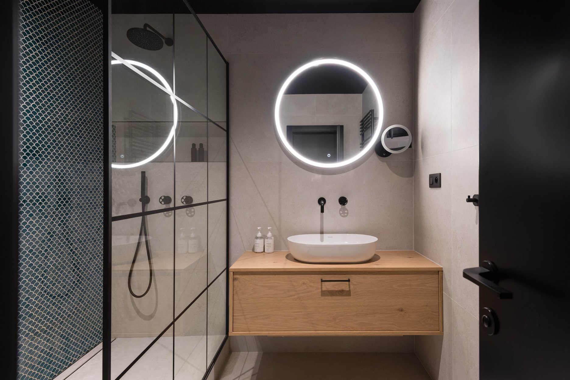 Architekti Tomáš Brbúch, Dóra Máthé a Martin Bujna z Ateliéru Gresling výrazne otvorili chodbovitú dispozíciu úzkeho preplávajúceho bytu. Uvoľnenú loftovú atmosféru interiéru podporuje nadštandardná svetlá výška priestoru. Kontrastné farebné a materiálové riešenie definuje funkčné zóny bytu.