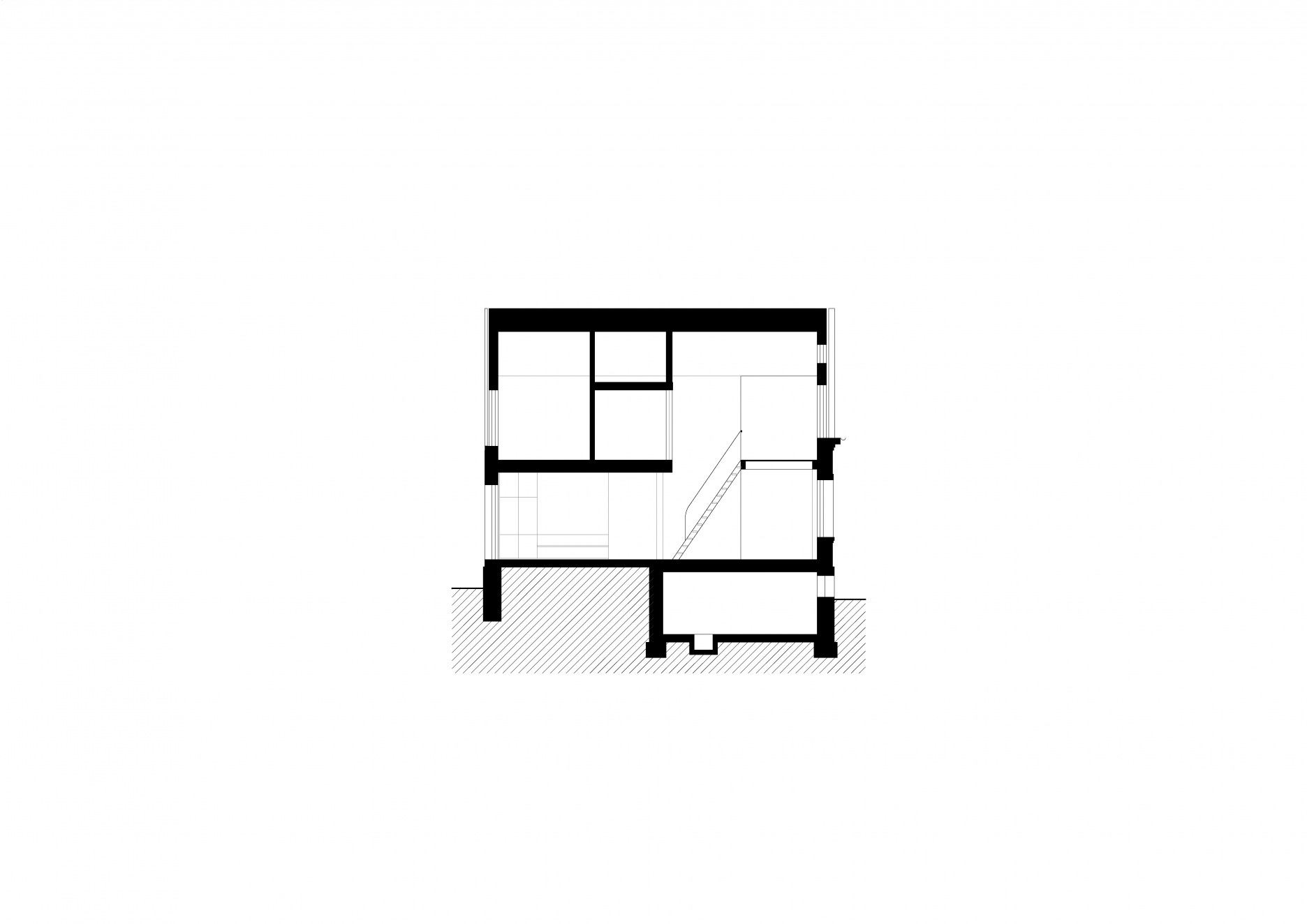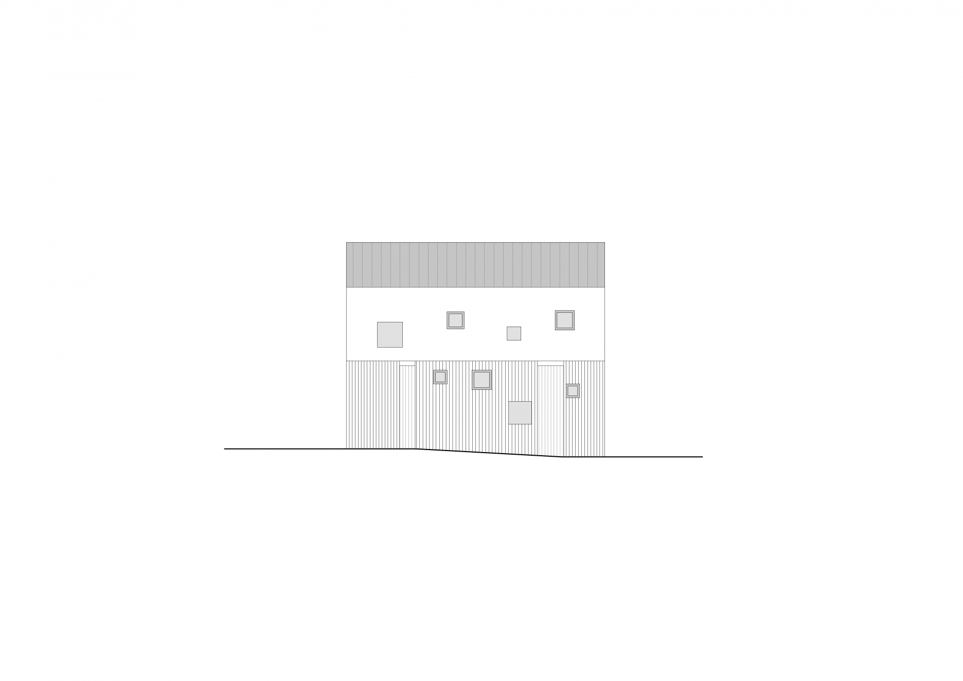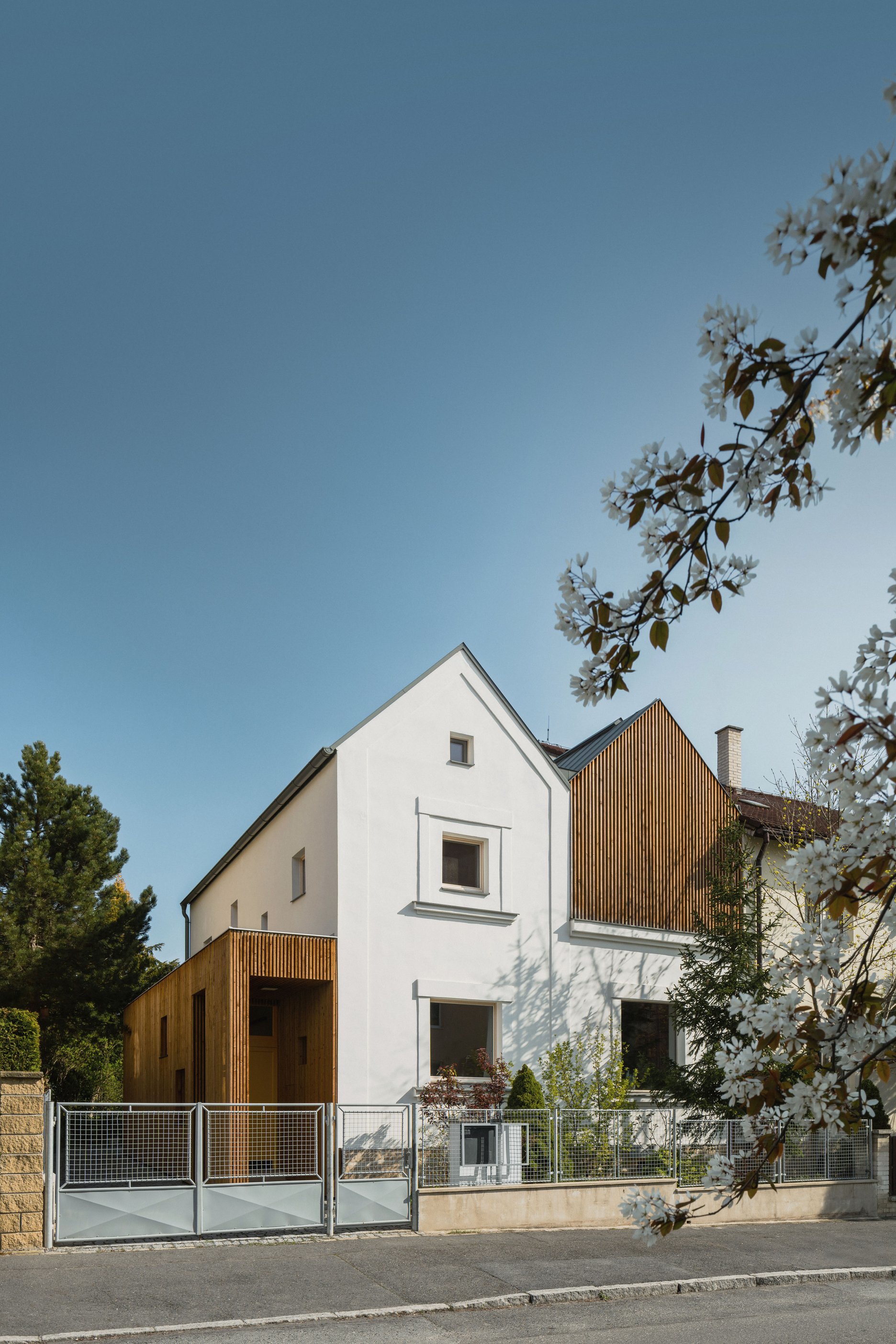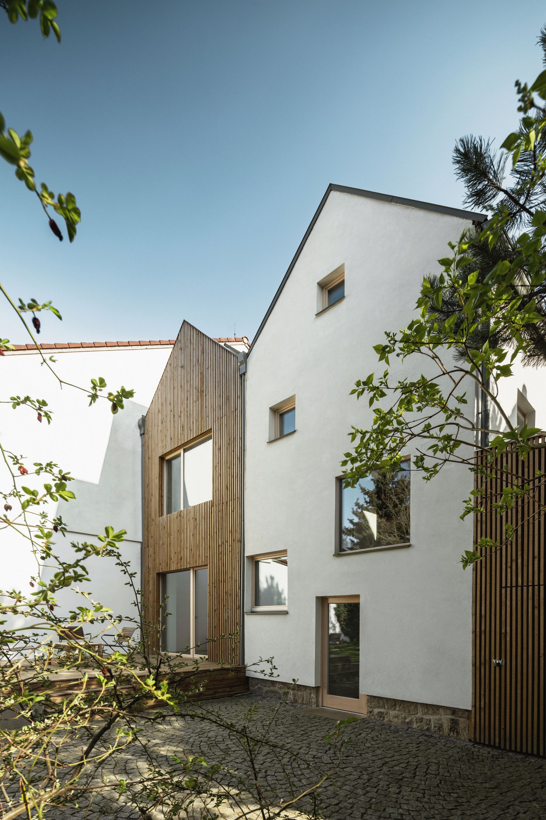 Pri pohľade na výrazne perforované fasády je zrejmá snaha architektov o výrazné presvetlenie interiéru v porovnaní s východiskovým stavom. Dostatok súkromia zabezpečujú drevené lamely, ukrývajúce okná v novo pristavanom štíte pred pohľadmi z ulice. Čo je pôvodné návrh priznáva. Súdobé prvky nie sú replikou, a novotvarom.