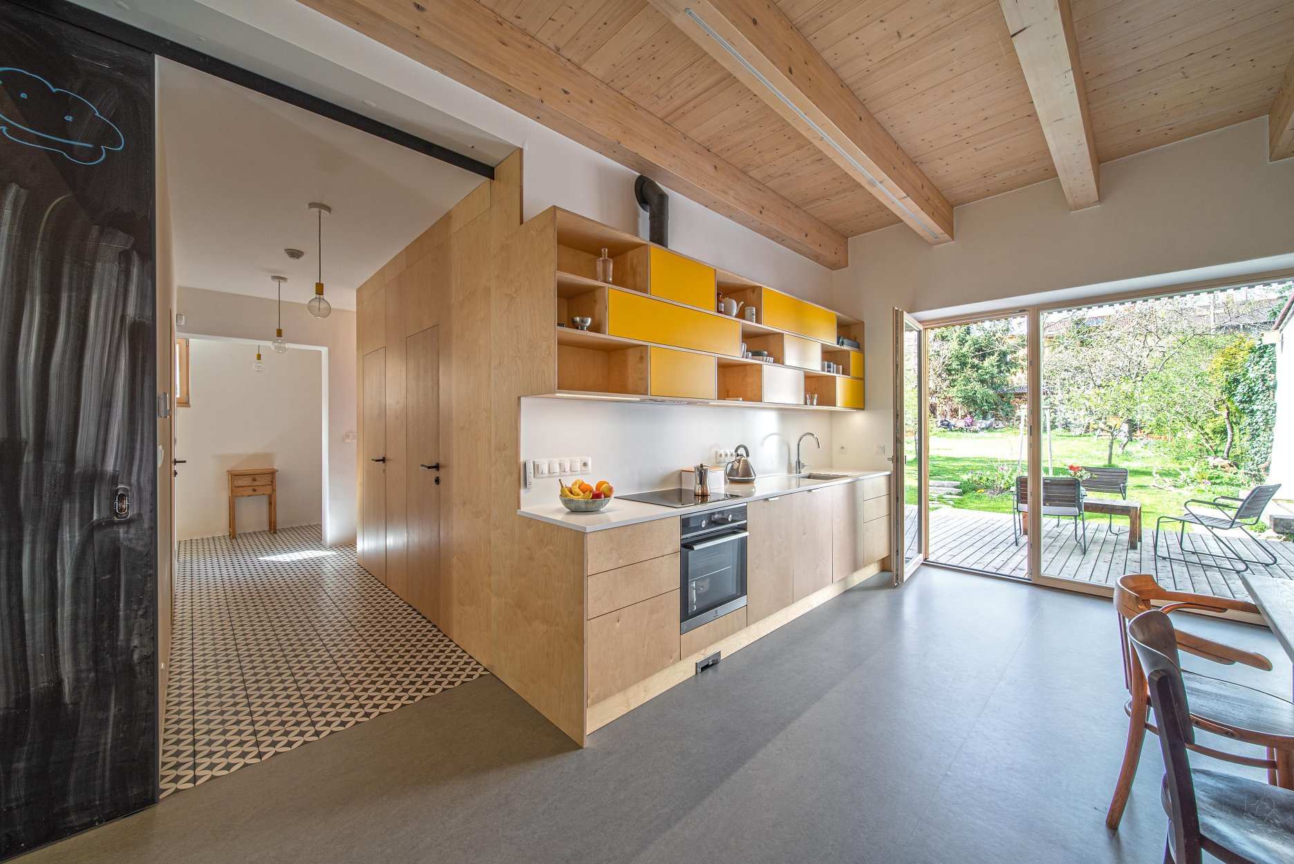 Projekt architektov z plzenského ateliéru PRO-STORY riešil prestavbu staršieho radového rodinného domu pre mladú rodinu. Radová zástavba v miestnej časti Lochotín tvorí zaujímavý ostrov súkromia so starými záhradami, uprostred panelovej zástavby sídliska. Väčšina okolitých domov už prešla rekonštrukciami, ktoré často zahŕňali rôzne zväčšenie objemu a nadstavby. Pôvodná mierka sa sa tak postupne z územia vytráca.