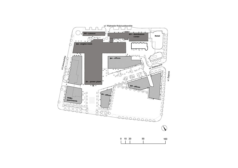Dôležitým aspektom projektu bolo preto začlenenie pôvodne neprístupného priemyselného územia do štruktúry vnútorného mesta. „Zrevitalizovaný areál Elektrownie Powiśle zahŕňa apartmány, hotel, obchodné, kancelárske a eventové priestory… Zrekonštruované industriálne stavby dopĺňajú nové bloky, ktoré sa snažia nadviazať na historický kontext. Snažili sme sa o koherentné fungovanie oboch zložiek. Priemyselné objekty zo začiatku minulého storočia a nové bloky sú prepojené verejnými a poloverejnými priestormi, ktoré nadväzujú na okolitú mestskú zástavbu. Pestrá funkčná náplň vnáša do zóny život počas celého dňa a večer,” vysvetľujú autori projektu - architekti z varšavskéh ateliéru APA Wojciechowski Architekci.