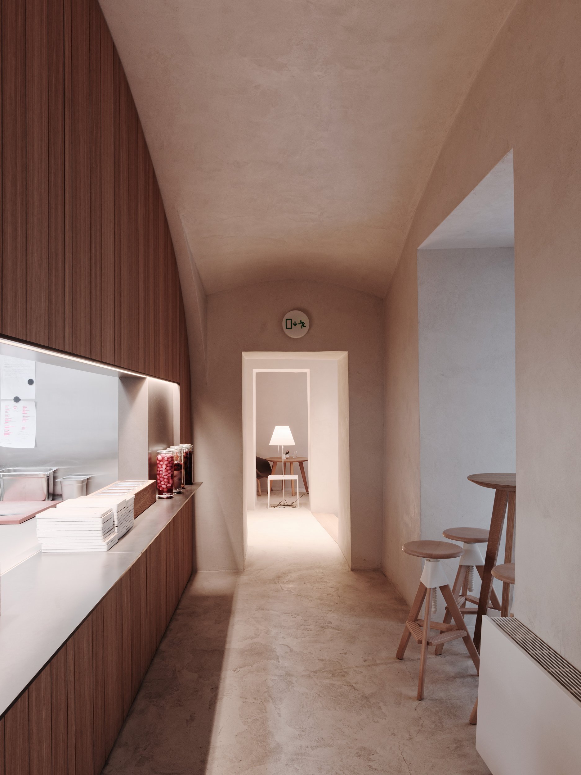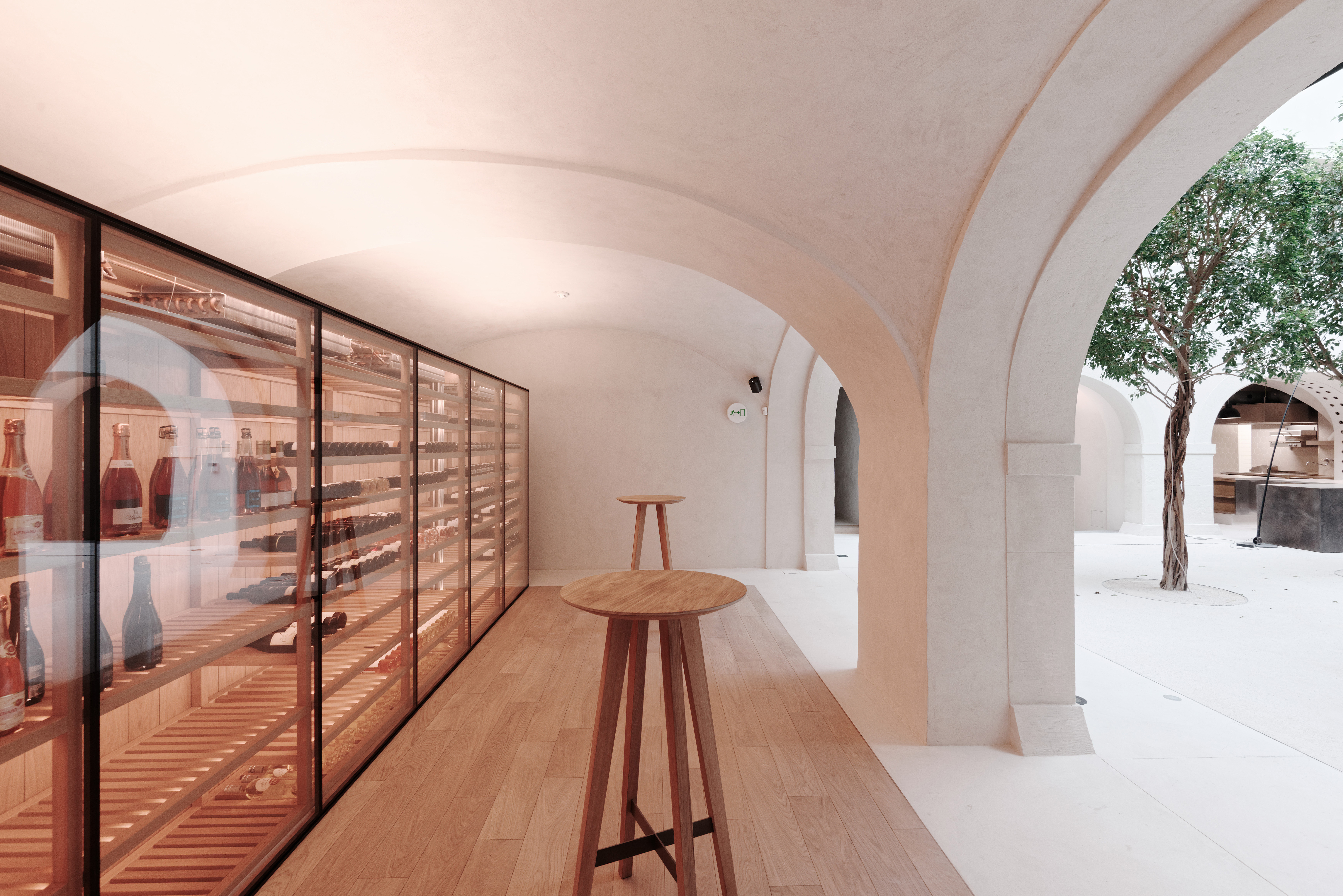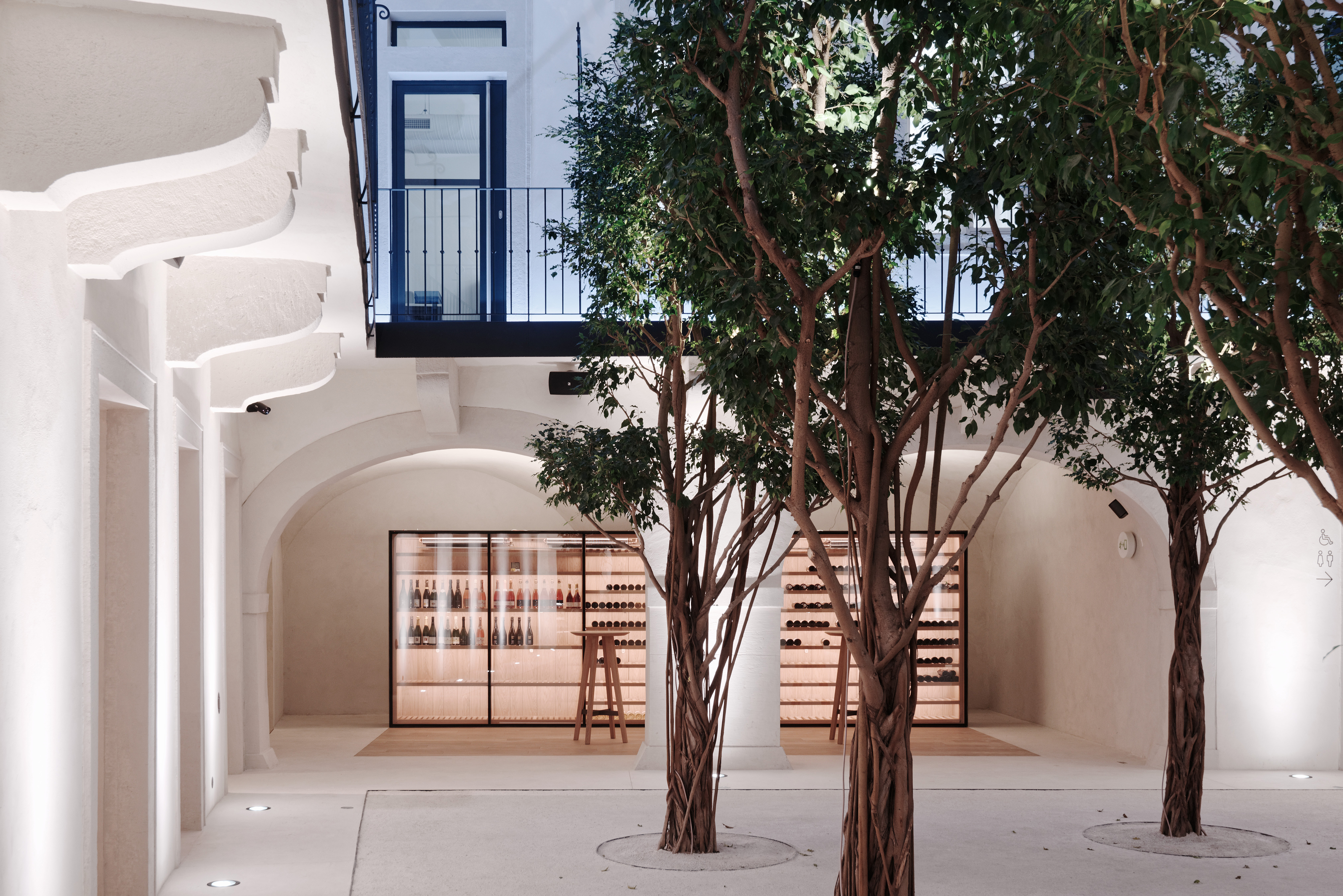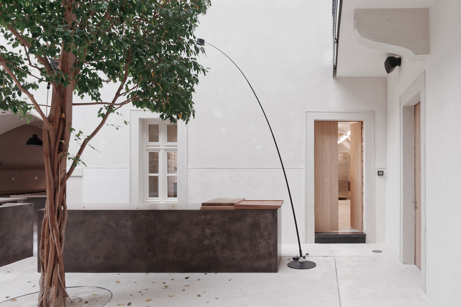 Osobitým charakteristickým priestorom je prestrešené nádvorie, do ktorého je orientovaná otvorená kuchyňa, reštaurácia a vinotéka. Vďaka vysadeným stromom a mlátovej štrkovej podlahe slúži vo forme akejsi celororočnej terasy na občasné eventy.