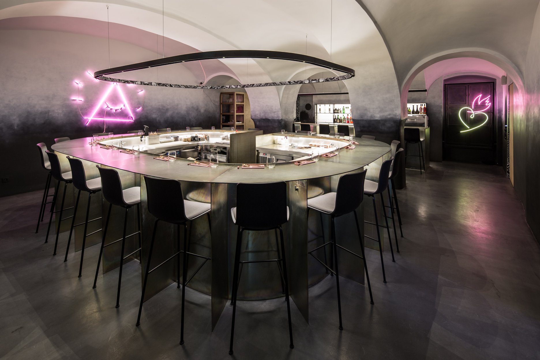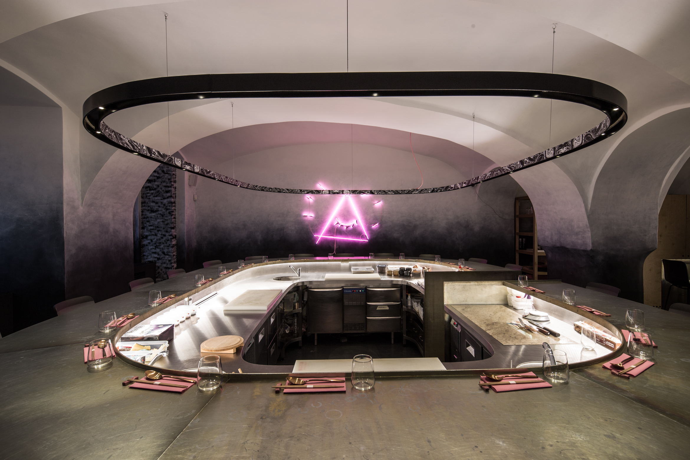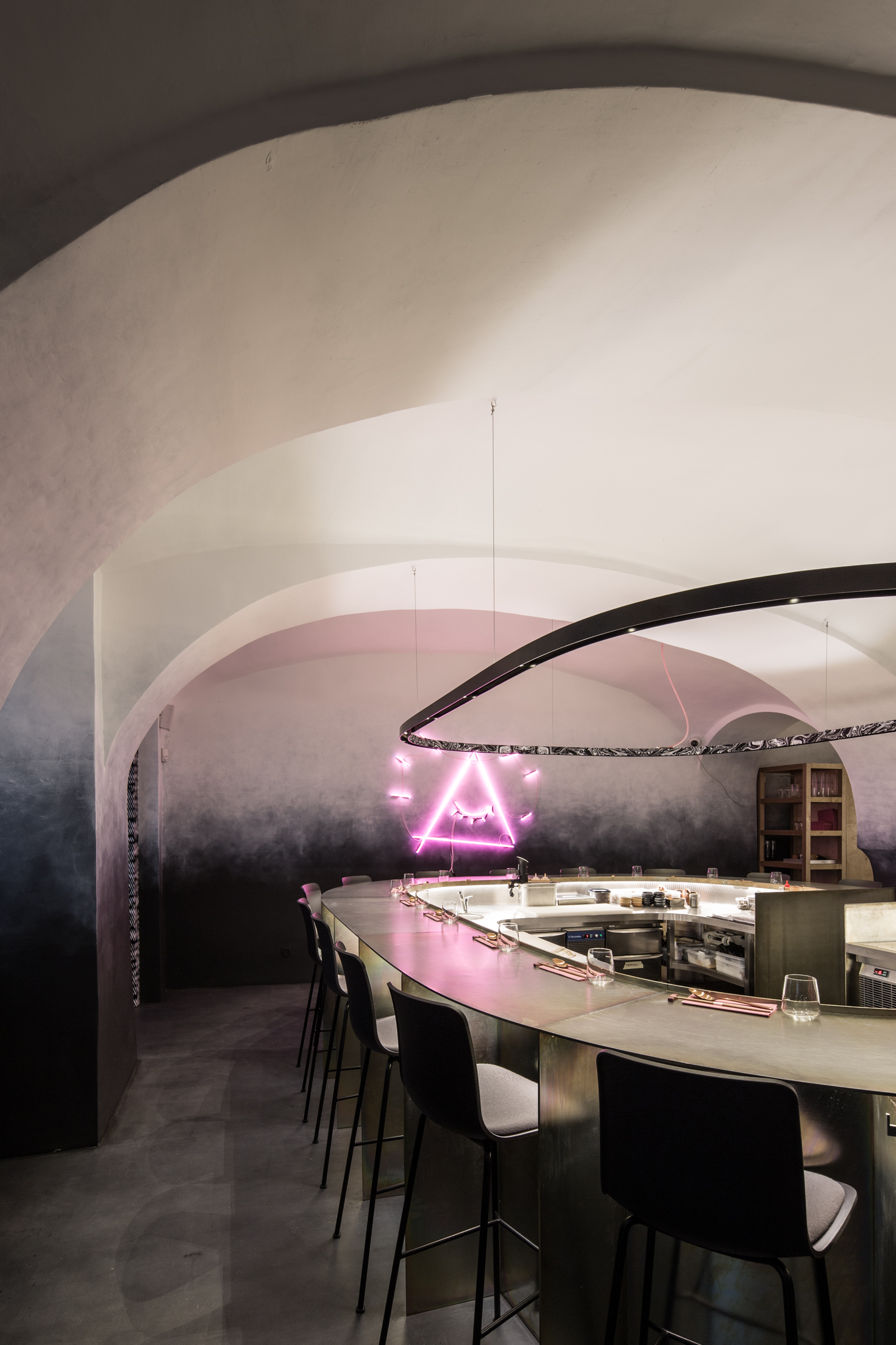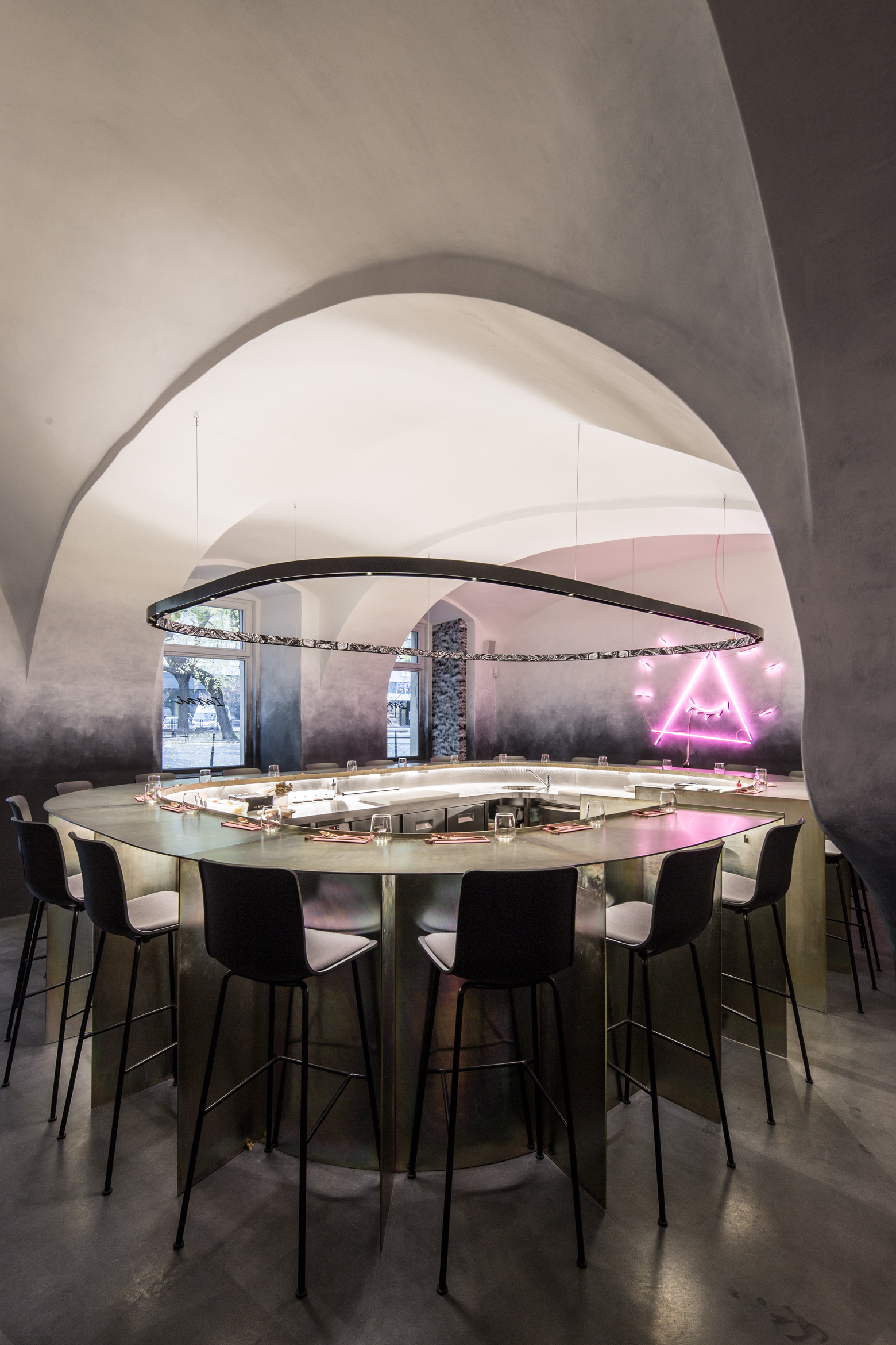 Dôležitú úlohu pri tomto koncepte nehrá len vzhľad jedál, ale aj architektúra a atmosféra interiéru. Návrh architektov z ateliéru Plusminus vystihuje podstatu konceptu a vhodne do neho zapadá.