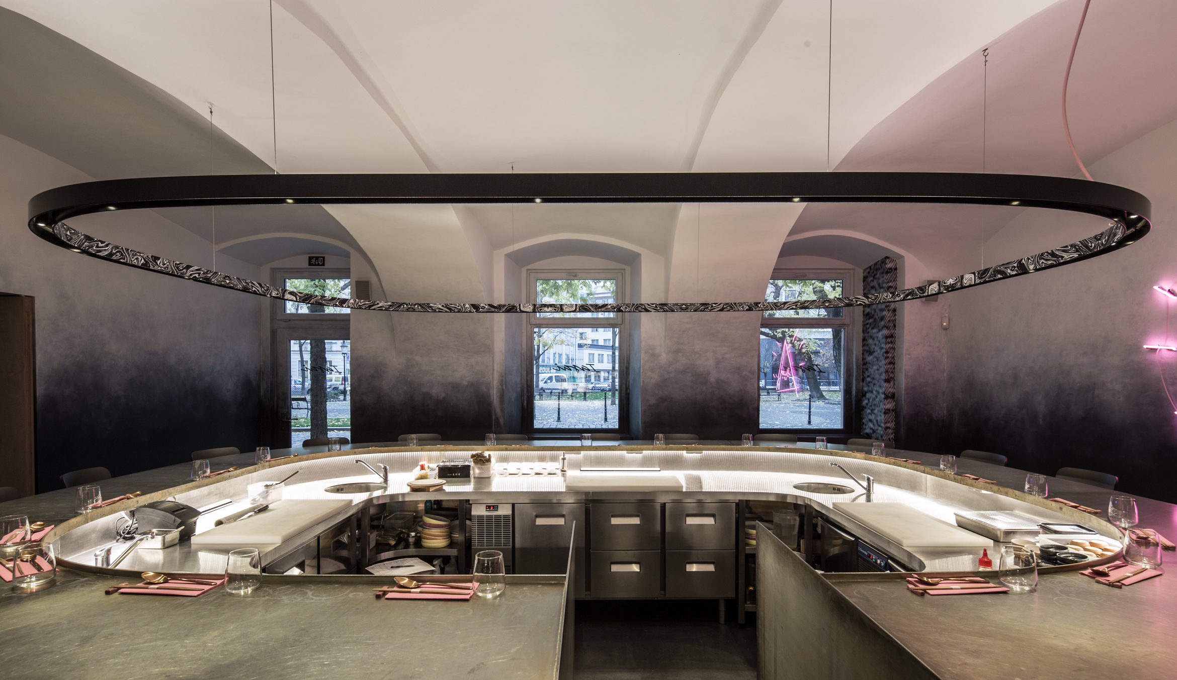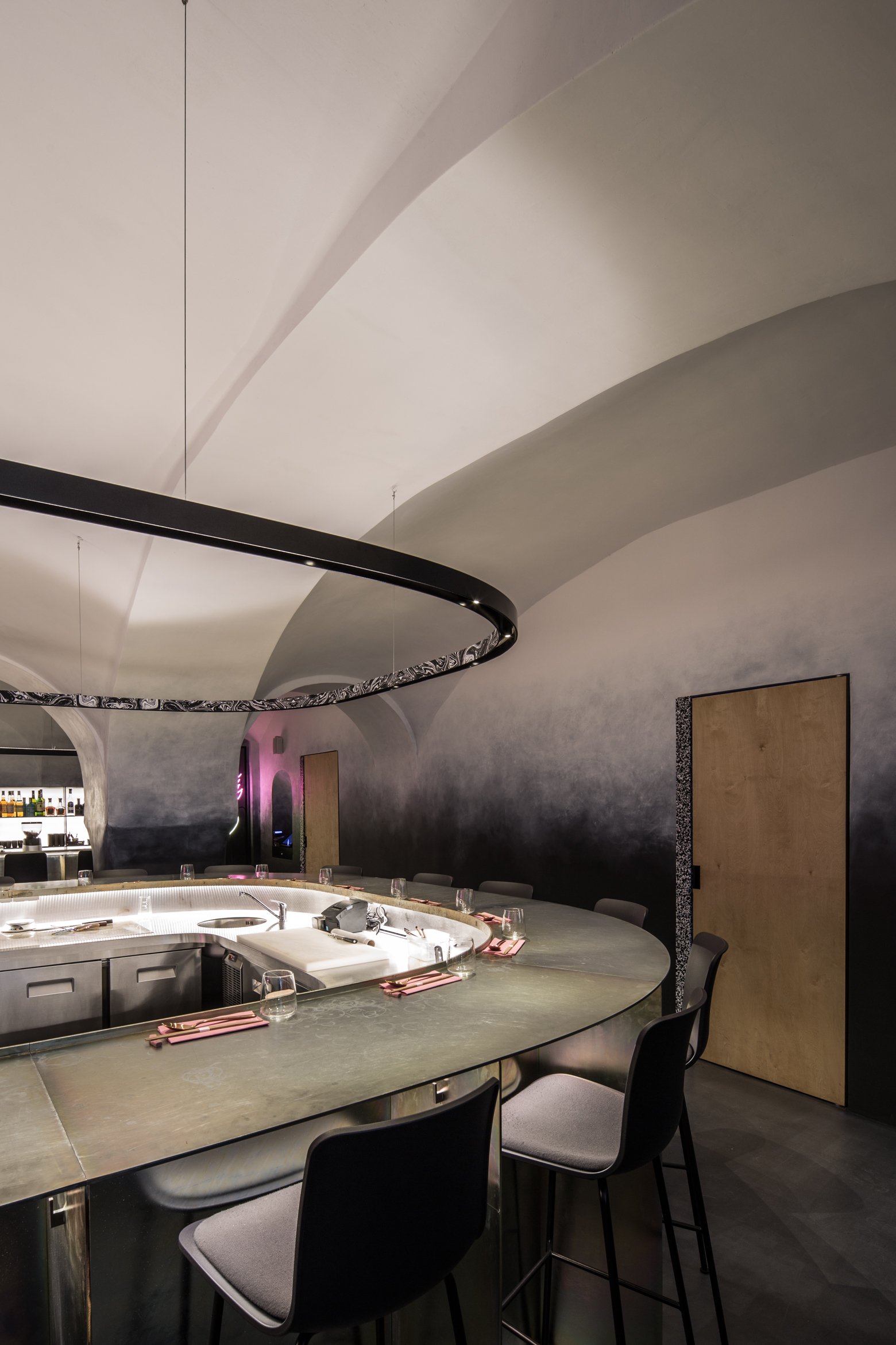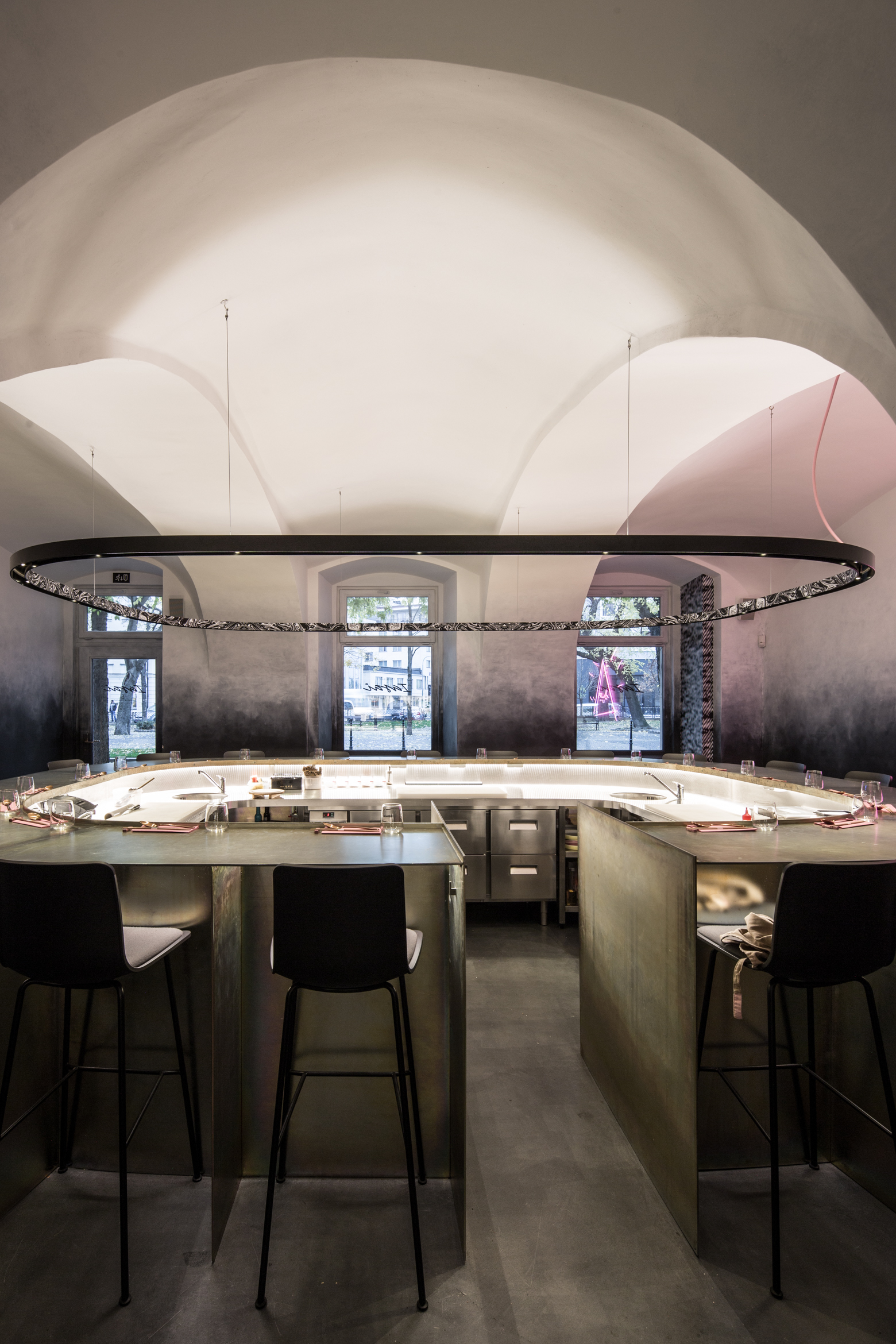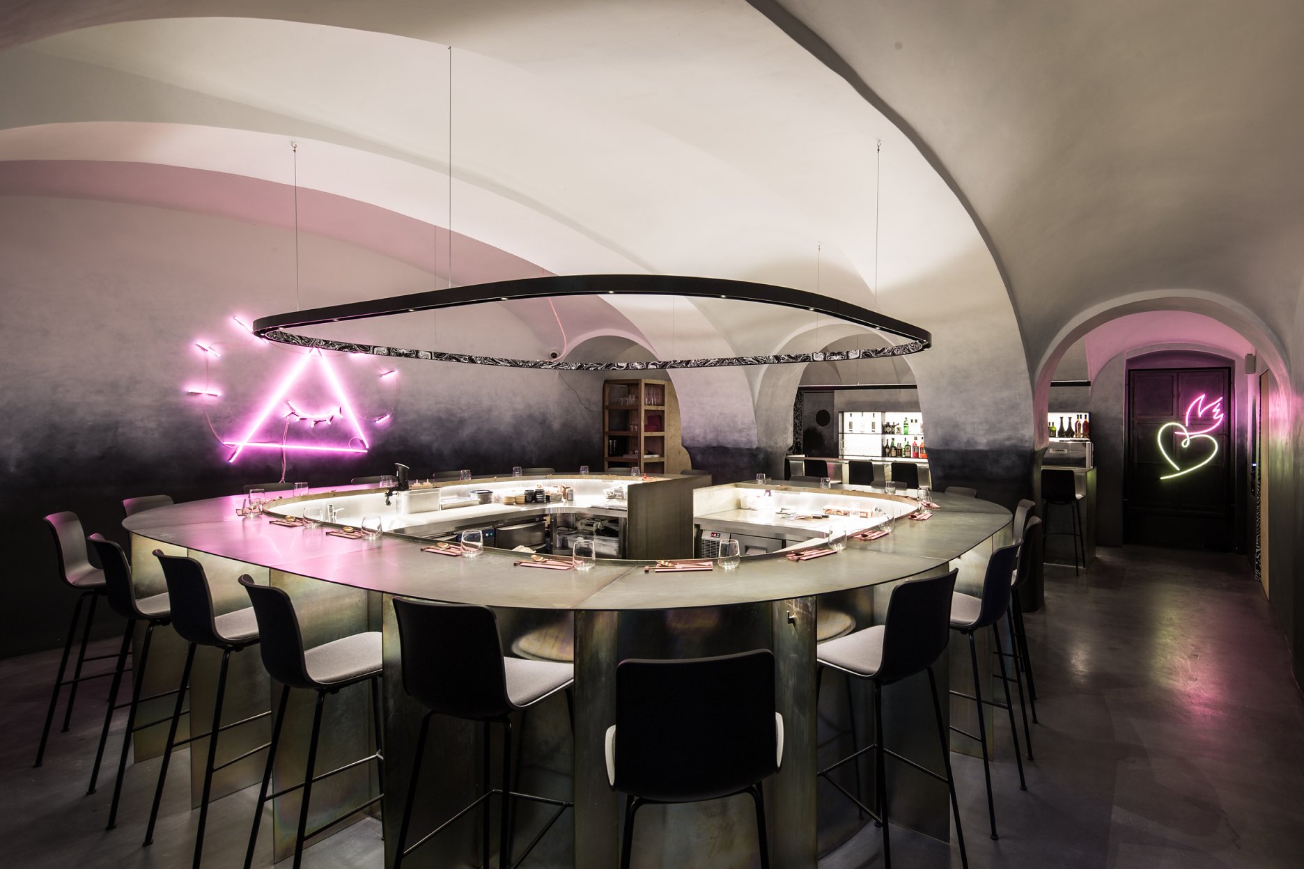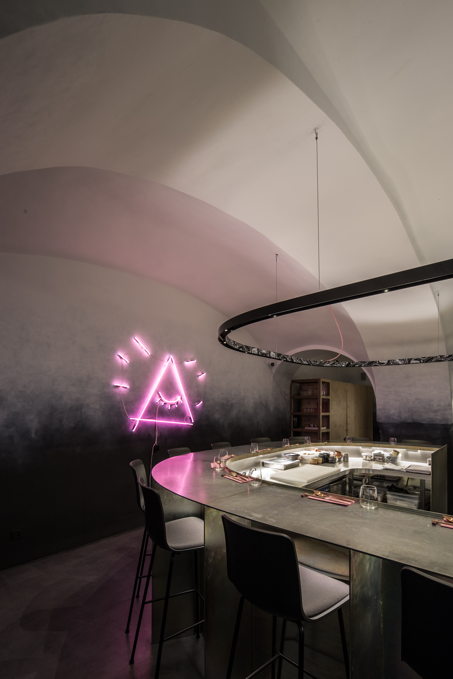 Dôležitú úlohu pri tomto koncepte nehrá len vzhľad jedál, ale aj architektúra a atmosféra interiéru. Návrh architektov z ateliéru Plusminus vystihuje podstatu konceptu a vhodne do neho zapadá.