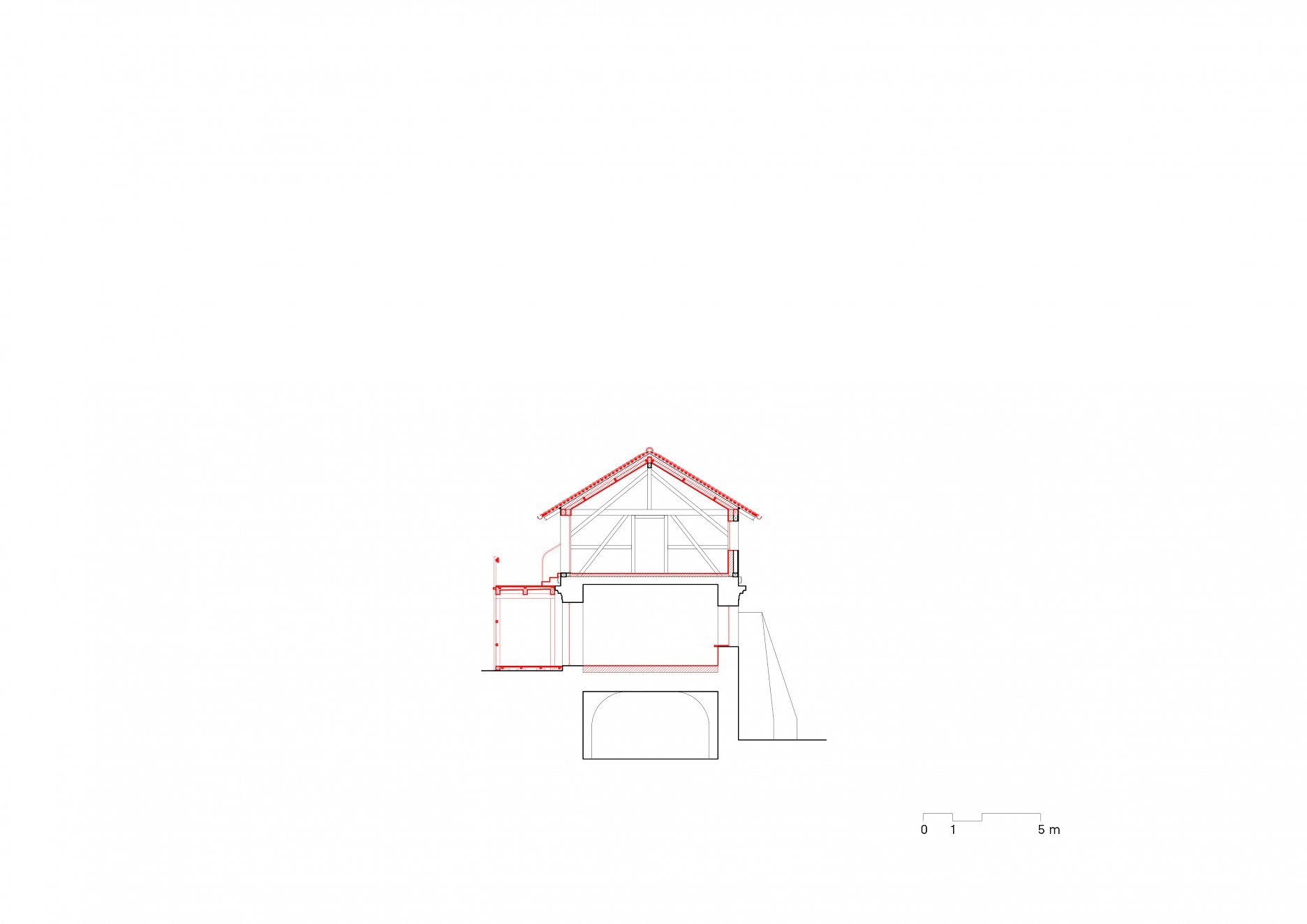 Autori sa rozhodli izolovať konštrukcie druhého nadzemného podlažia zvnútra. Vďaka tomu sa im podarilo zachovať patinu pôvodnej drevenej fasády, ktorá je stále zdravá. Najvýraznejšou zmenou prešiel východný štít budovy. Pribudlo výrazné presklenie, ktoré otvára výhľady do krajiny.