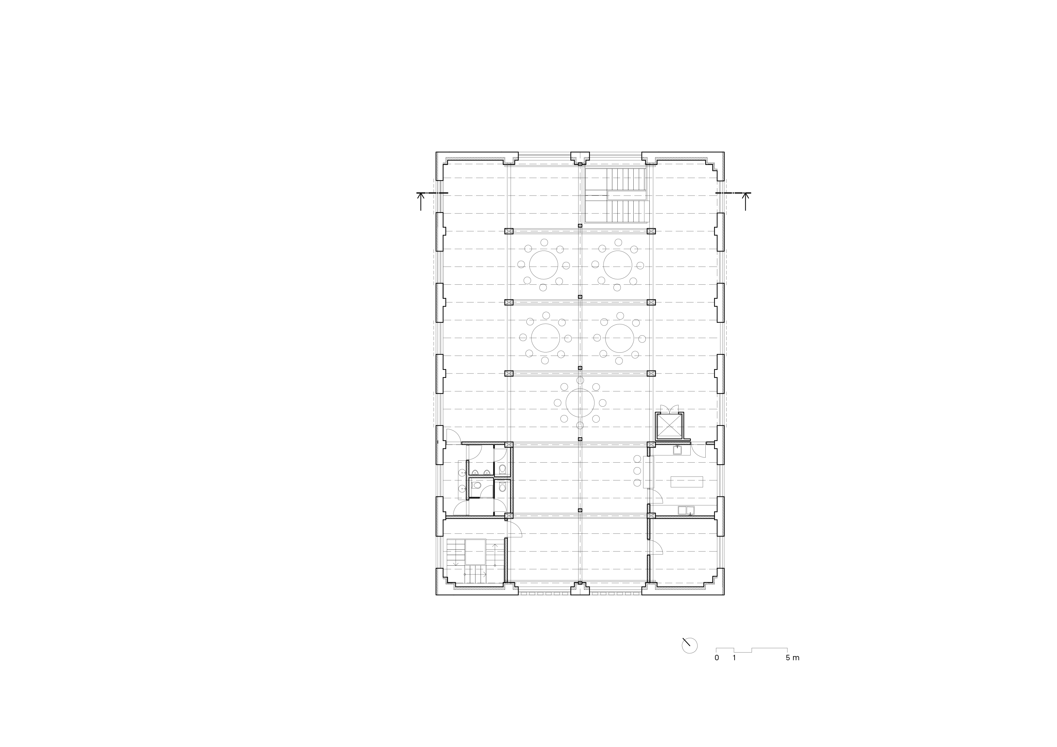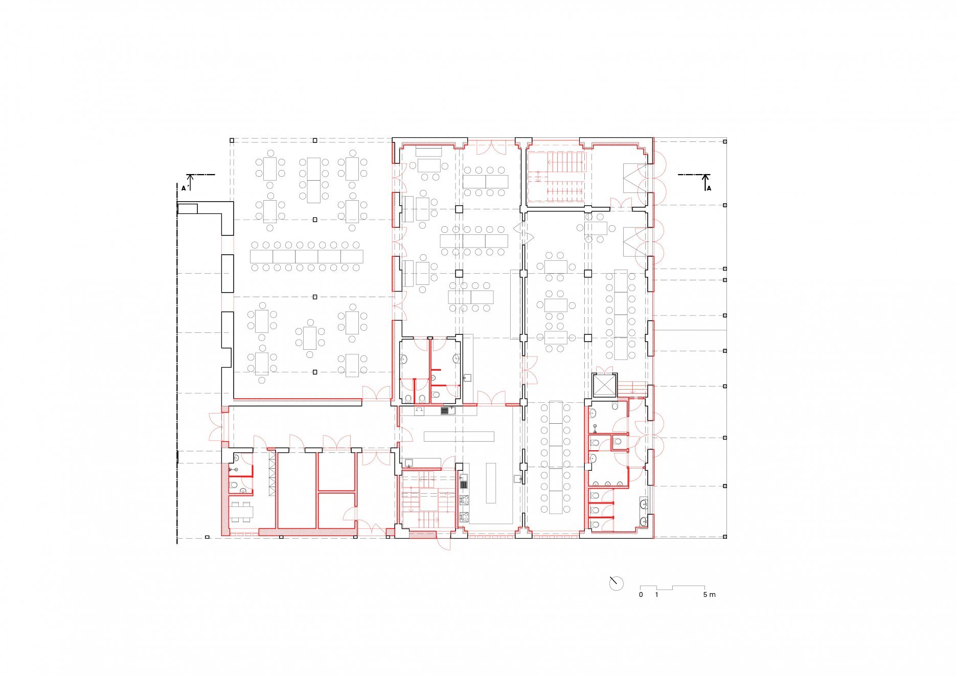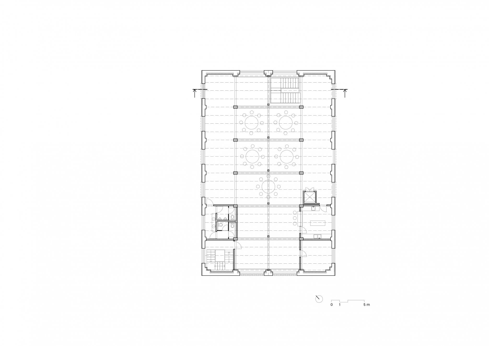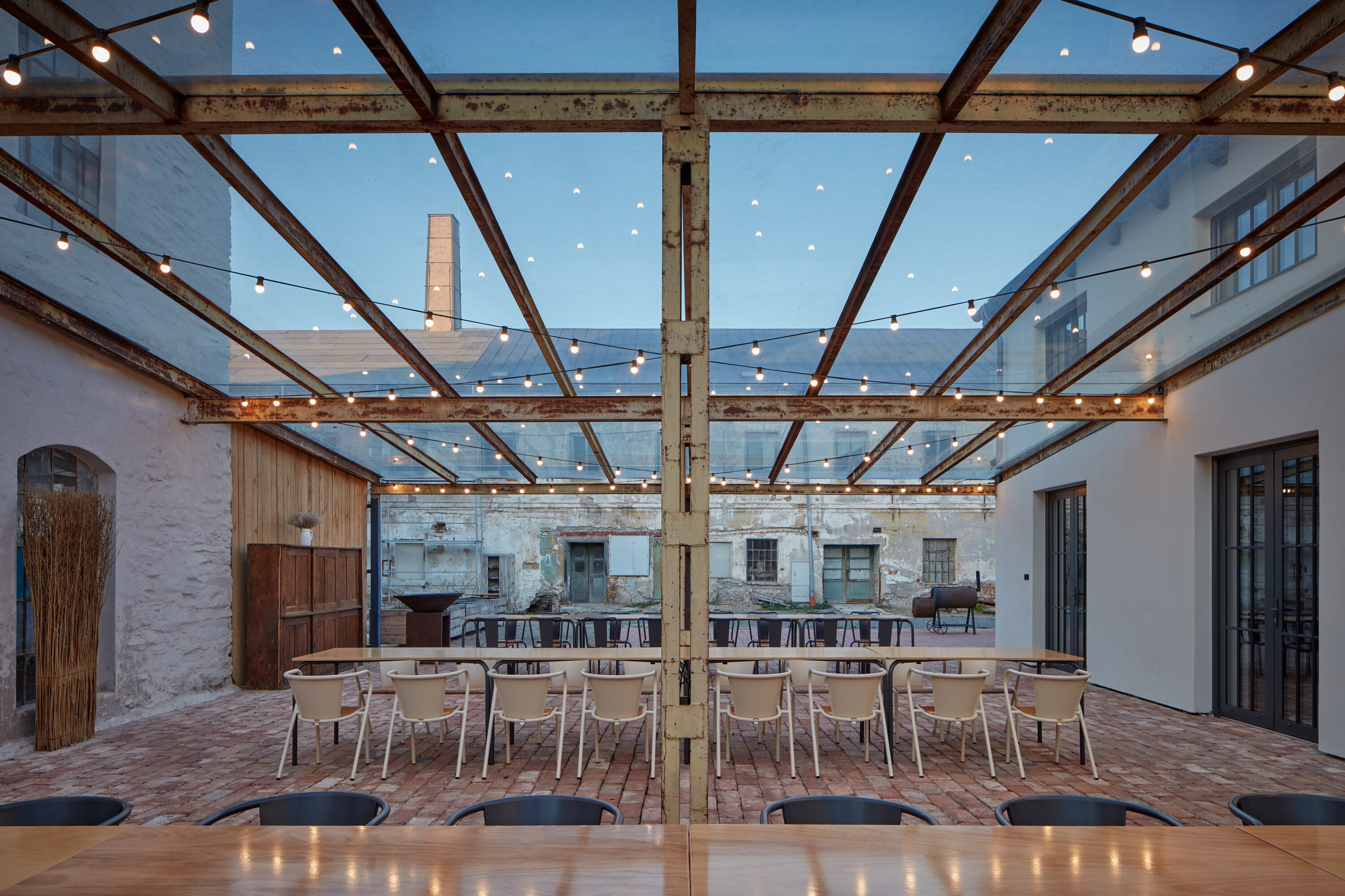 Priestory na prízemí využíva reštaurácia s kuchyňou. Na reštauráciu nadväzuje "skleník" - pôvodná oceľová konštrukcia, ktorú architekti odstrojili a krytinu nahradili sklom. Do podkrovia s rozsiahlou sálou vedie zvárané oceľové schodisko. Všetky nosné konštrukcie sú pôvodné, so zachovanou dobovou patinou.