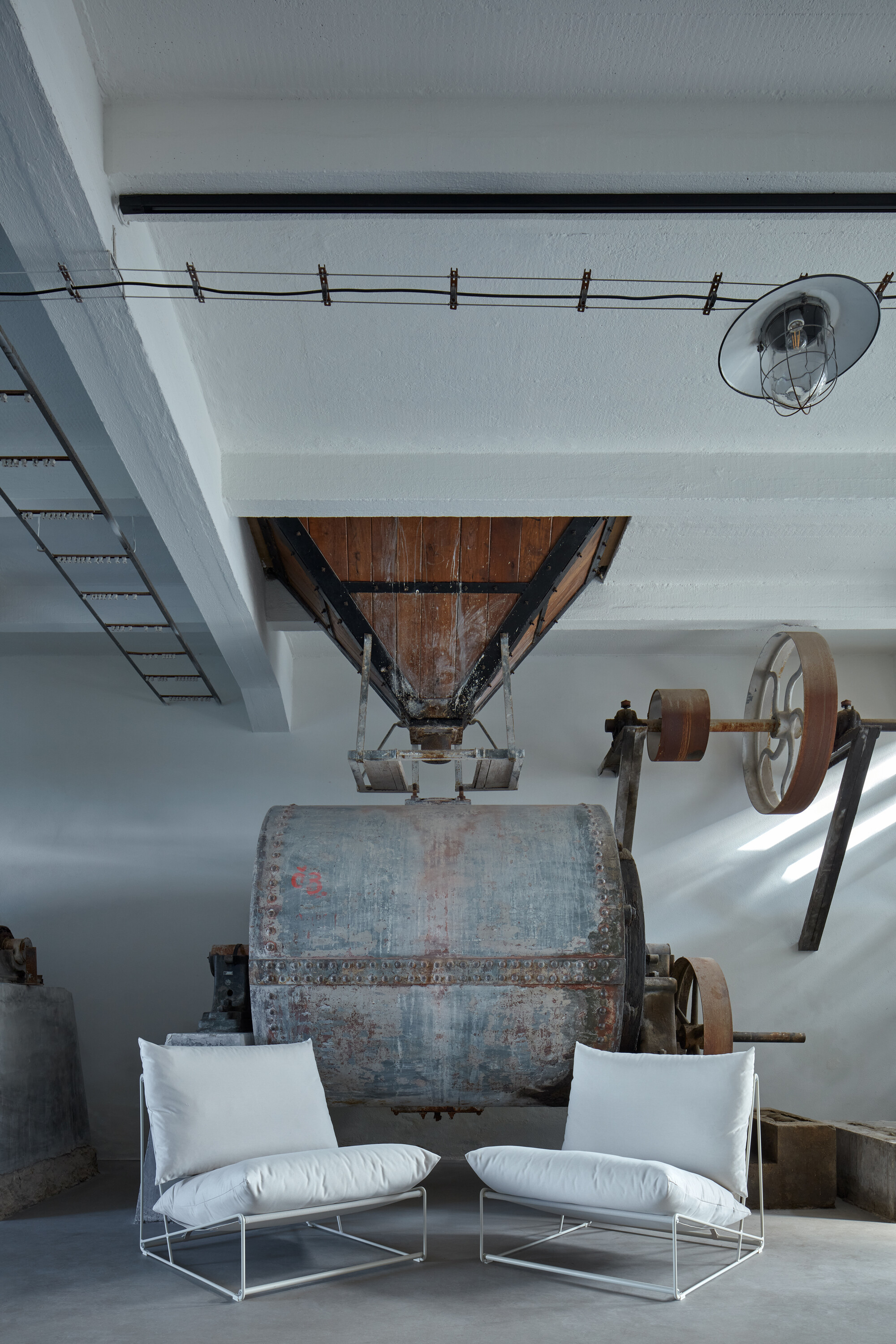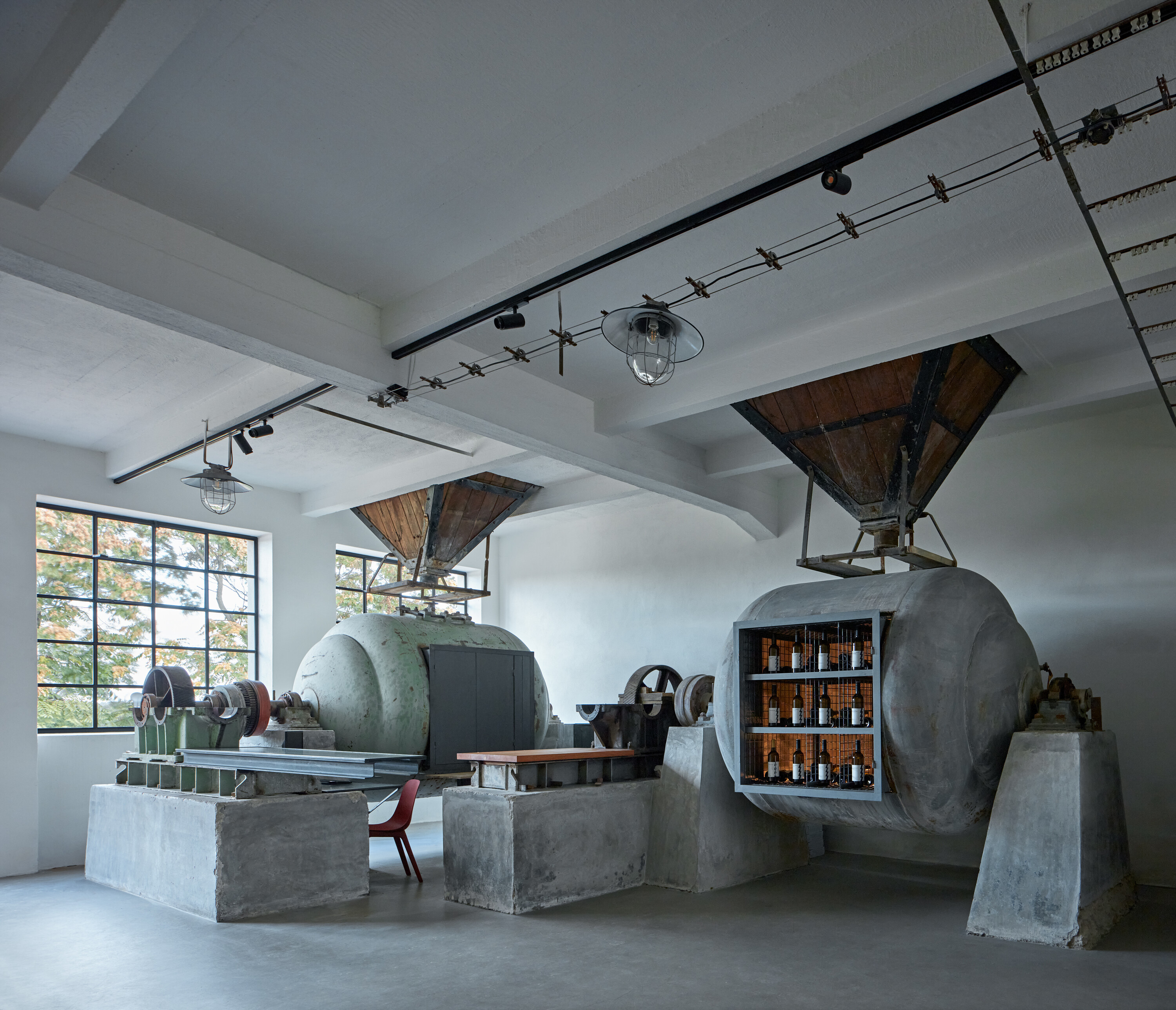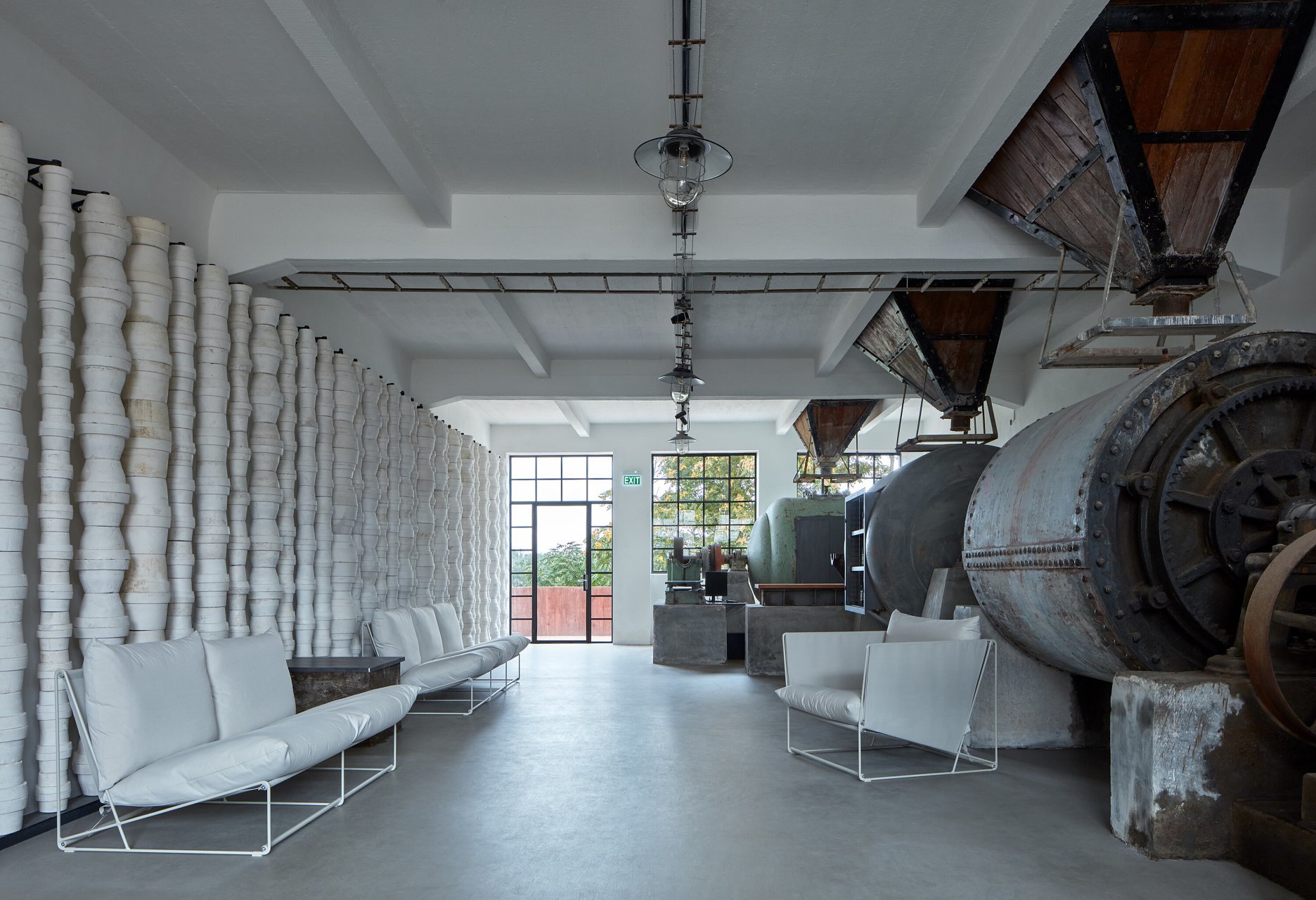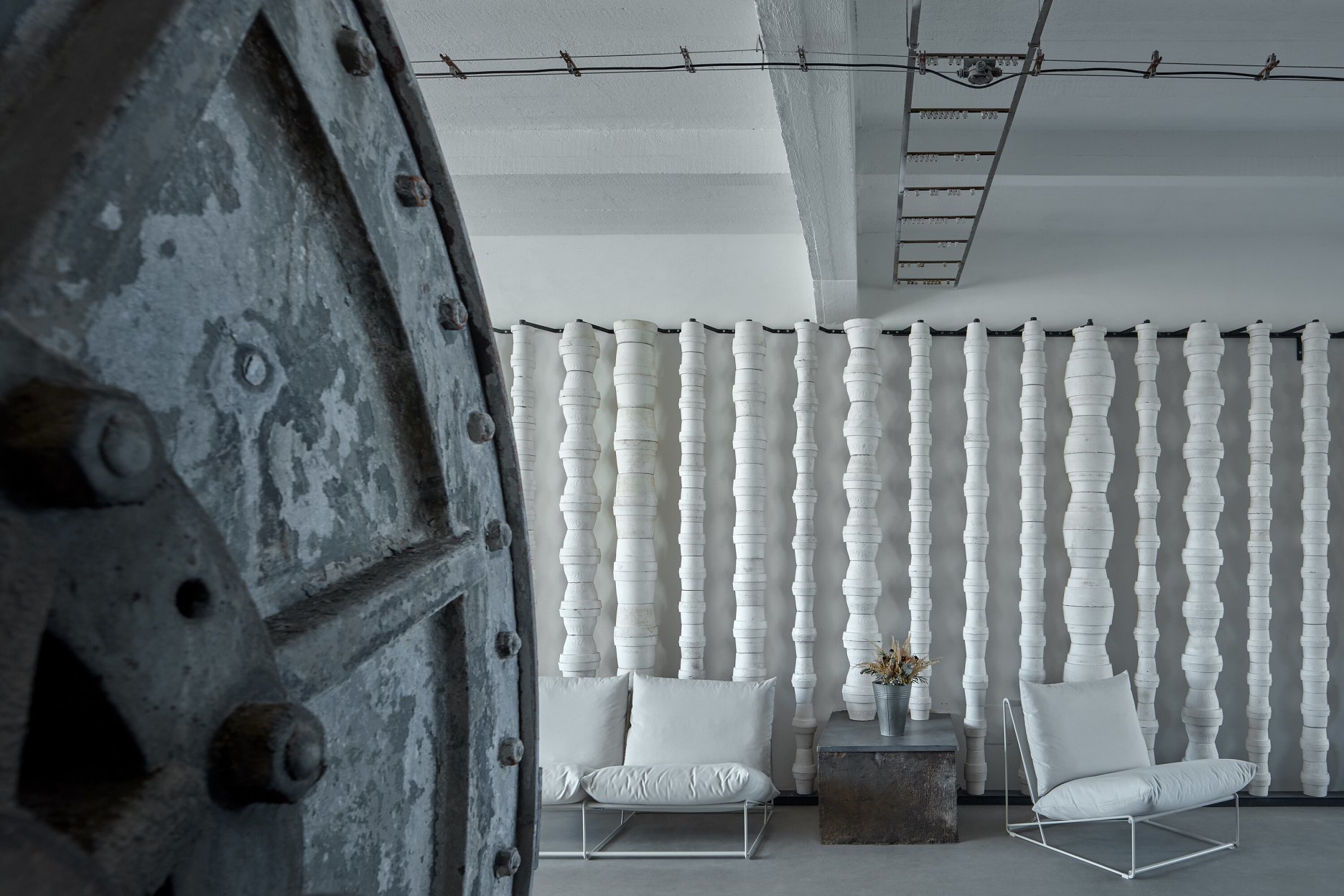 V priestoroch terajšej recepcie v minulosti prebiehalo miešanie hliny. Zastavené miešačky nechávajú autori vo svojich pôvodných pozíciách. Presne tak, ako boli kedysi opustené. Pozdĺž jednej zo stien plynie inštalácia zo sadrových foriem, do ktorých sa odlievali kvetináče.