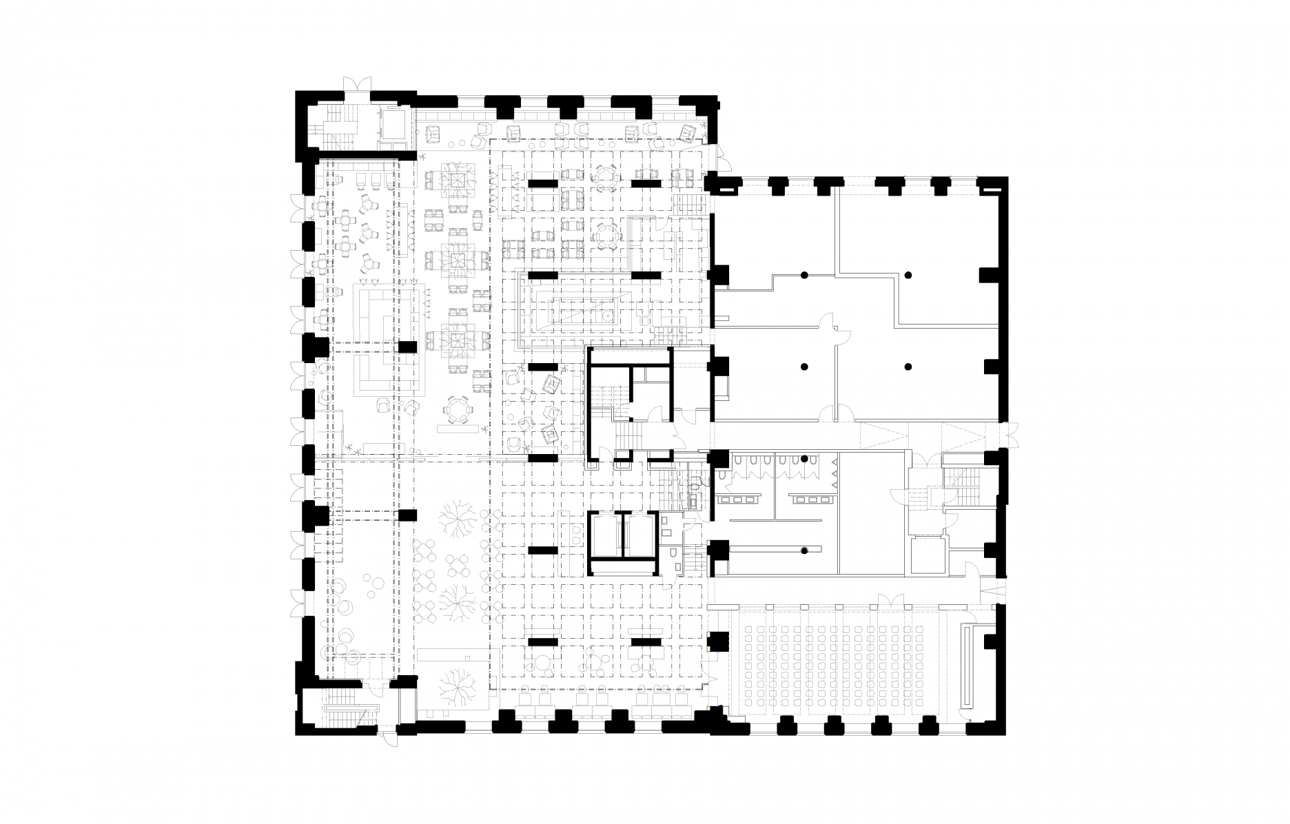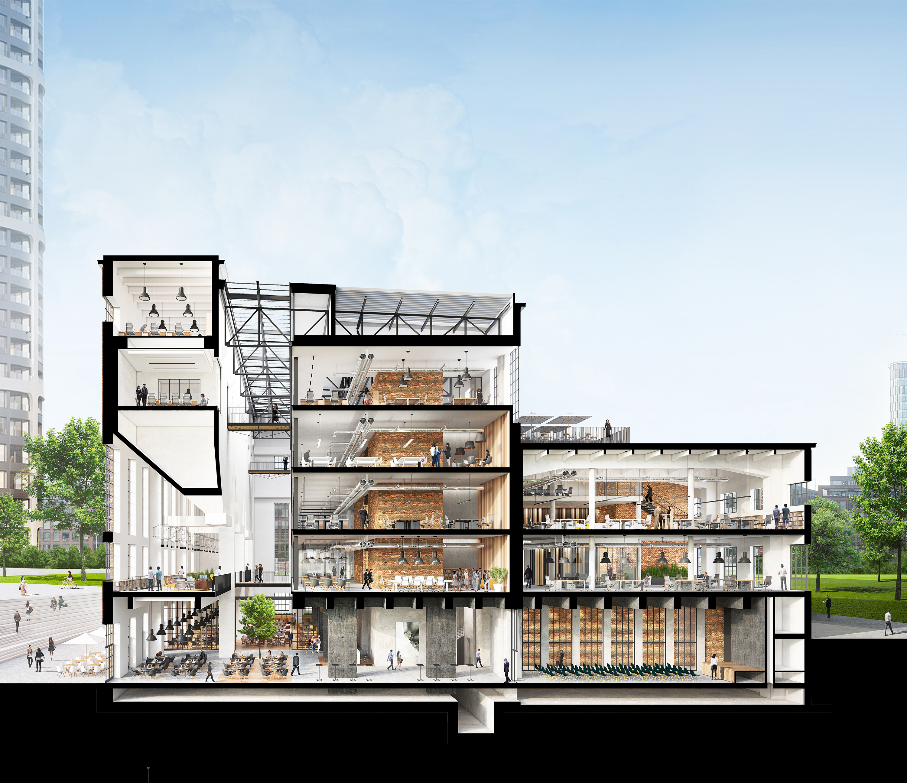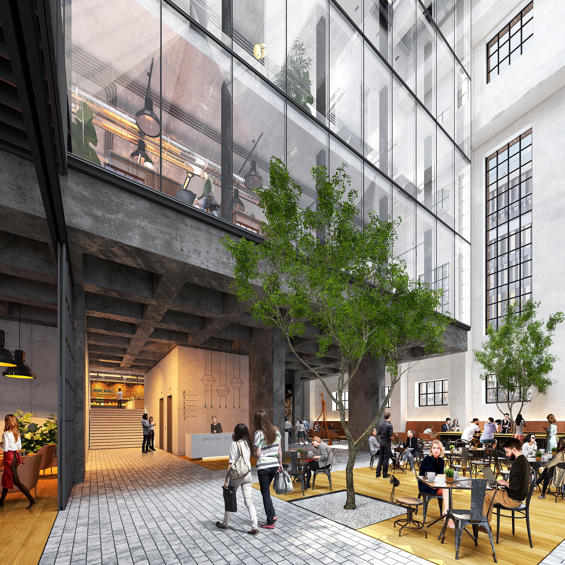 Realizácia potvrdila zámer autorov vytvoriť komunitný priestor s industriálnou atmosférou, určený pre verejnosť na rôzne spoločenské podujatia, konferencie a výstavy. Po vstupe do budovy sa návštevníkovi otvorí priestor átria prechádzajúceho cez všetky podlažia, s výhľadom na novú presklenú fasádu, na vnútorné "námestie" s lobby kaviarňou a reštauráciou, s galériou súčasného umenia a so samostatnou multifunkčnou sálou pre konanie rôznych kultúrno-spoločenských podujatí.