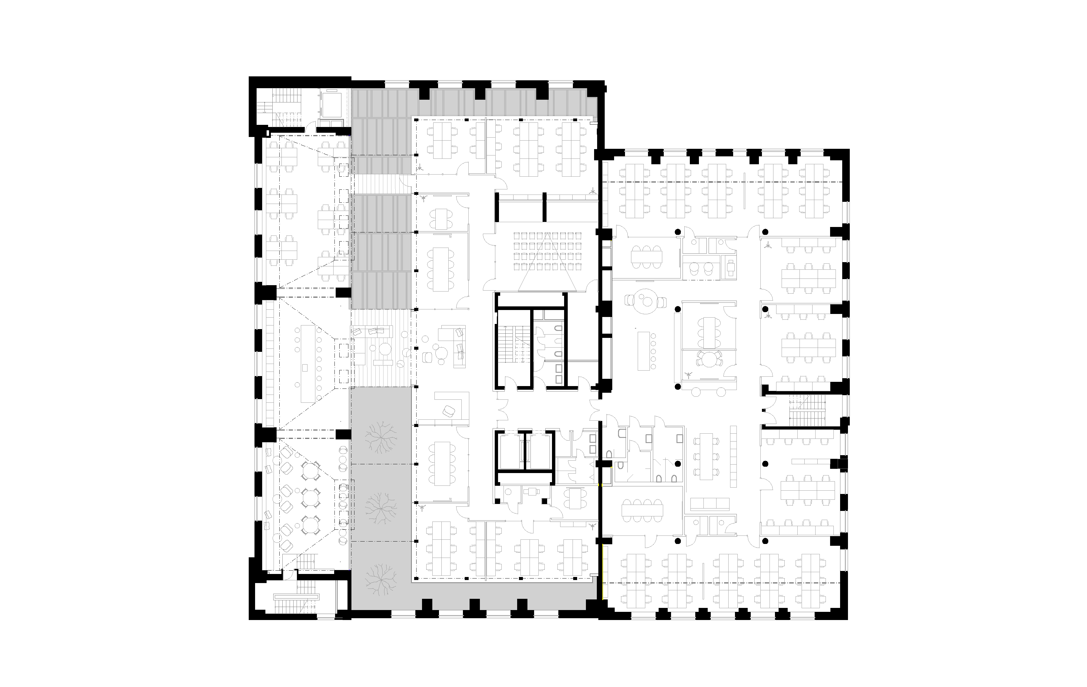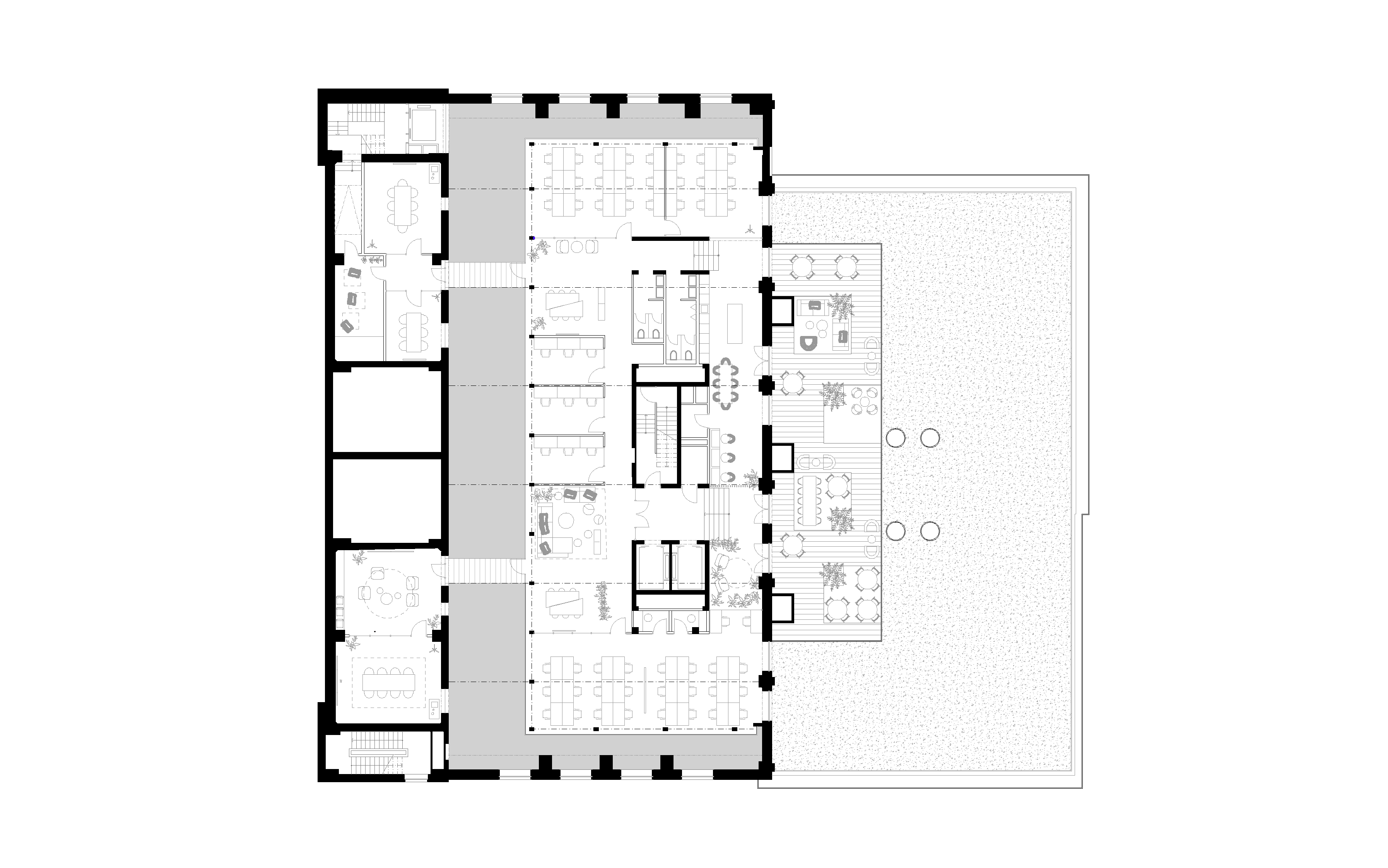 Tento koncept umožňuje jasne oddeliť a odlíšiť historické konštrukcie od nových, pôvodné od súčasných, a to všetko s pokorou k histórii, v kontraste a v súlade zároveň. Zrekonštruovaná Jurkovičova tepláreň vytvorila priestor pre coworking BASE4Work, ktorý navrhli architekti zo studia Perspektiv pre ľudí a spoločnosti z kreatívneho priemyslu, architektov, startupy a menšie IT firmy. Tepláreň je zároveň sprístupnená aj širokej verejnosti v úrovni celého prízemia vrátane živého námestia vstupujúceho dovnútra.
