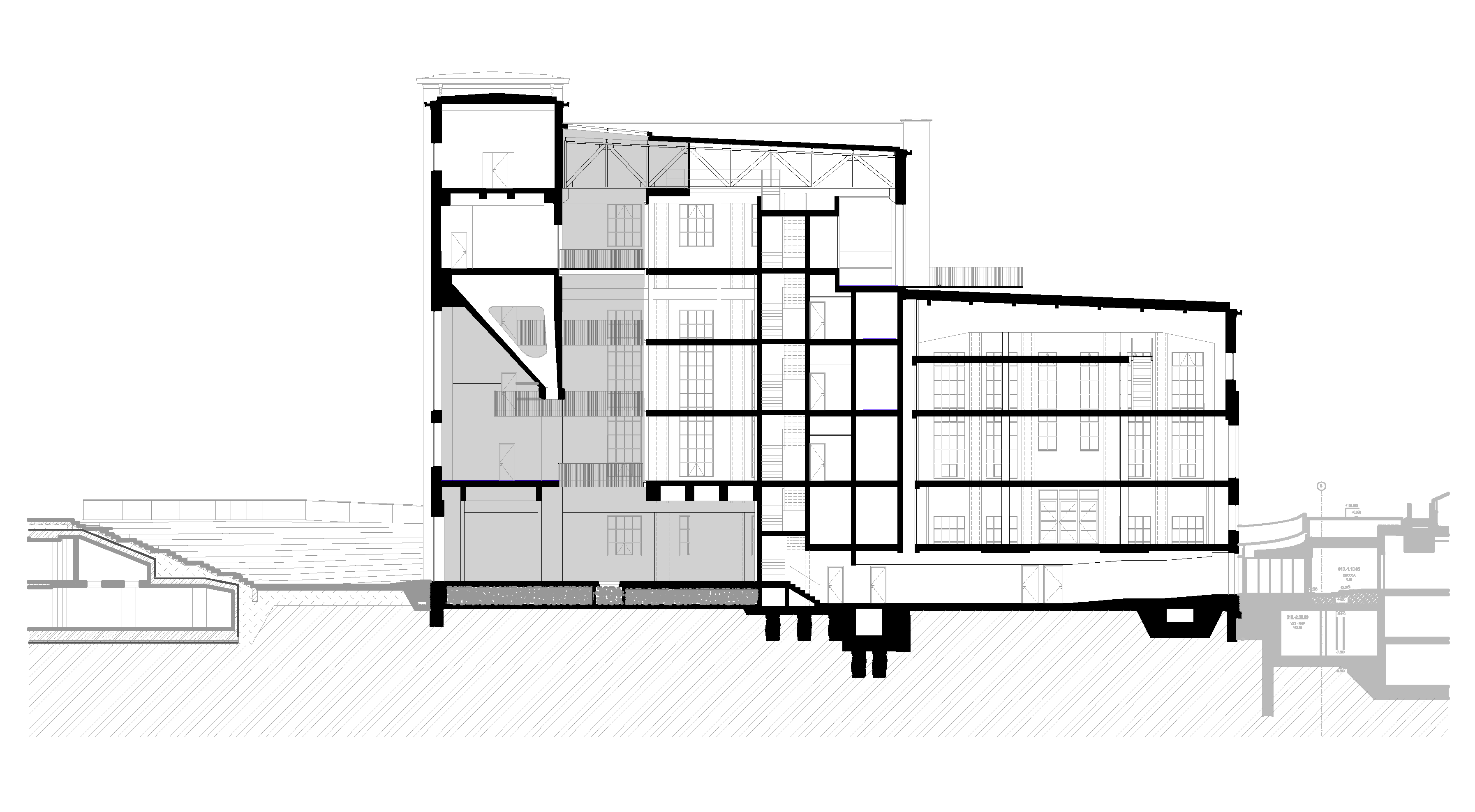 Riešenie necháva vyniknúť mnohým historickým konštrukčným detailom, pôvodným členitým stĺpom a hlavne trom dominantným násypníkom. Ich rekonštrukciou sa vytvoril originálny reprezentačný priestor s materiálmi v ich pôvodnej "surovosti" a farebnosti. Doplnené konštrukcie, nové vložené materiály s ich jasne odlíšiteľnou štruktúrou (nové tehlové steny z pôvodných viac ako 36-tisíc tehál, heraklitové stenové obklady, pôvodná štruktúra betónov..) a rôzne súčasné technické detaily sú jasne čitateľné a prezentujú základný princíp "pravdivosti".