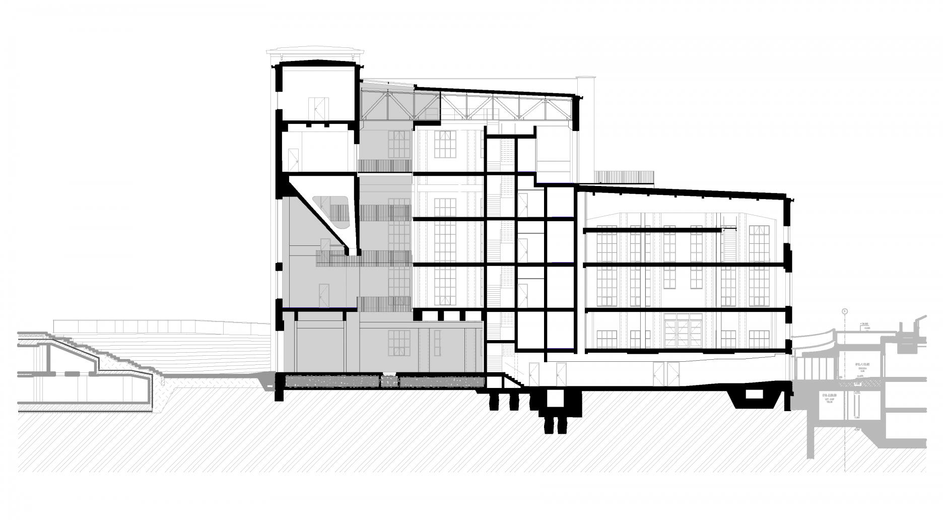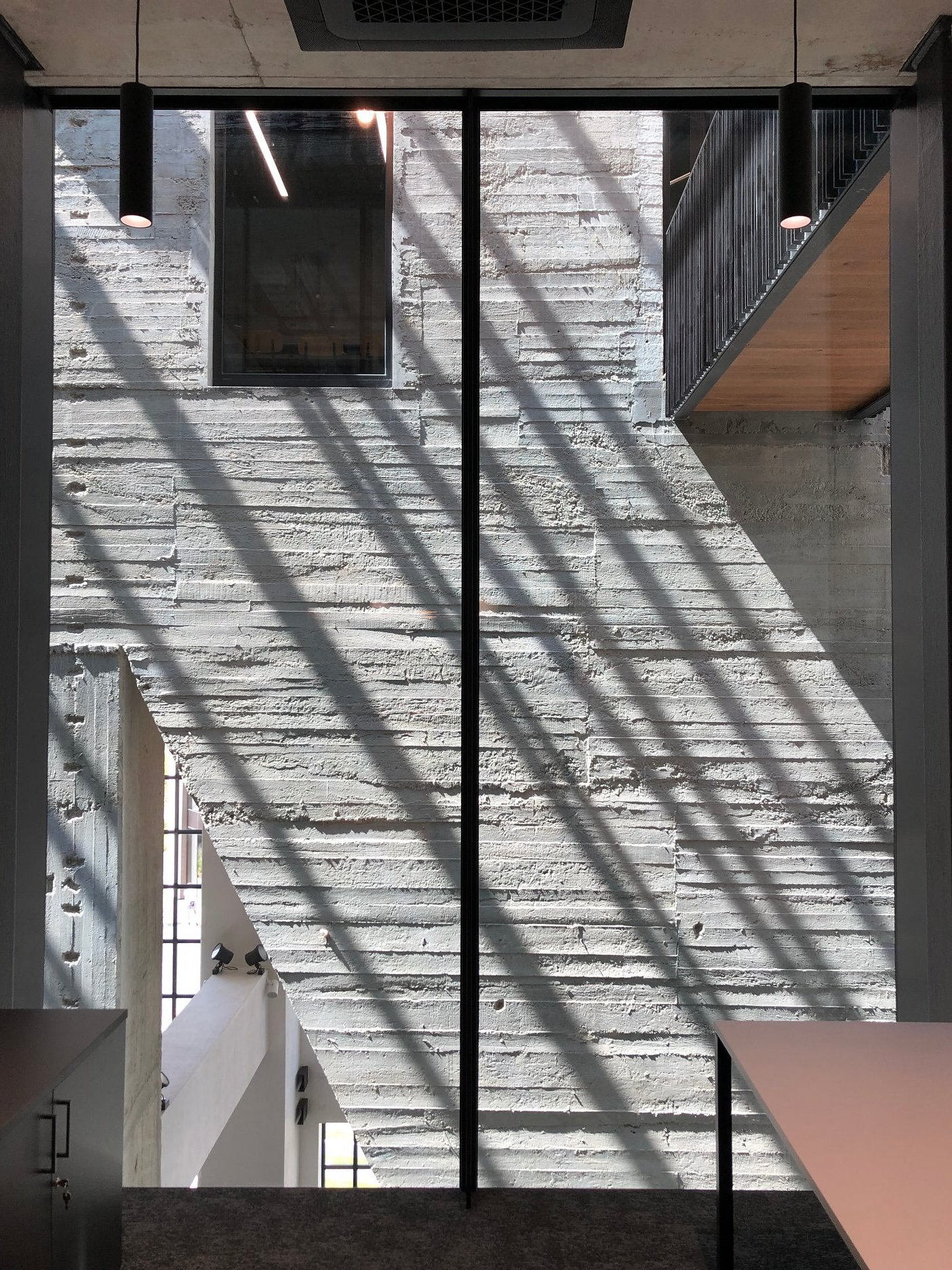 Architektonický návrh rešpektuje pôvodnú konštrukčnú a priestorovú skladbu stavby. Do obálky priemyselnej budovy boli vstavané nové stropy a priečky, pôvodnú priestorovú veľkorysosť sa napriek tomu podarilo zachovať. Dôrazné odlíšenie starého a nového podčiarkuje stavebnú a materiálovú podstatu pôvodného objektu, na ktorej sa rozhodli architekti svoj návrh postaviť.