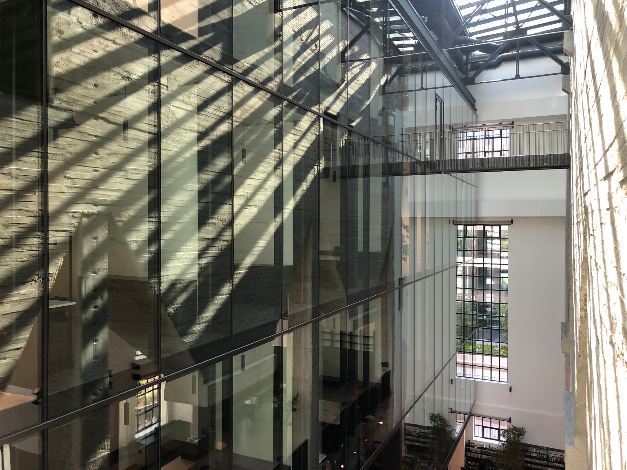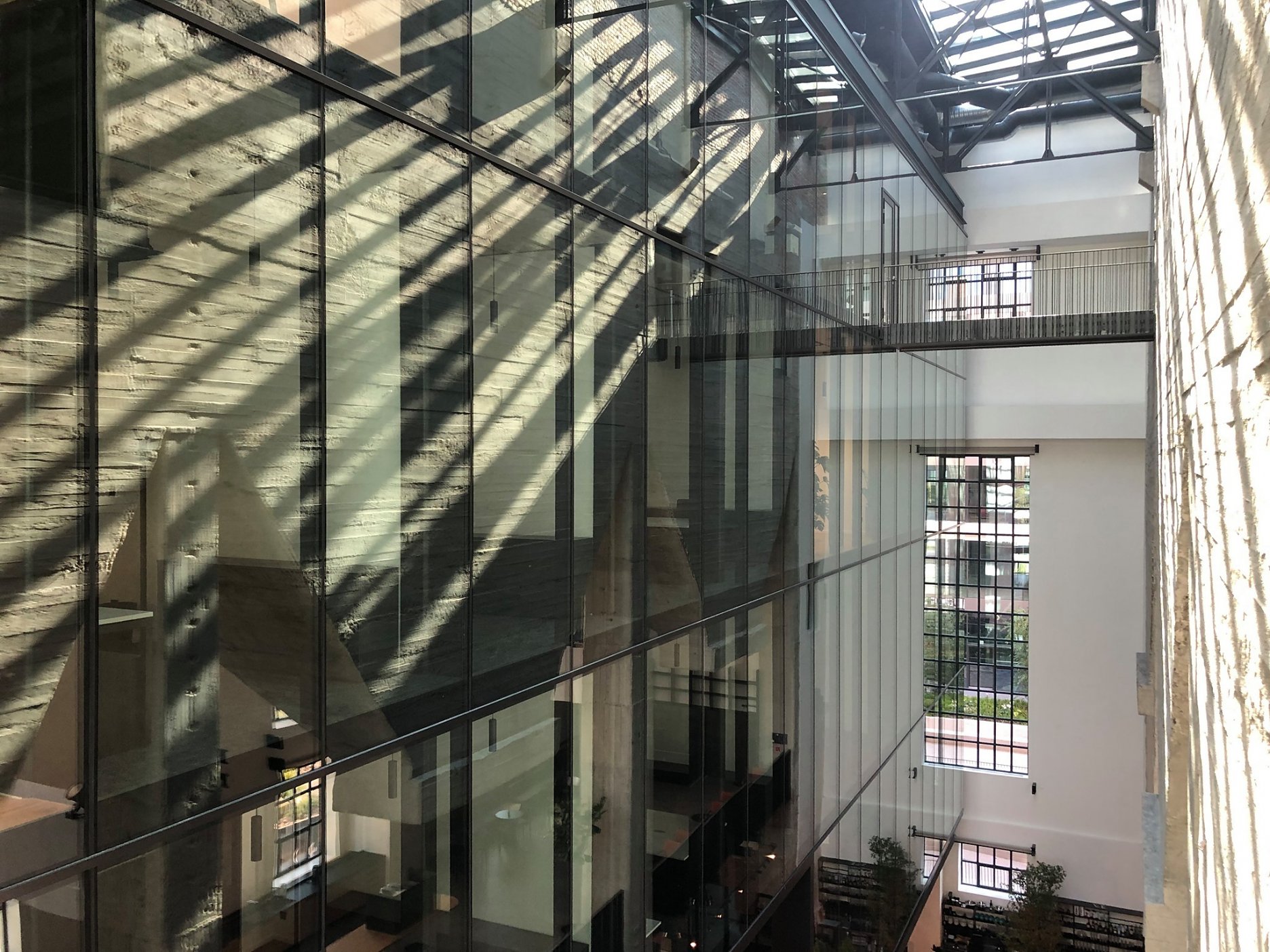Konštrukcia svetlíka je tvorená systémom Schüco FWS 60. Pre interiérové presklené steny zvolili architekti štrukturálnu fasádnu konštrukciu s tmelenými sklami Schüco FWS 50 SG ako aj protipožiarne konštrukcie Schüco.