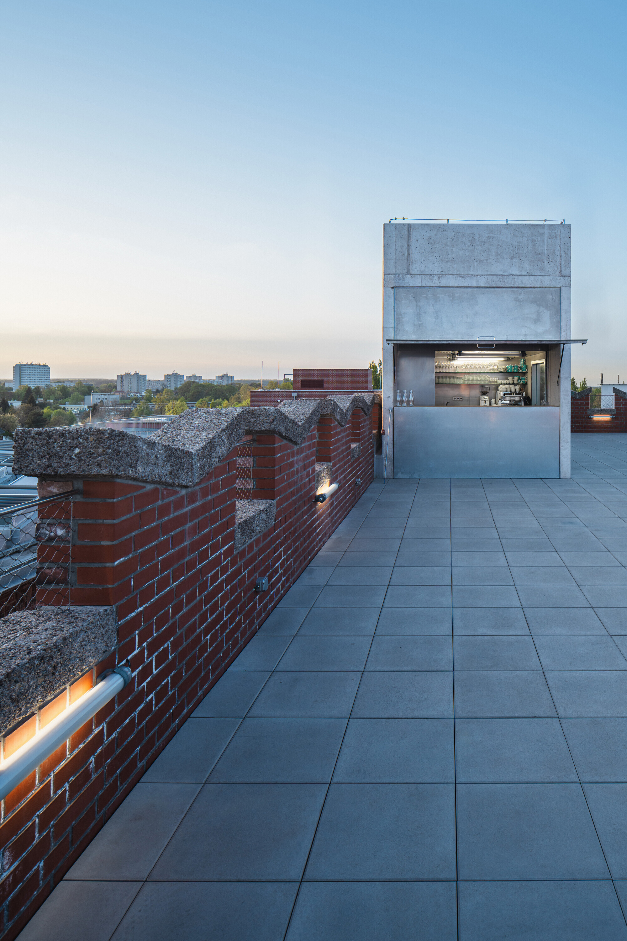 Farebnosť a výraznú materialitu prenechávajú autori fasádam. Vnútro je tlmené, uberá sa cestou nekontrastného dopĺňania pôvodnej substancie. Môžeme vnímať dobovú patinu, a stopy po vybúraných priečkach.