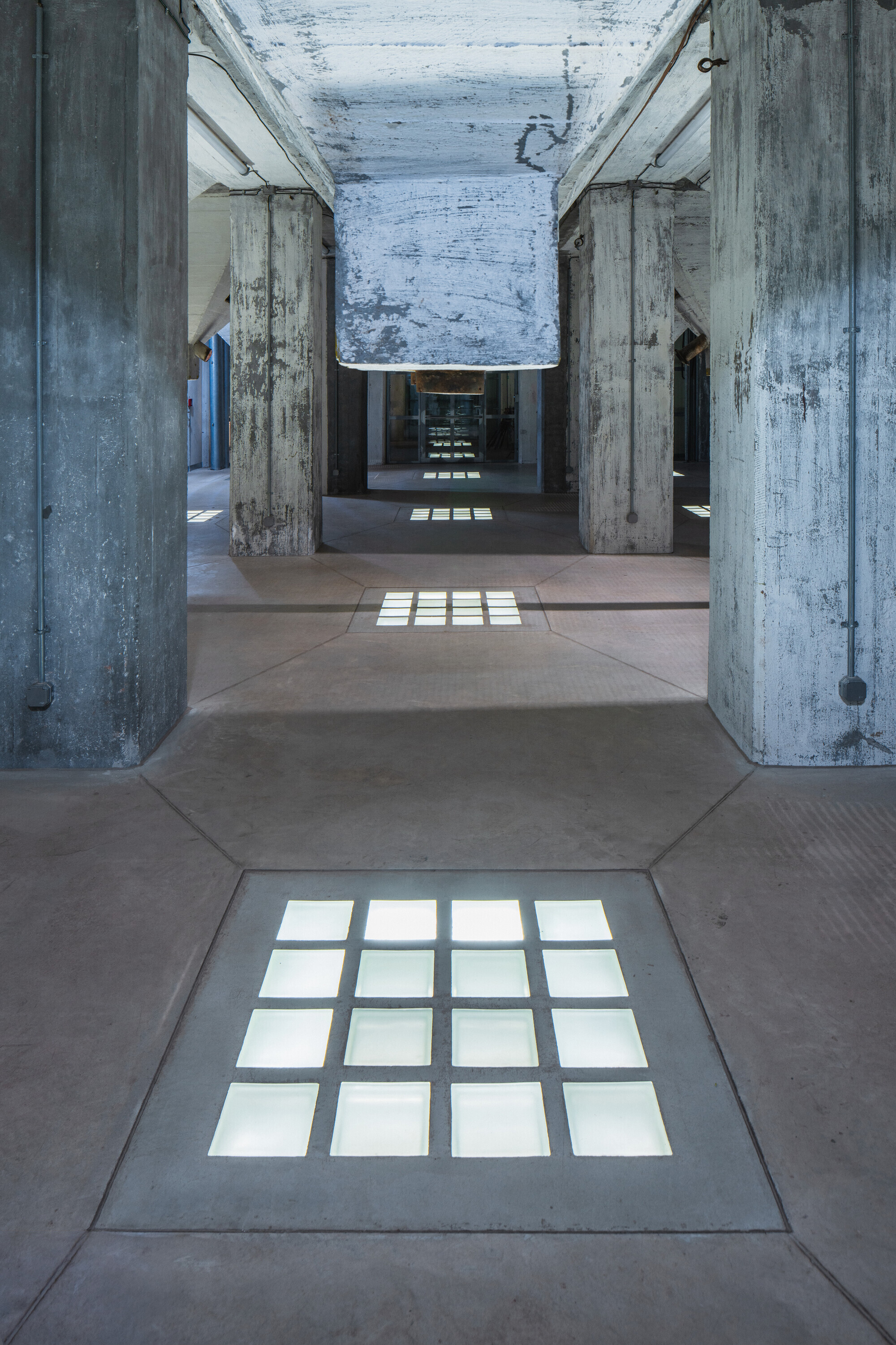 Pre silo a jeho technológiu je typická vertikalita. Sklobetónové podlahy otvárajú pre prirodzené svetlo dráhu cez všetky podlažia až do suterénu. Suterén, vyhĺbený medzi masívnymi stĺpmi, slúži ako priestor pre nové zázemie. Mohol vzniknúť vďaka tomu, že stĺpy sú založené hlbšie, než pôvodné prieskumy predpokladali. Architektom sa podarilo sprístupniť aj vnútro zásobníkov na obilie na úrovni druhého podlažia. Tu je vidieť samotnú podstatu sila.