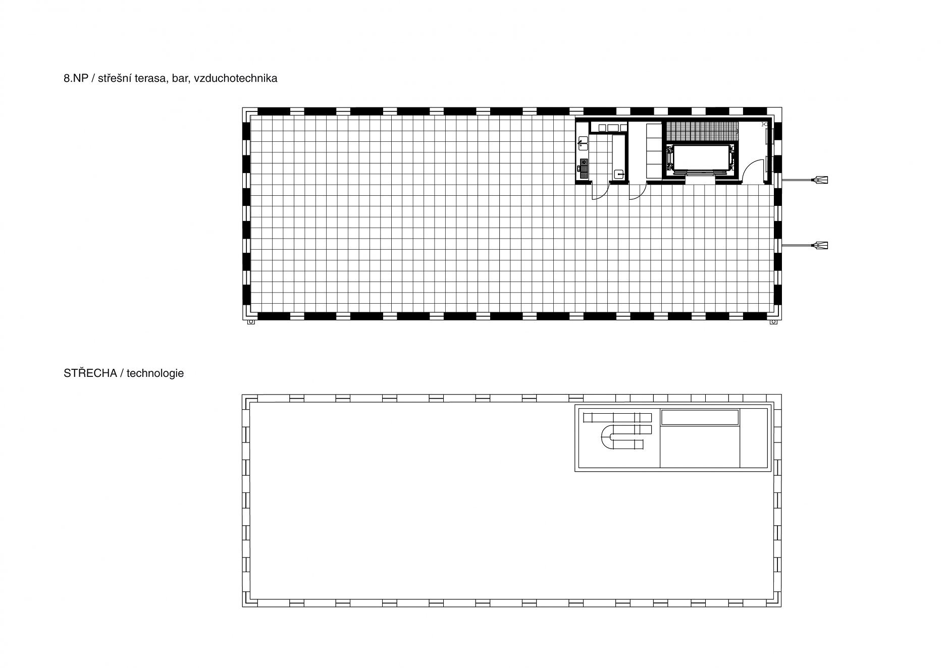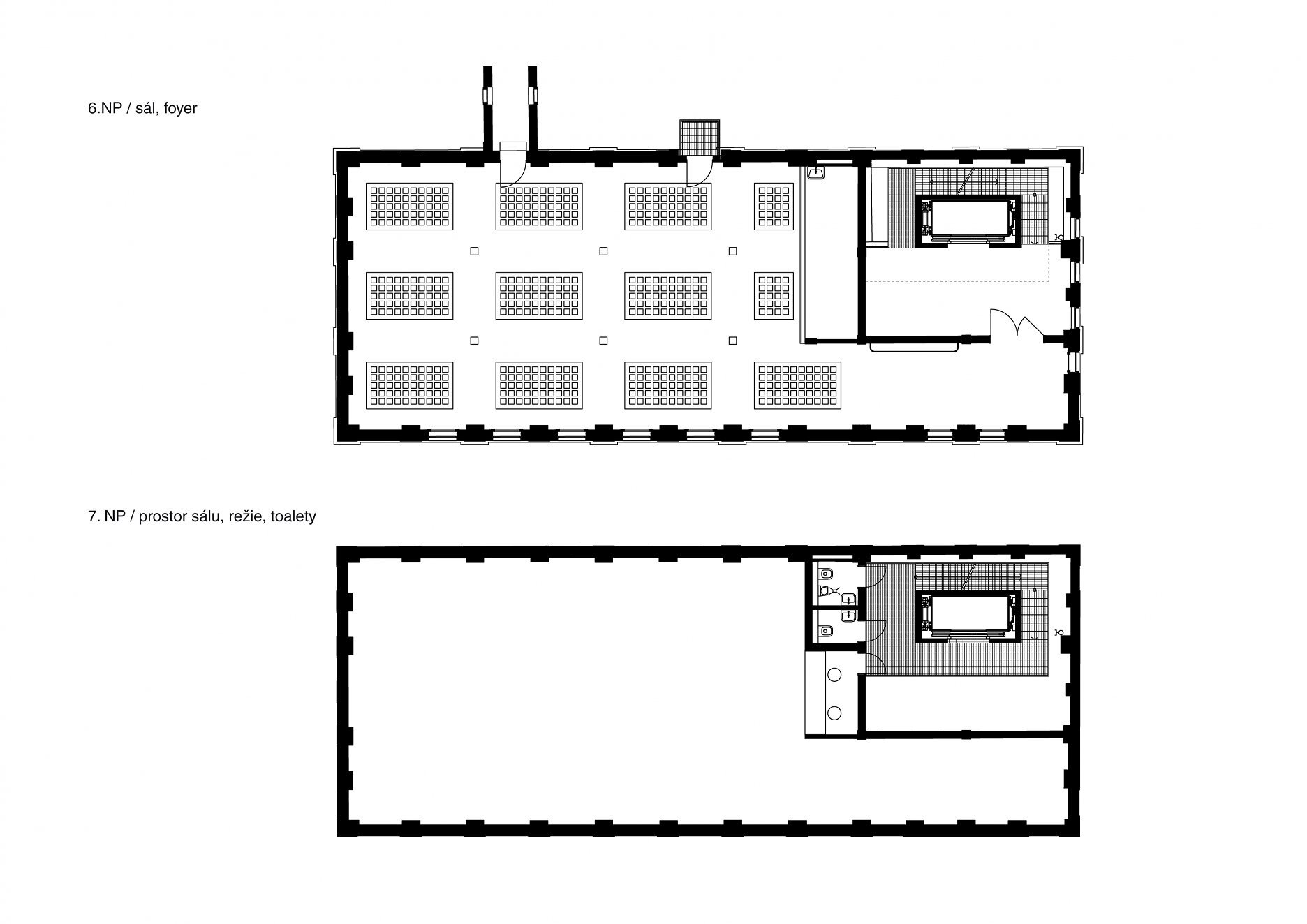 Pre novú sálu sa v 6. N.P. odstránil strop, stĺpy, strešná doska a atika. Z pôvodnej konštrukcie zostalo zachované iba obvodové murivo. Po odbúraní strešnej dosky sa statická schéma zmenila z rámu na voľne stojace steny, votknuté do stropnej dosky a preto boli steny počas prác stužené dočasnou oceľovou konštrukciou. V obvodovom murive sa k existujúcim stĺpom pribetónovali nové v tvare písmena C. Realizovala sa pochôdzna plochá strecha, atika bola spätne vymurovaná, šachtu ukončila strešná nadstavba z pohľadového betónu.