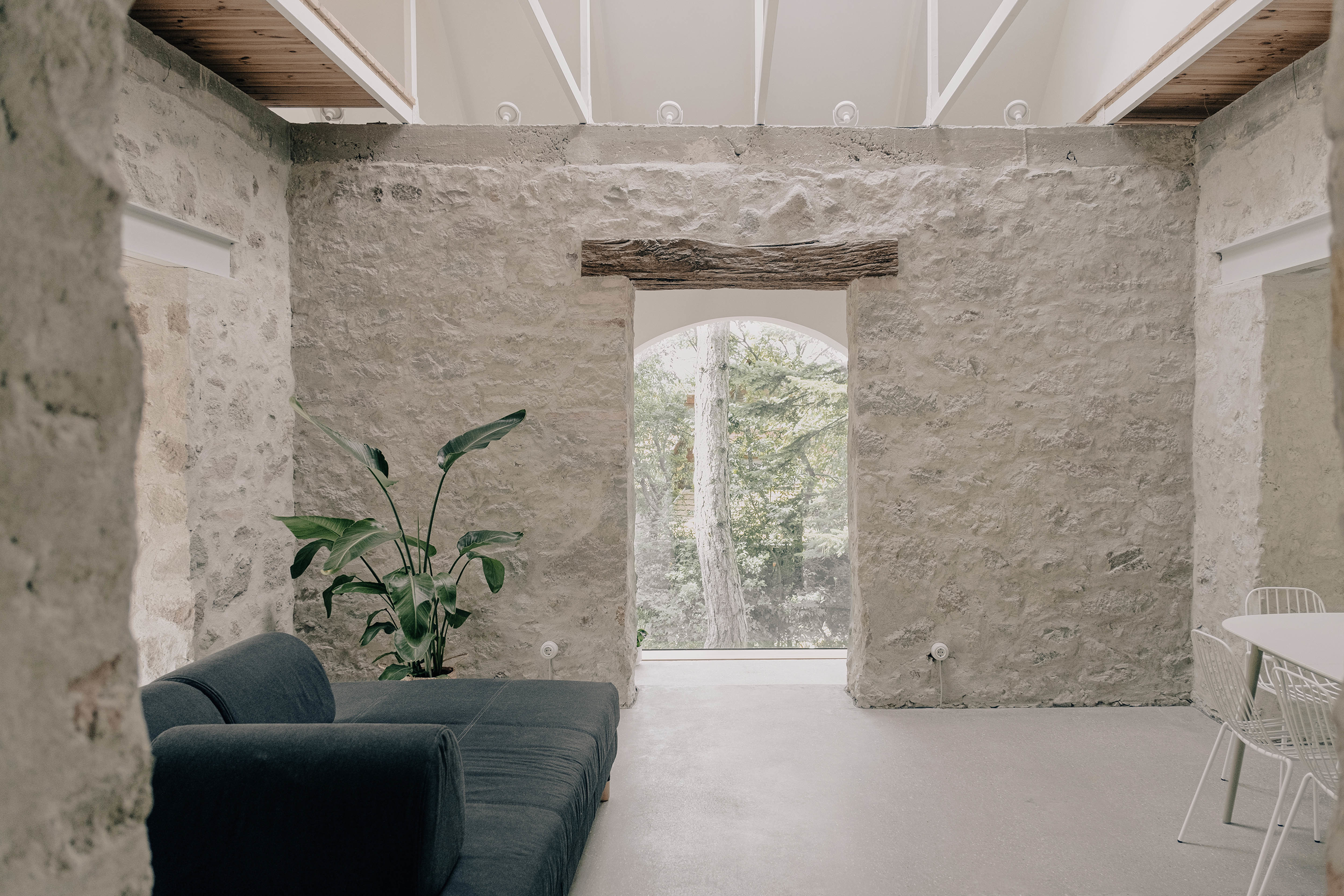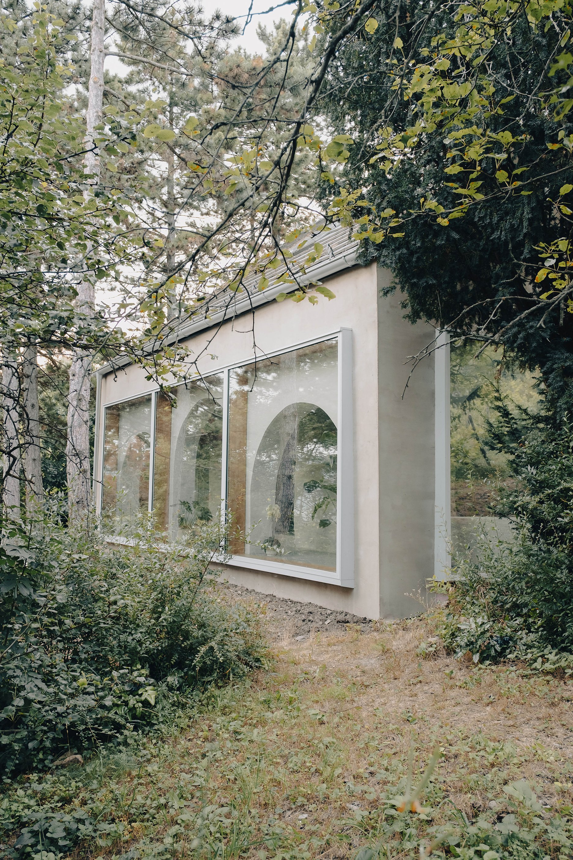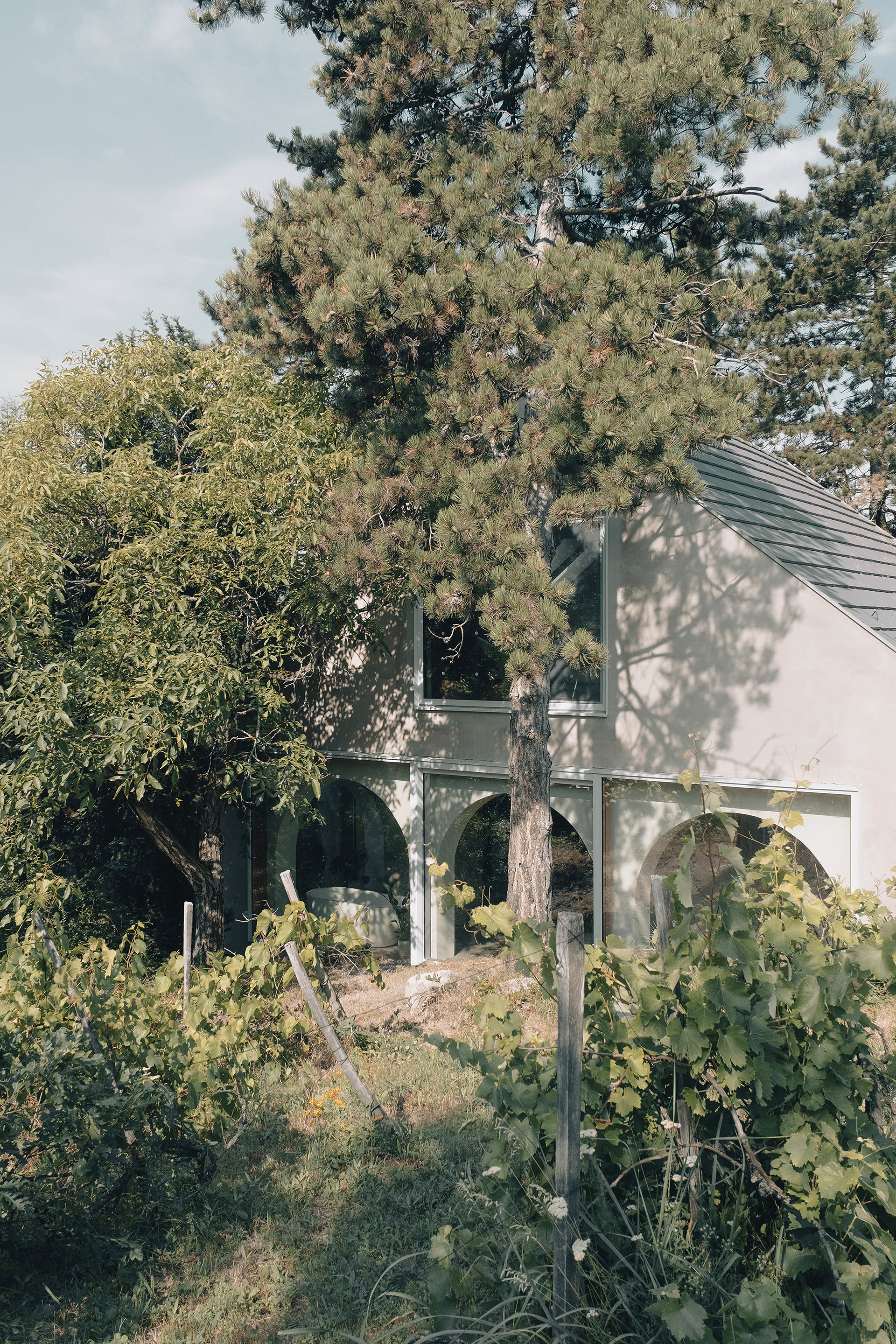 Stavba v meste Szentendre, neďaleko Budapešti, vznikla pred niečo vyše sto rokmi ako sklad ovocia. Základný stavebný materiál tvorili kamene vyzbierané zo záhrady. Utilitárny objekt bol neskôr rozšírený o otvorenú kolonádu a využívaný na víkendové pobyty. Keď súčasní majitelia prvýkrát navštívili záhradu, objekt už roky chátral. Napriek tomu vedeli, že našli svoj nový domov.