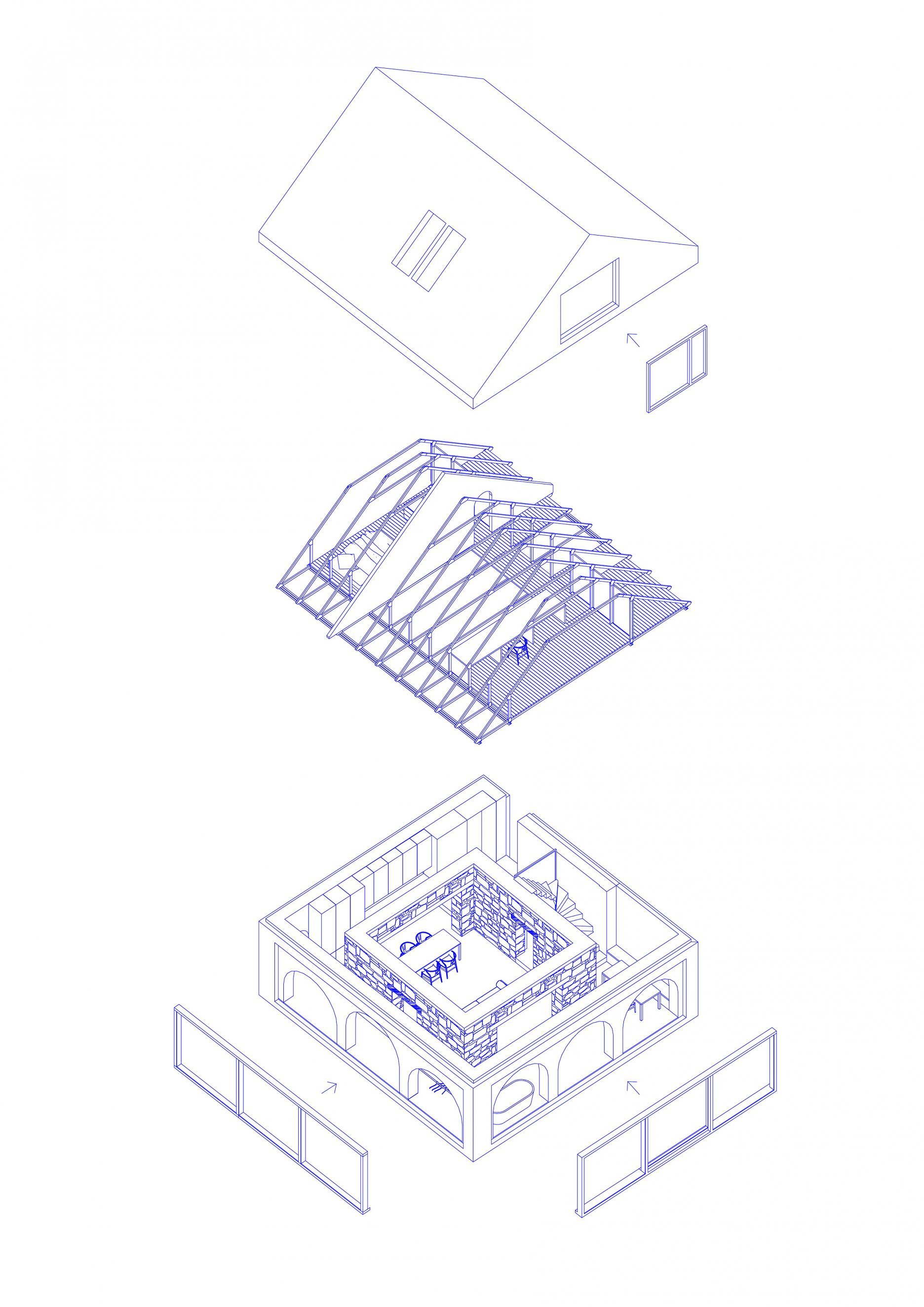 “Keď sme prvýkrát vstúpili do domu, uvedomili sme si potenciál historickej štruktúry. Majitelia tiež cítili, že predchádzajúci návrh architektov sa nezhodoval s ich predstavami. Napriek napätej finančnej situácii nás požiadali o nový projekt - prirodzene s obmedzeným rozpočtom. Preto sme namiesto tvorby kompletnej architektonickej dokumentácie navrhli víziu a prezentovali možnosti záchrany domu prostredníctvom pôdorysu, dvoch rezov a niekoľkých vizualizácií. Medzitým náš priateľ Dr. Dezső Hegyi - vedúci Katedry nosných konštrukcií na Technickej a hospodárskej univerzite v Budapešti podporil celý projekt návrhom statického riešenia. Keďže výstavba prebiehla neďaleko Budapešti, mohli sme zabezpečiť v rámci priateľských vzťahov aj autorský dozor,” ozrejmujú komplikovaný proces architekti.