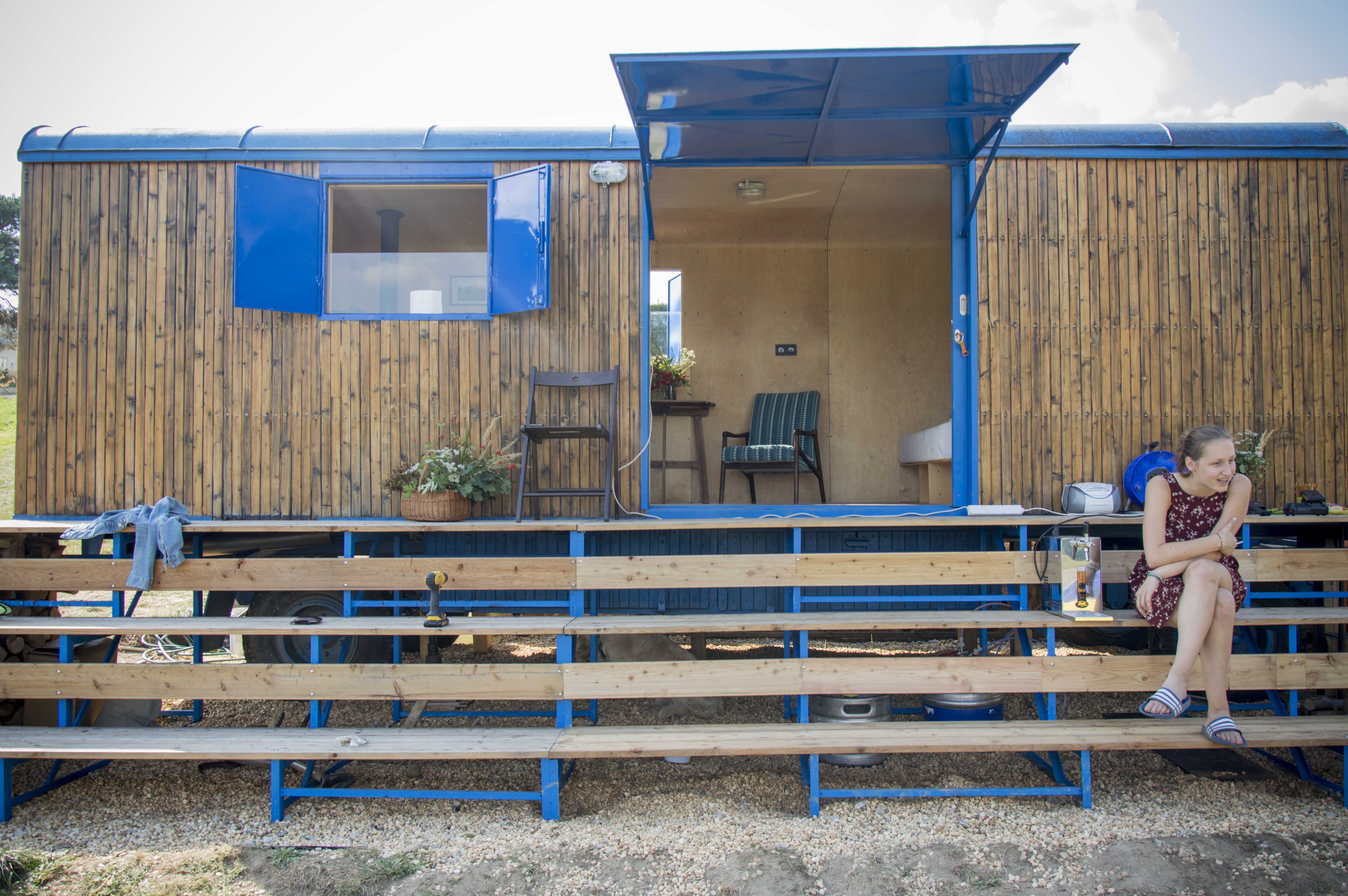 Opláštění maringotky a téměř všechna okna byla zachována. S ohledem na umístění na svažitý pozemek s výhledem na hrad Lipnice bylo jedno boční okno zvětšeno na velké posuvné prosklené dveře, které lze otevřít a propojit tak vnitřní prostor s venkovní stupňovitou platformou a užívat si výhled do krajiny.