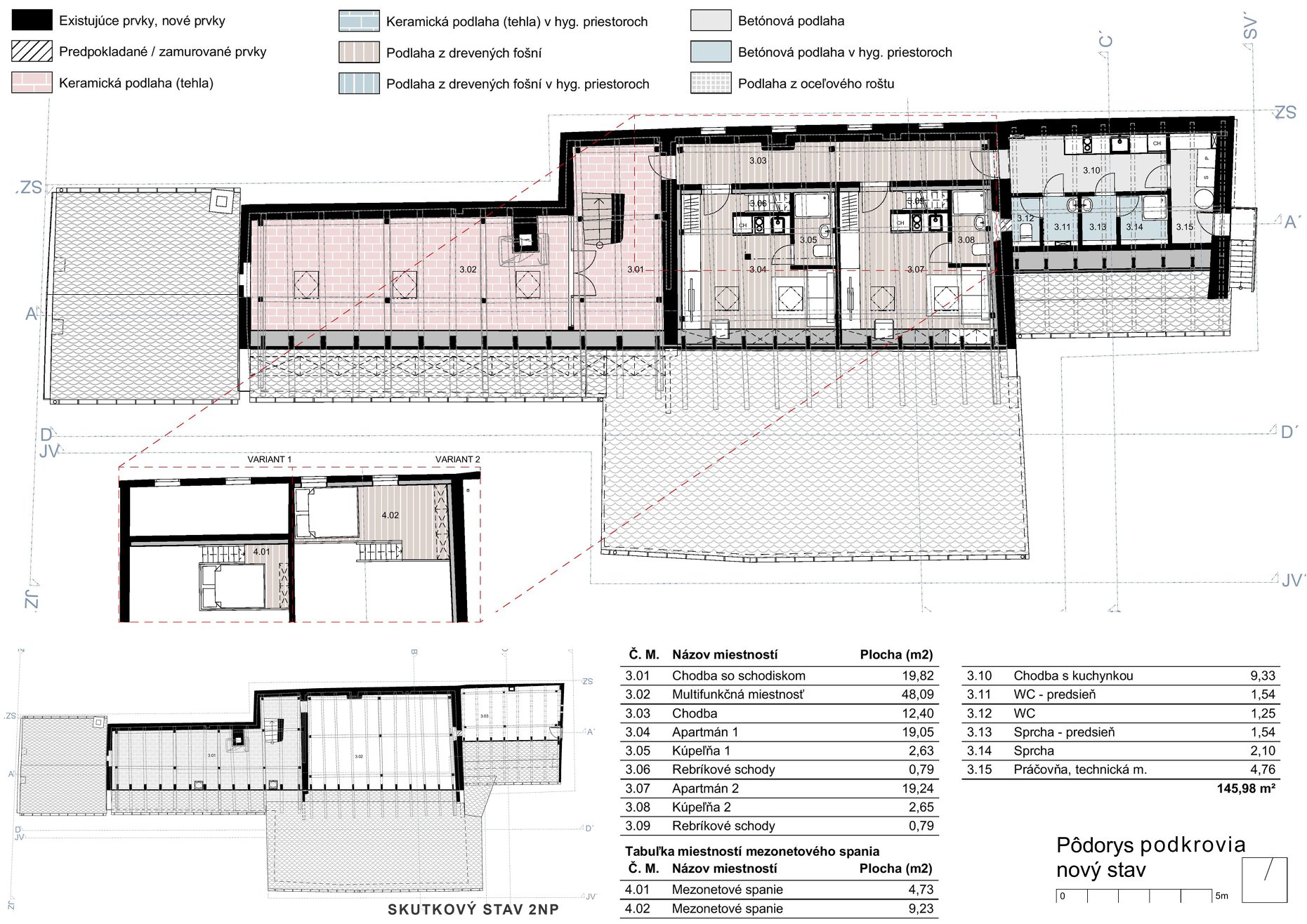 Na 3.N.P. sú navrhnuté priestory pre kľudové prevádzky – zasadačka, knižnica , ateliér, či prechodné bývanie