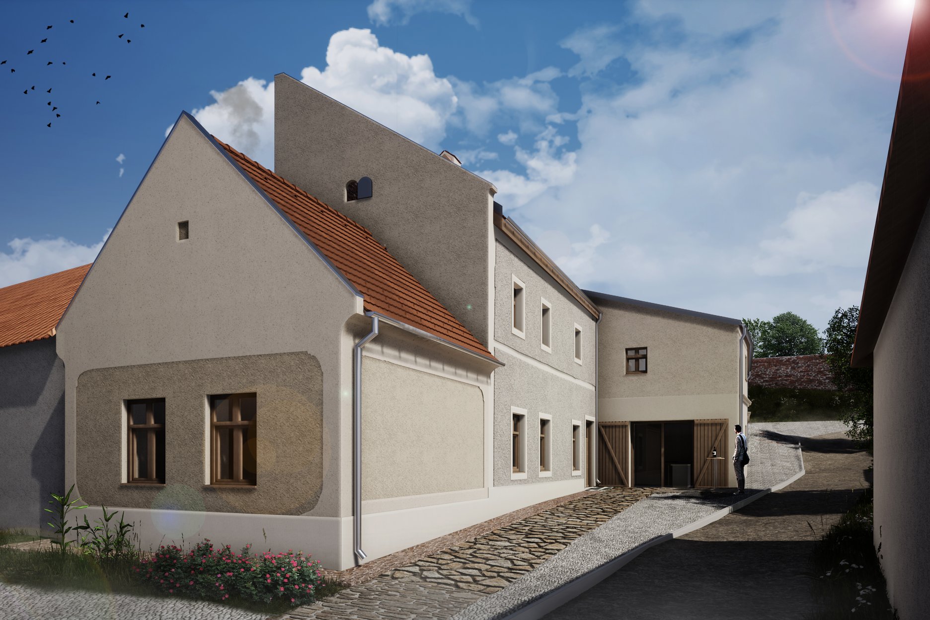 - replika bývalej maštale je navrhnutá v rovnakom tvare ako pôvodný objekt s tým, že zohľadňuje bezbariérové napojenie podláh na objekt mlynice, výška pultu krovu je navrhnutá tak, aby v interiéri krovu mlynice mohol byť prezentovaný presvetľovací otvor vo východnej stene štítu mlynice v priestore č. 3.02