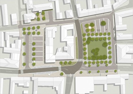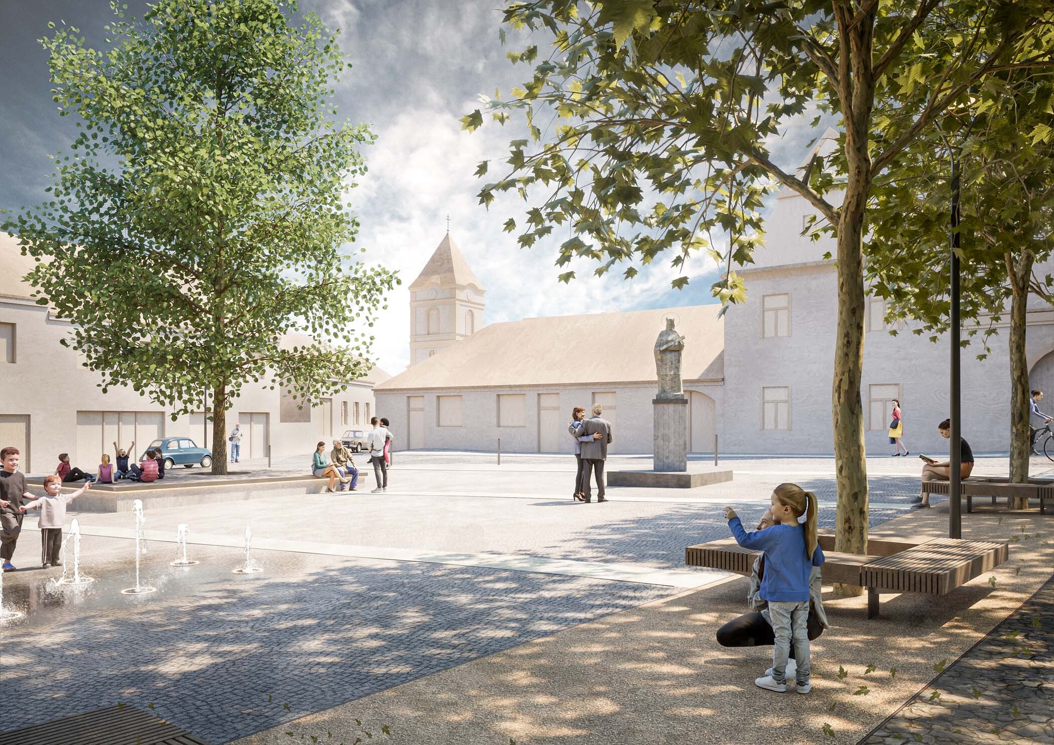 Zásadním cílem návrhu bylo vytvořit příjemné místo pro pobyt, jasně definovat roli obou bystřických náměstí a navrhnout adekvátně prostorné volné plochy pro hromadné společenské aktivity i atraktivní místa pro komorní setkání ve stínu stromů. Znovuoživení a zatraktivnění centra města jsme chtěli dosáhnout dostavbou chybějících funkčních městských domů v prolukách, důvtipným prostorovým konceptem, použitím kvalitních kamenných dlažeb, výběrem vhodných stromů a doplněním veřejného prostoru atraktivními akcenty a prvky mobiliáře.