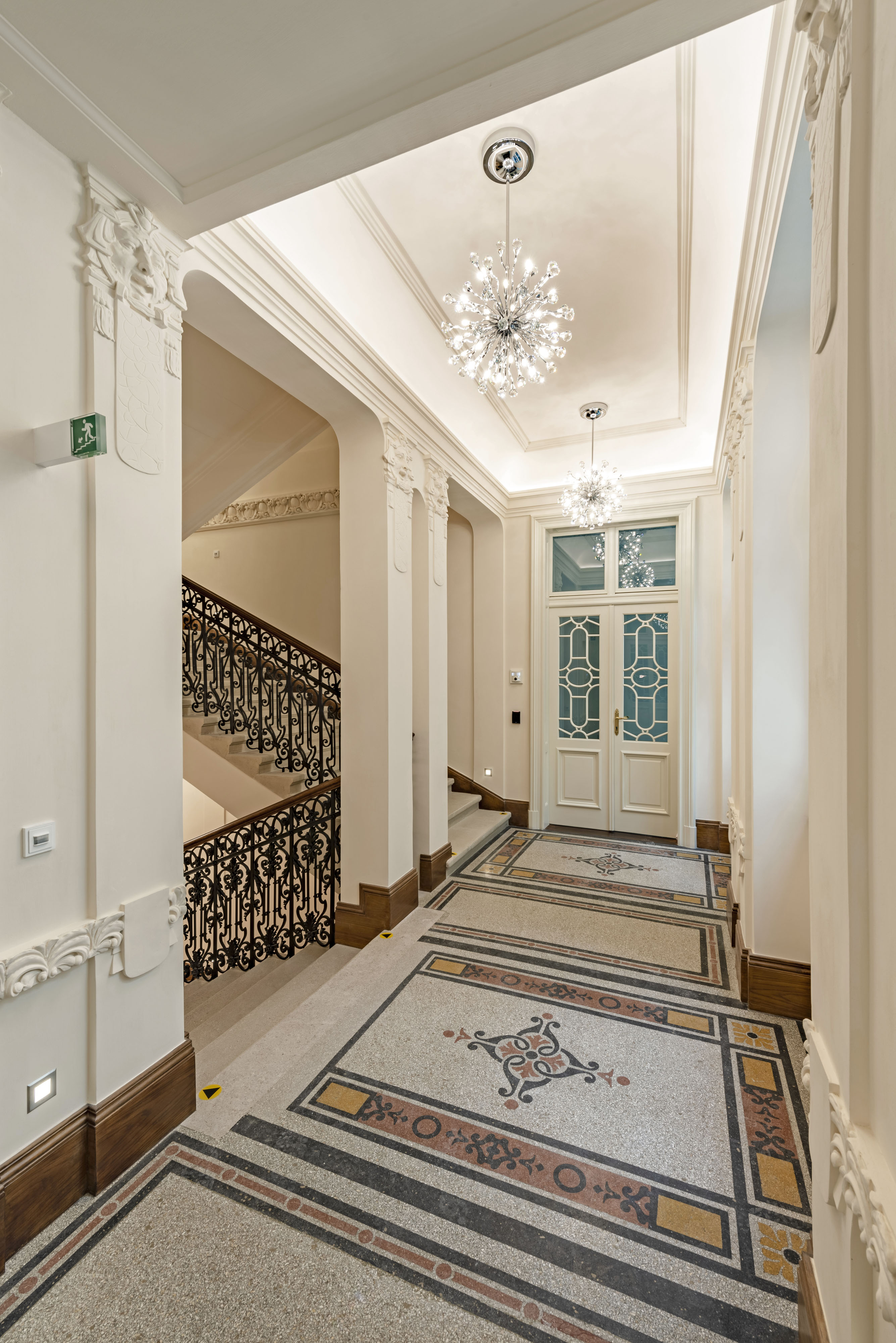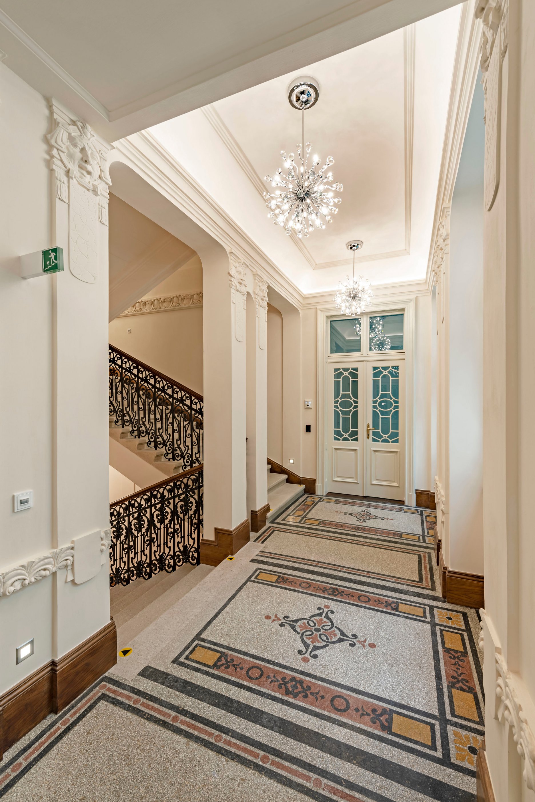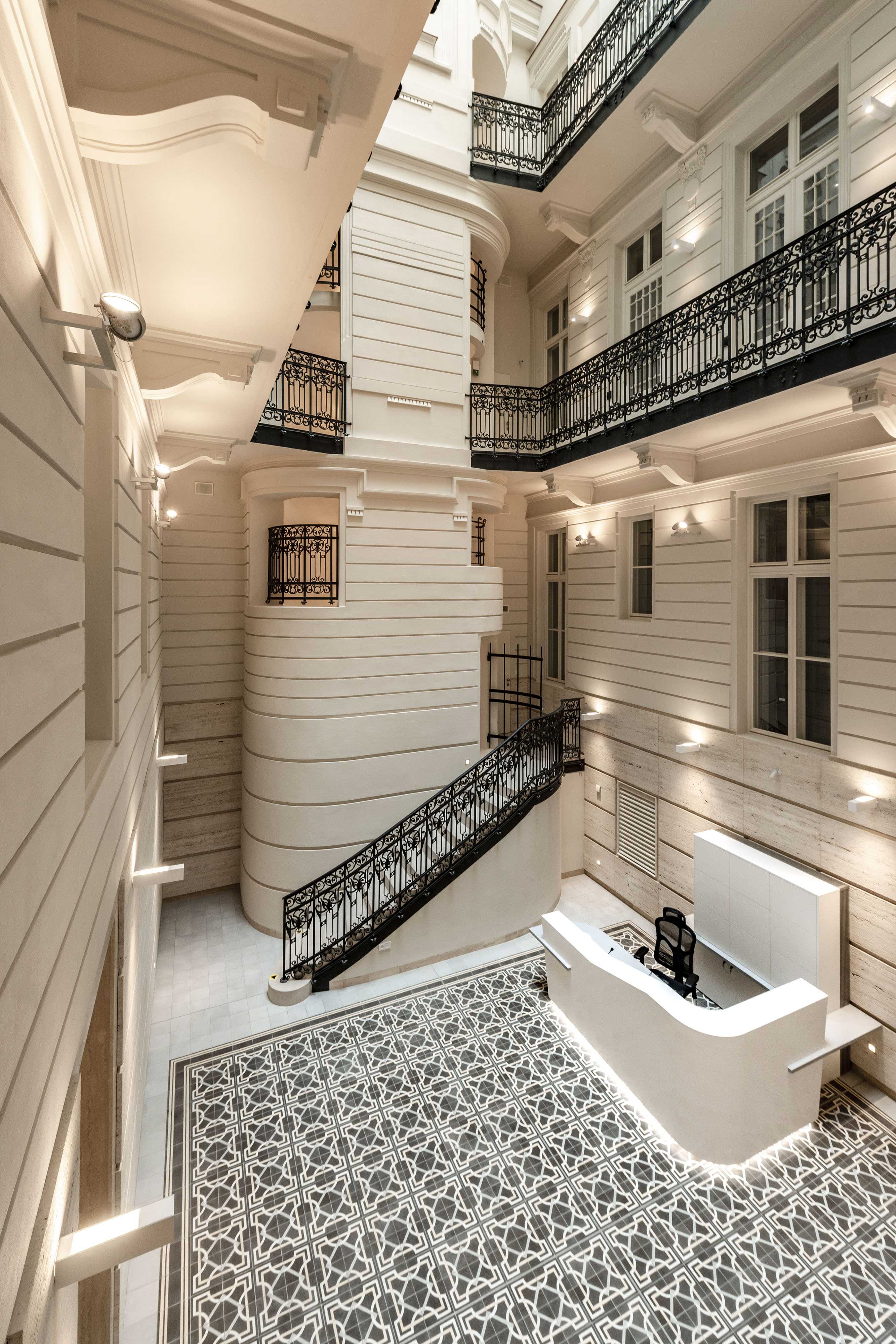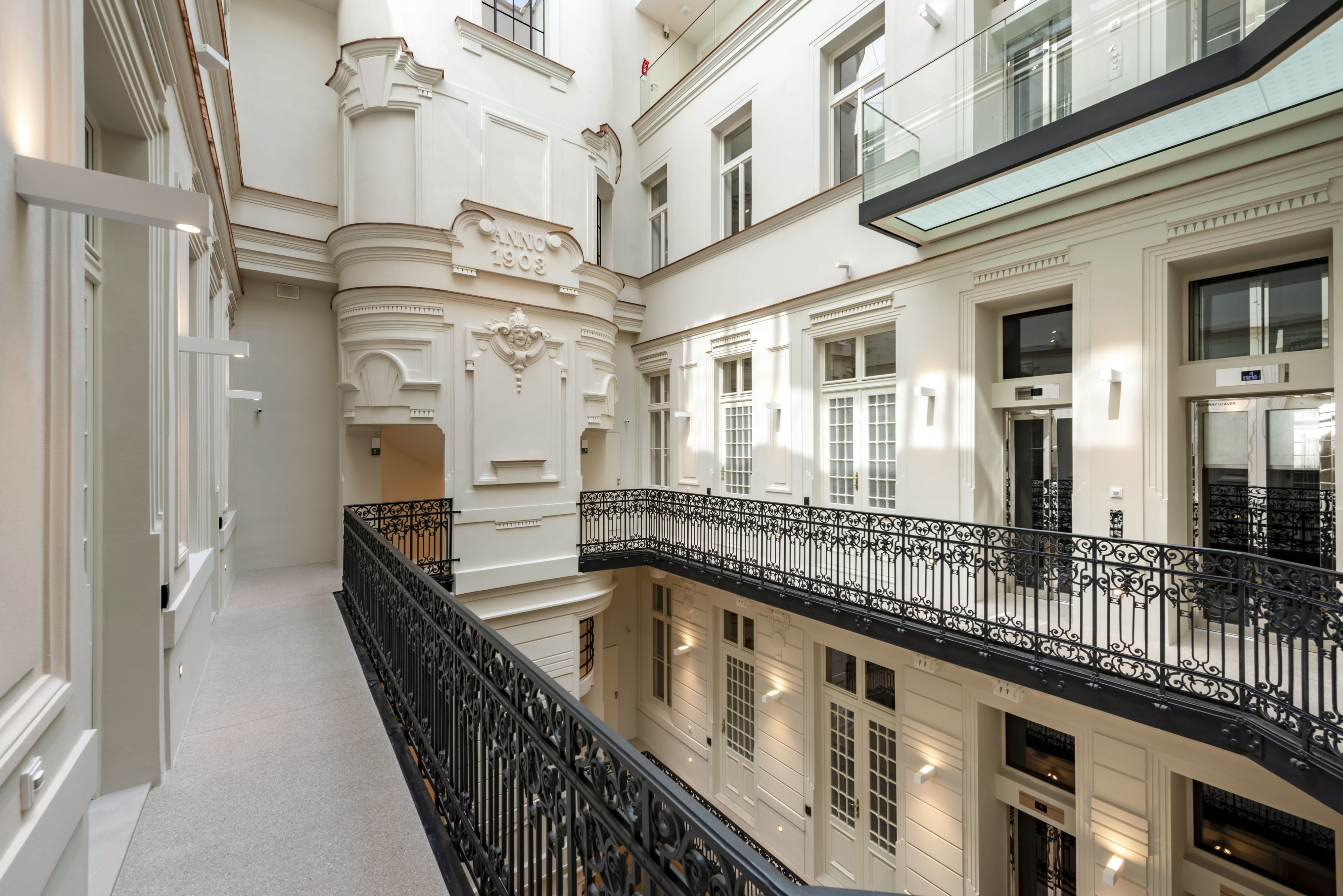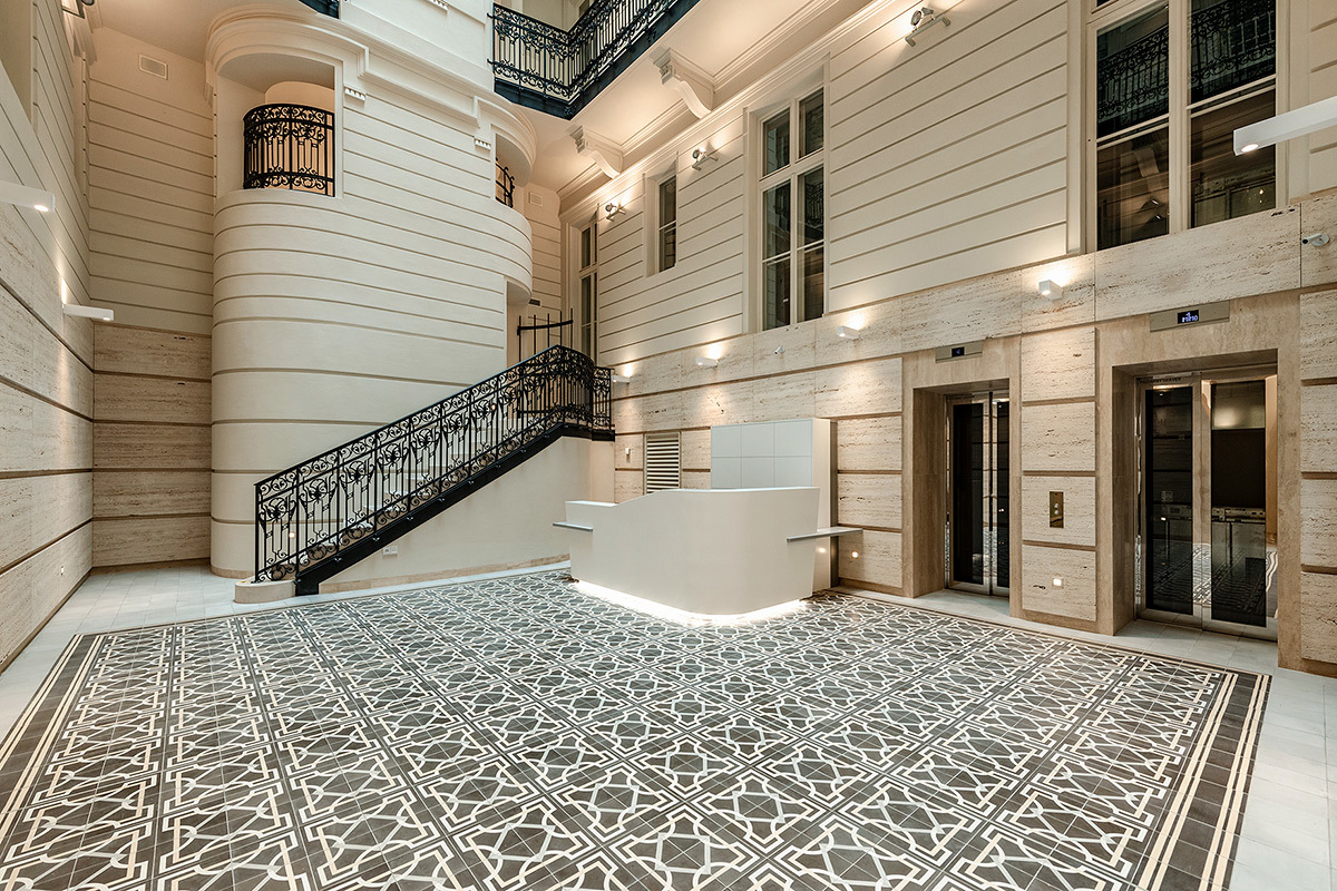 Súčasťou stavby sú aj repliky historických dvojkrídlových okenných výplní s izolačným dvojsklom na vonkajšom krídle a elektricky ovládateľnou vonkajšou drevenou lamelovou roletou. V interiéri je okrem iného zachované reprezentačné štukami zdobené kamenné schodisko s pôvodným kovaným zábradlím z prelomu storočí. Priestory tak spĺňajú vysoký štandard náročnej klientely, ktorá hľadá reprezentatívne priestory v centre mesta.