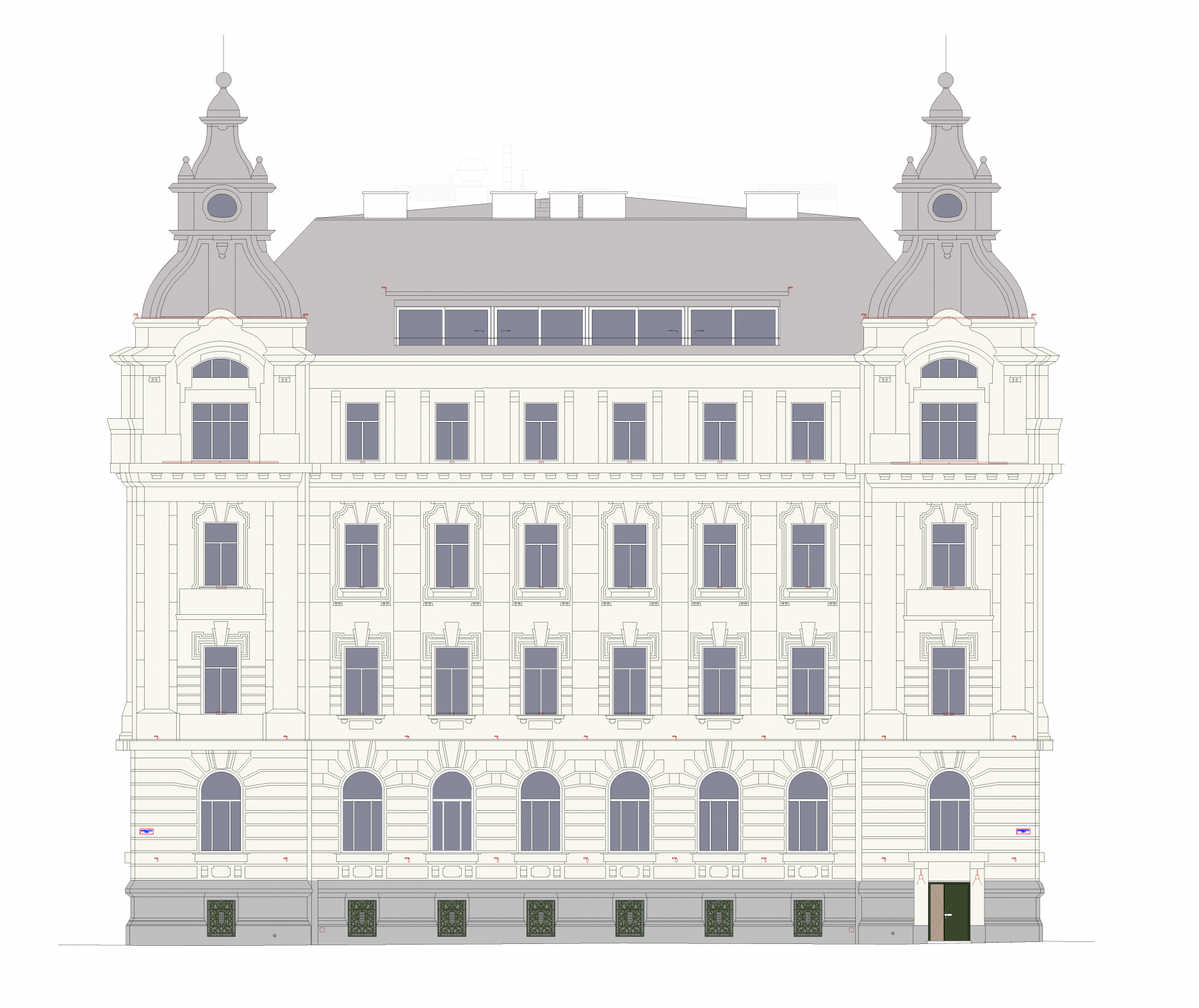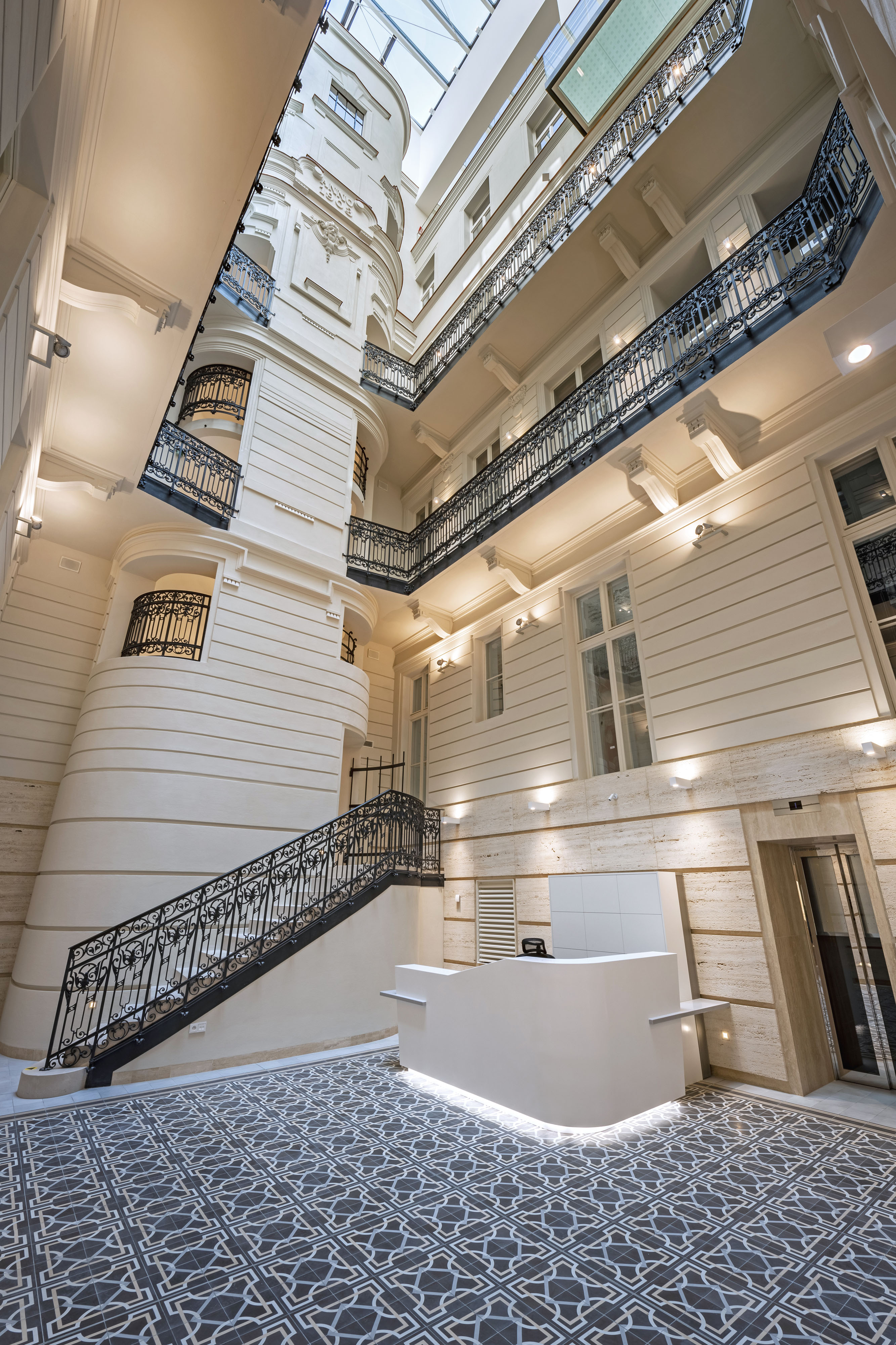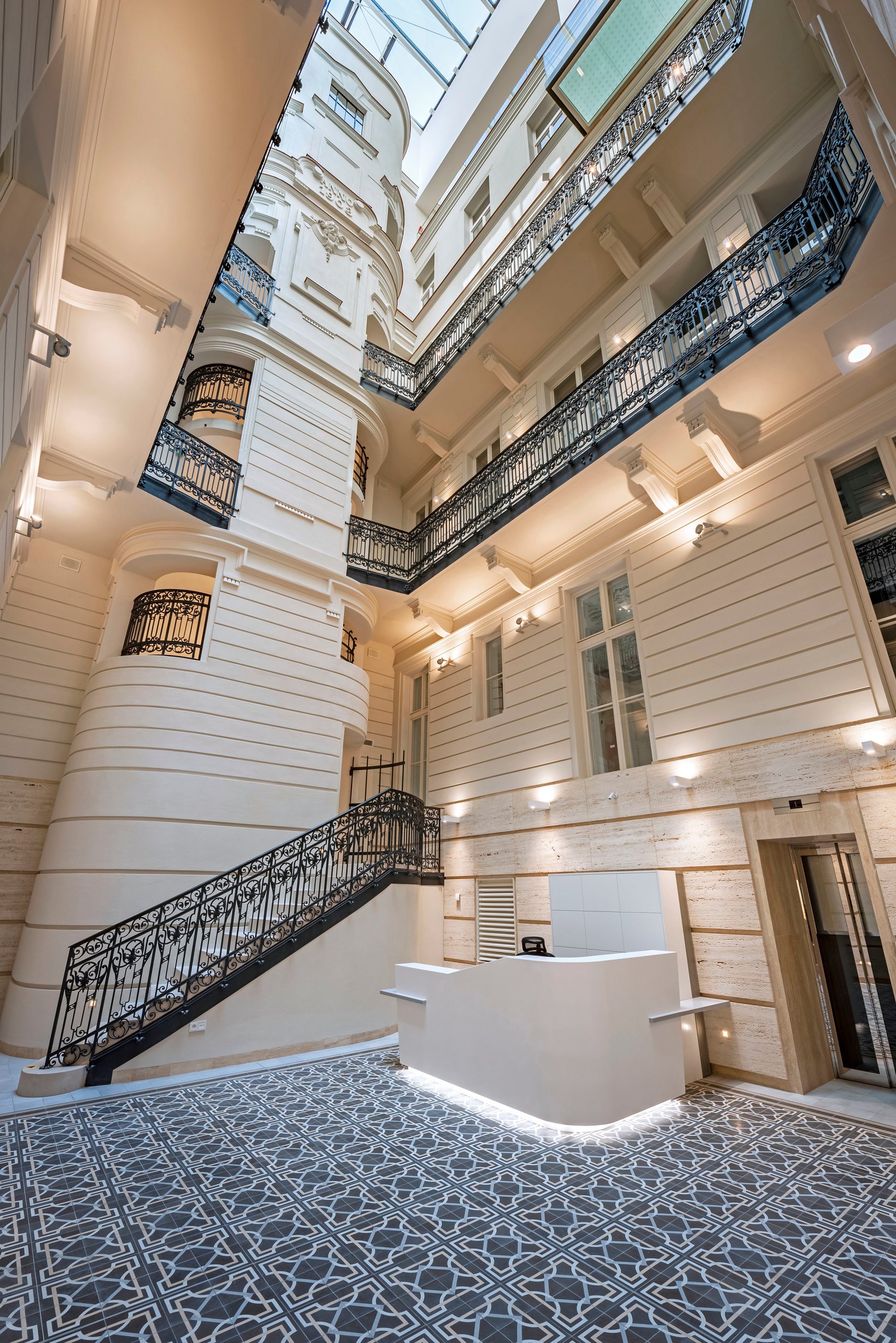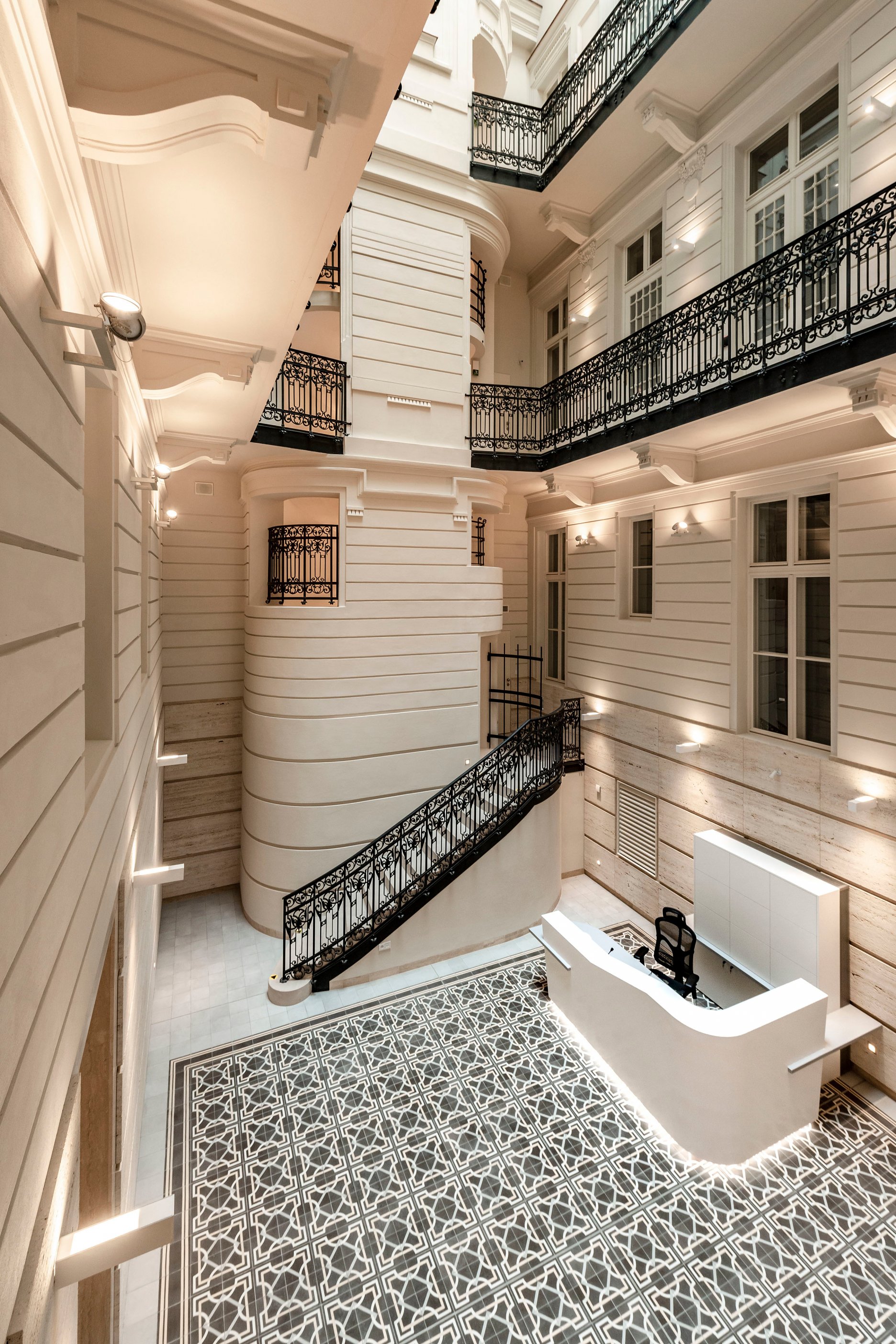 Súčasťou stavby sú aj repliky historických dvojkrídlových okenných výplní s izolačným dvojsklom na vonkajšom krídle a elektricky ovládateľnou vonkajšou drevenou lamelovou roletou. V interiéri je okrem iného zachované reprezentačné štukami zdobené kamenné schodisko s pôvodným kovaným zábradlím z prelomu storočí. Priestory tak spĺňajú vysoký štandard náročnej klientely, ktorá hľadá reprezentatívne priestory v centre mesta.