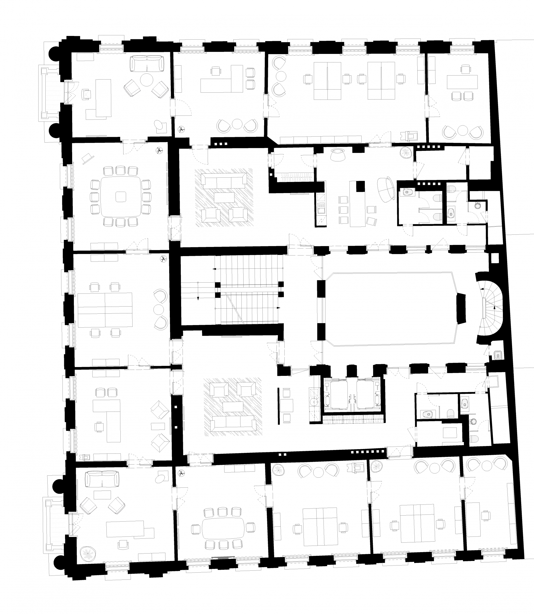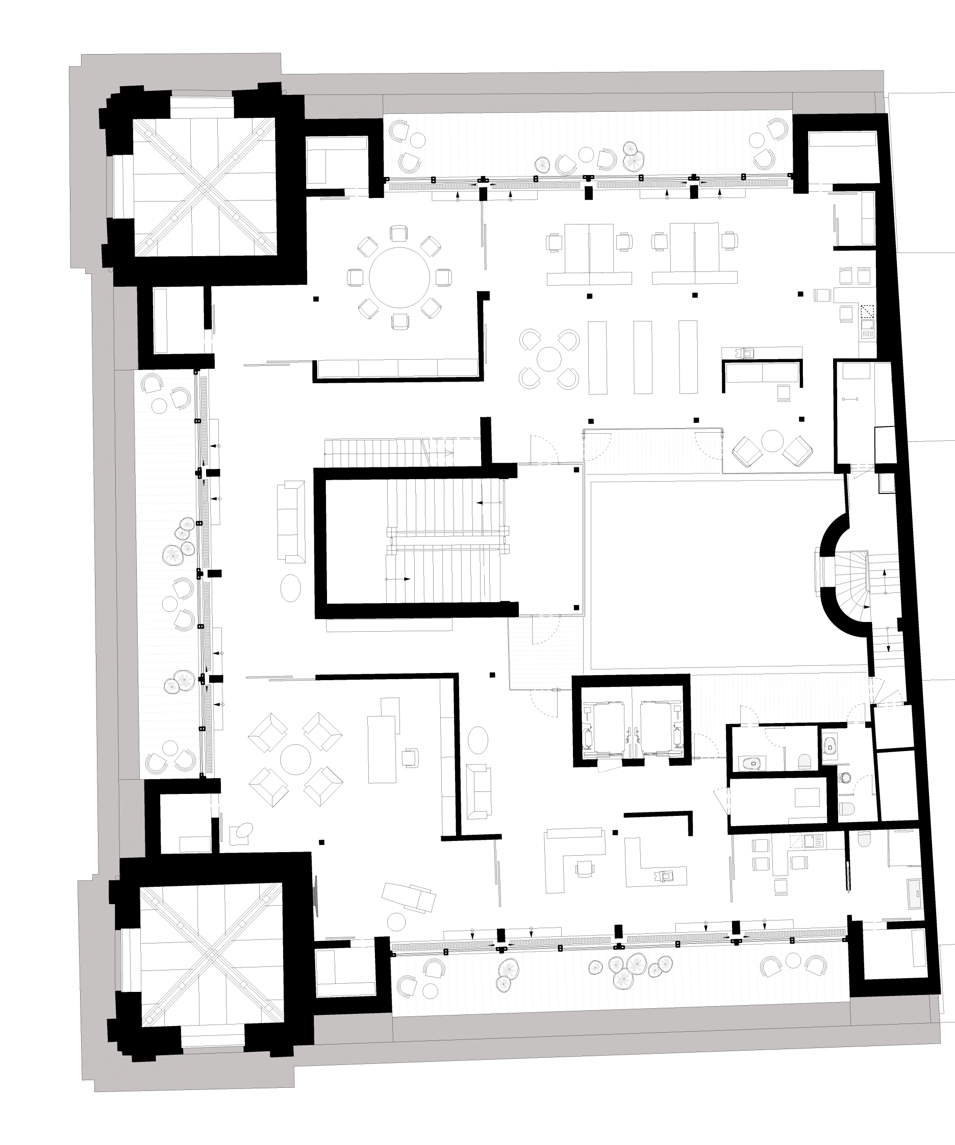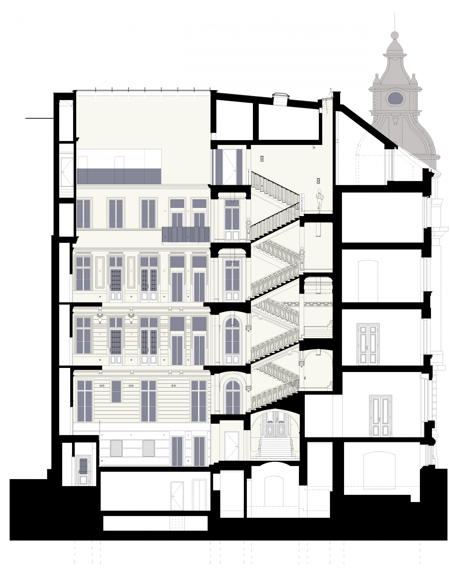 Stavebník sa pri rekonštrukcii držal projektu architektonickej kancelárie Petra Boudu a Ivana Masára, ktorá má s rekonštrukciou historických objektov a kultúrnych pamiatok viac ako tridsaťročné skúsenosti. "Princípom rekonštrukcie a prestavby je dôkladná pamiatková obnova pôvodných historických priestorov a detailov s uplatnením nových prvkov v súdobom architektonickom výraze. Prestavba podkrovia s terasami, prestrešenie vnútorného dvora sa snaží o dialóg s reštaurátorsky obnovenou a remeselne zvládnutou štukatúrou, terazzom, kováčskou, stolárskou a klampiarskou prácou," vysvetľujú architekti.