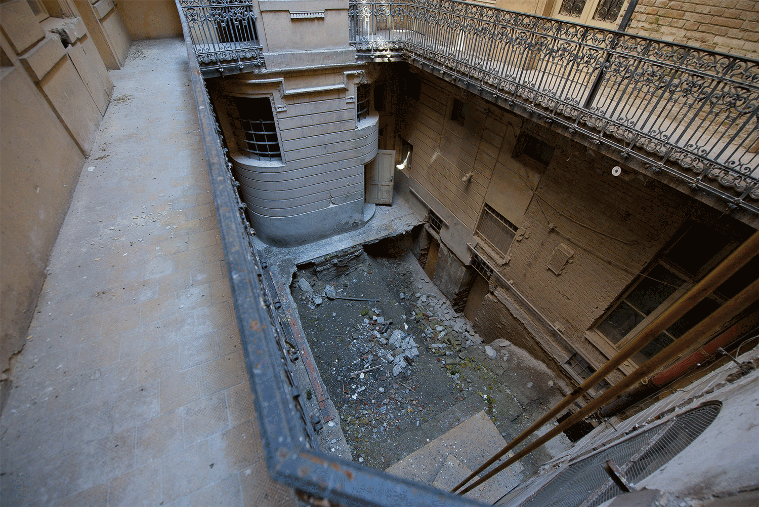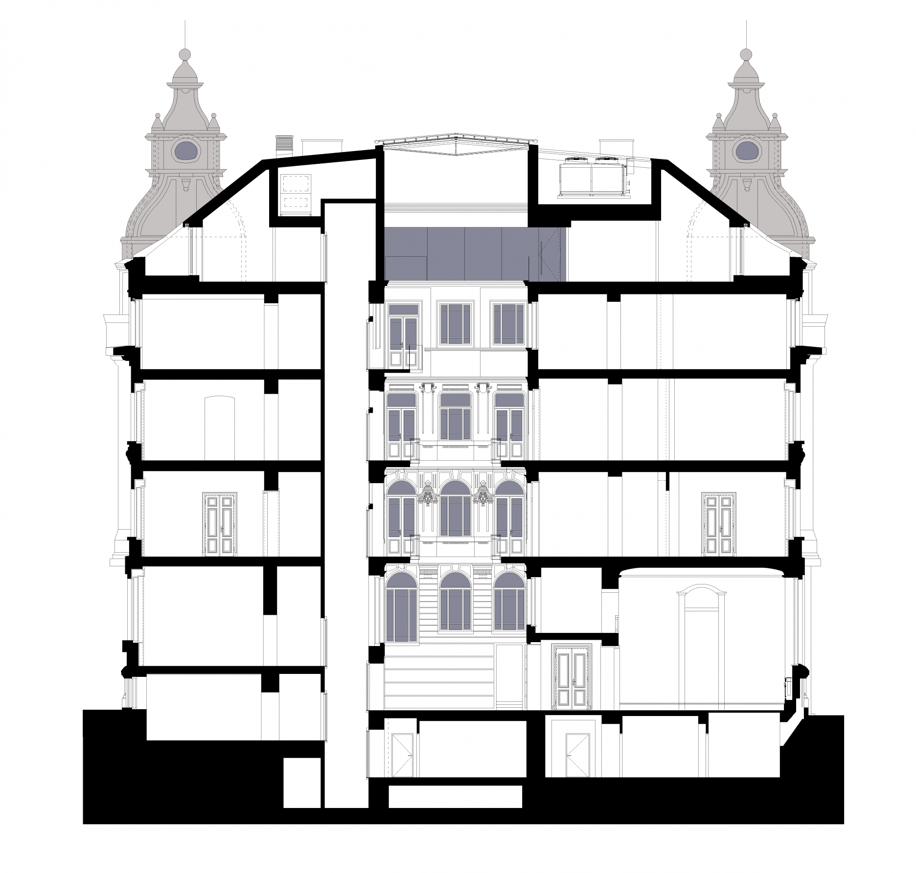 Stavebné práce boli zahájené v januári 2014. Ich výsledkom bola po päťročnom snažení aj konverzia otvoreného vnútorného dvora na centrálnu halu s transparentným zastrešením. Dôležitou súčasťou projektu boli práce na charakteristických nárožných vežičkách, ktoré rekonštrukcia v interiéri plne otvorila. Ďalším logickým krokom bola prestavba a využitie najvyššieho podlažia pod novým krovom.