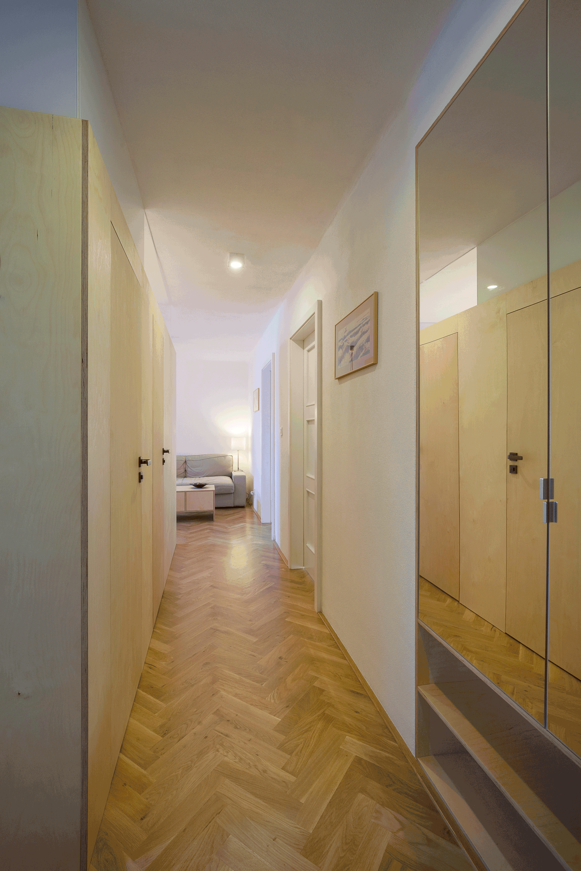 "Z rekonstrukce máme radost, jelikož dokončený interiér působí tak jednoduše a čistě jako na papíru, což není vždycky zcela samozřejmé, protože za vším stojí řada detailů a řešení nerovností starého bytu, se kterými si musel truhlář poradit." zhodnotili rekonštrukciu bytu v Plzni architekti Jiří Zábran a Tereza Nová.