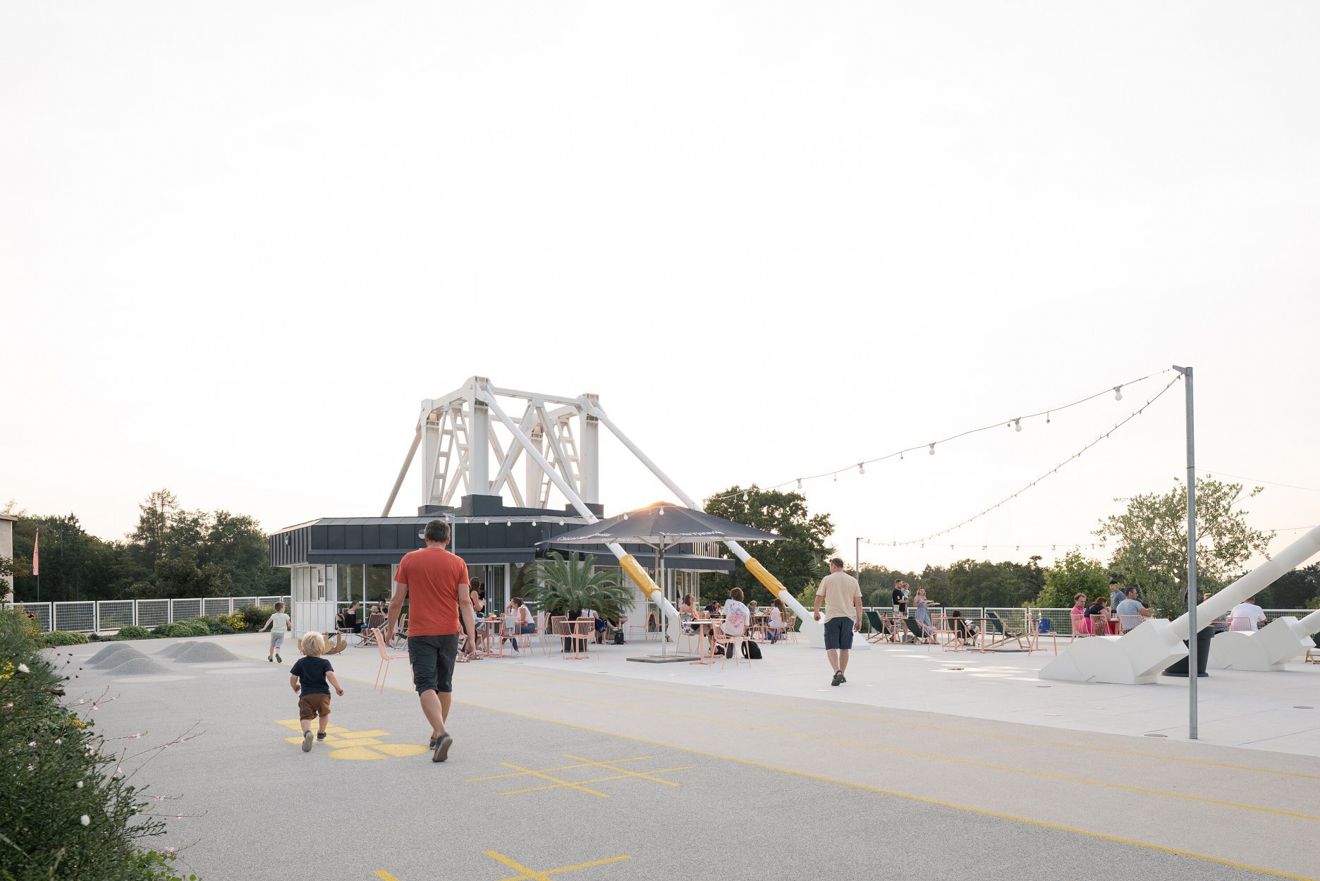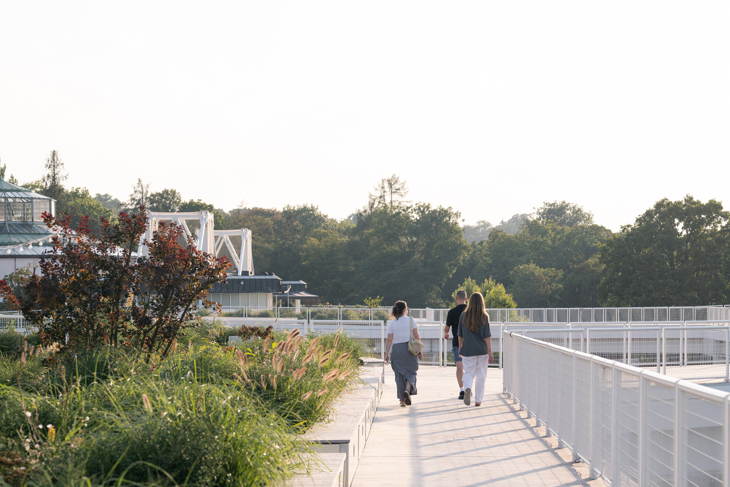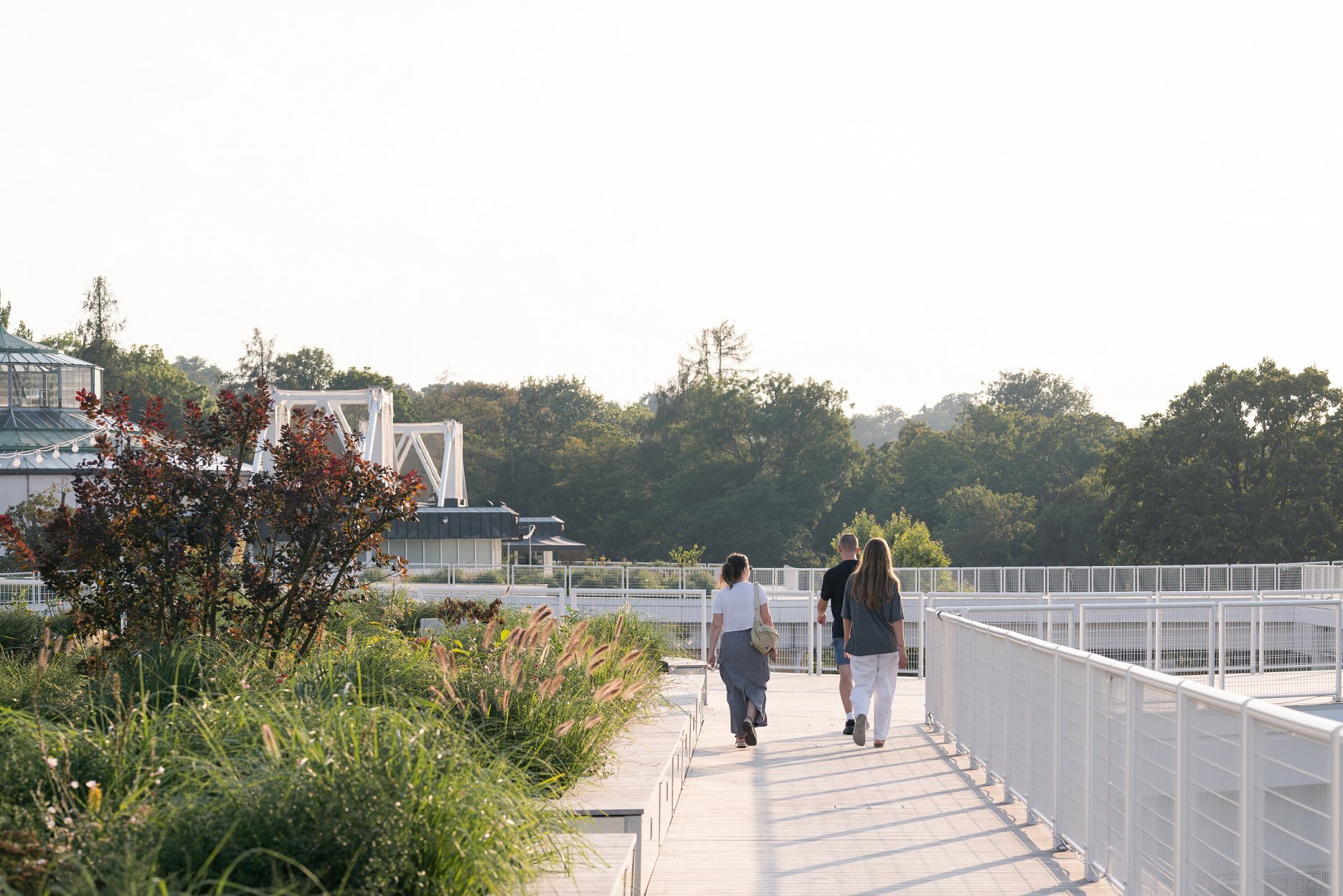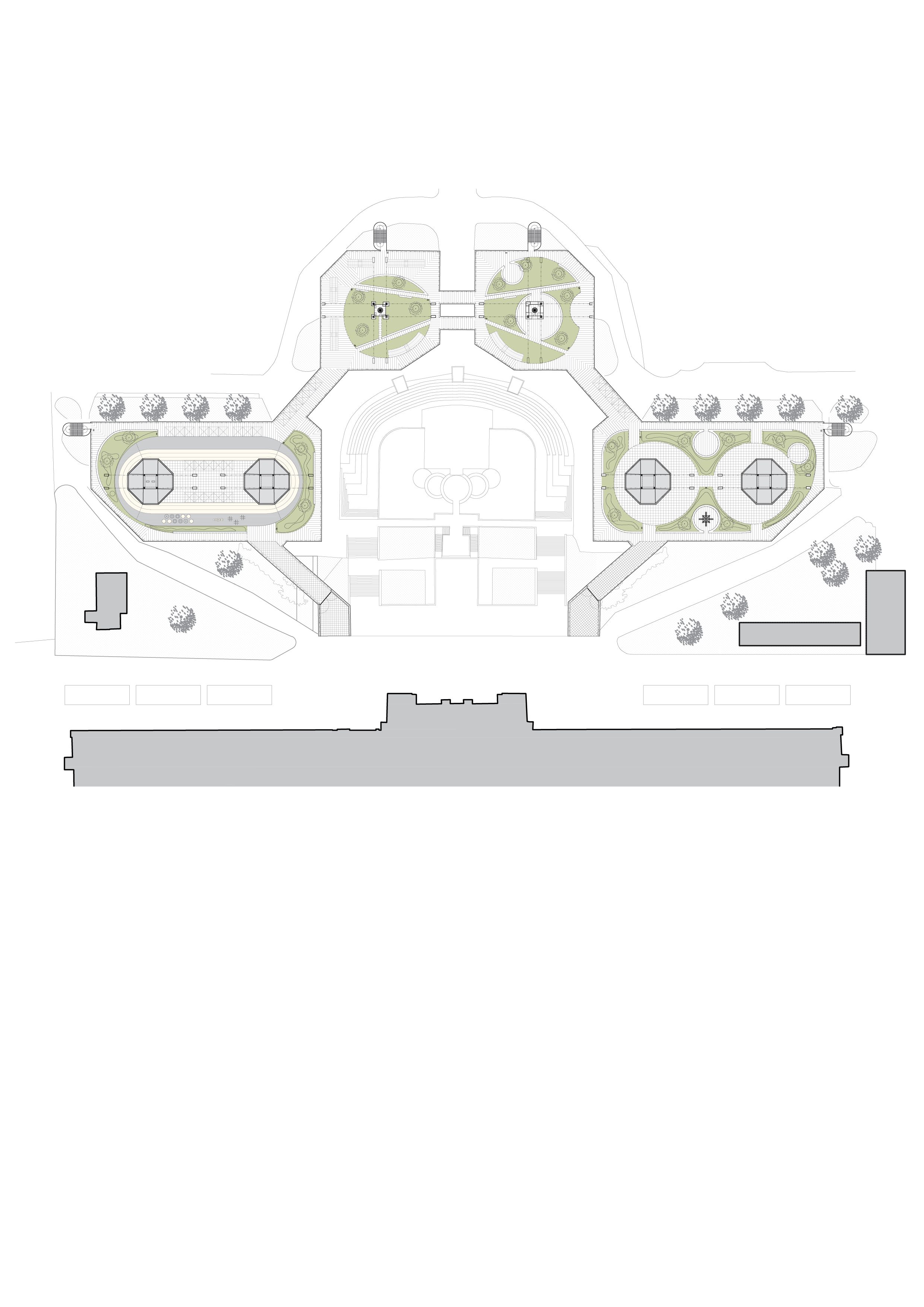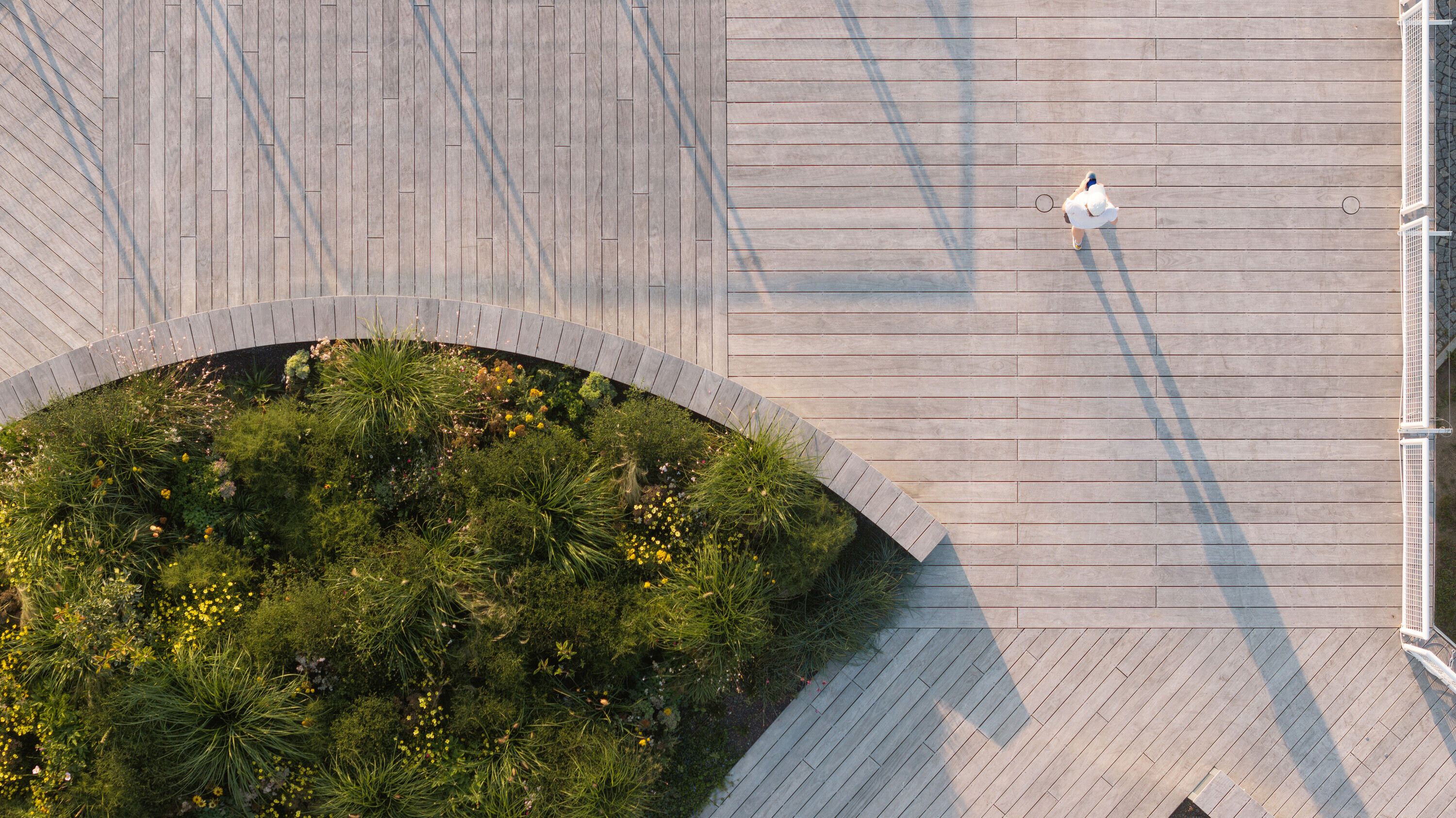 Jedným z kľúčových prvkov revitalizácie je úprava strechy, ktorá nadobudla úplne nový charakter. Pôvodne nevyužité a zanedbané betónové plochy sa zmenili na aktívne zelené strechy prístupné verejnosti. Koncepcia zelených striech reaguje na aktuálnu potrebu udržateľných mestských zásahov – znižuje efekt tepelného ostrova a zlepšuje odtokovú bilanciu zrážkových vôd. Zároveň vytvára priestor s rôznorodou funkciou, umožňujúcou celoročné využitie. Okrem oddychu v zeleni sa tu plánuje aj jednoduché občerstvenie, športové a spoločenské aktivity. Na streche sa dnes nachádza bufet, bežecká dráha a herné prvky.