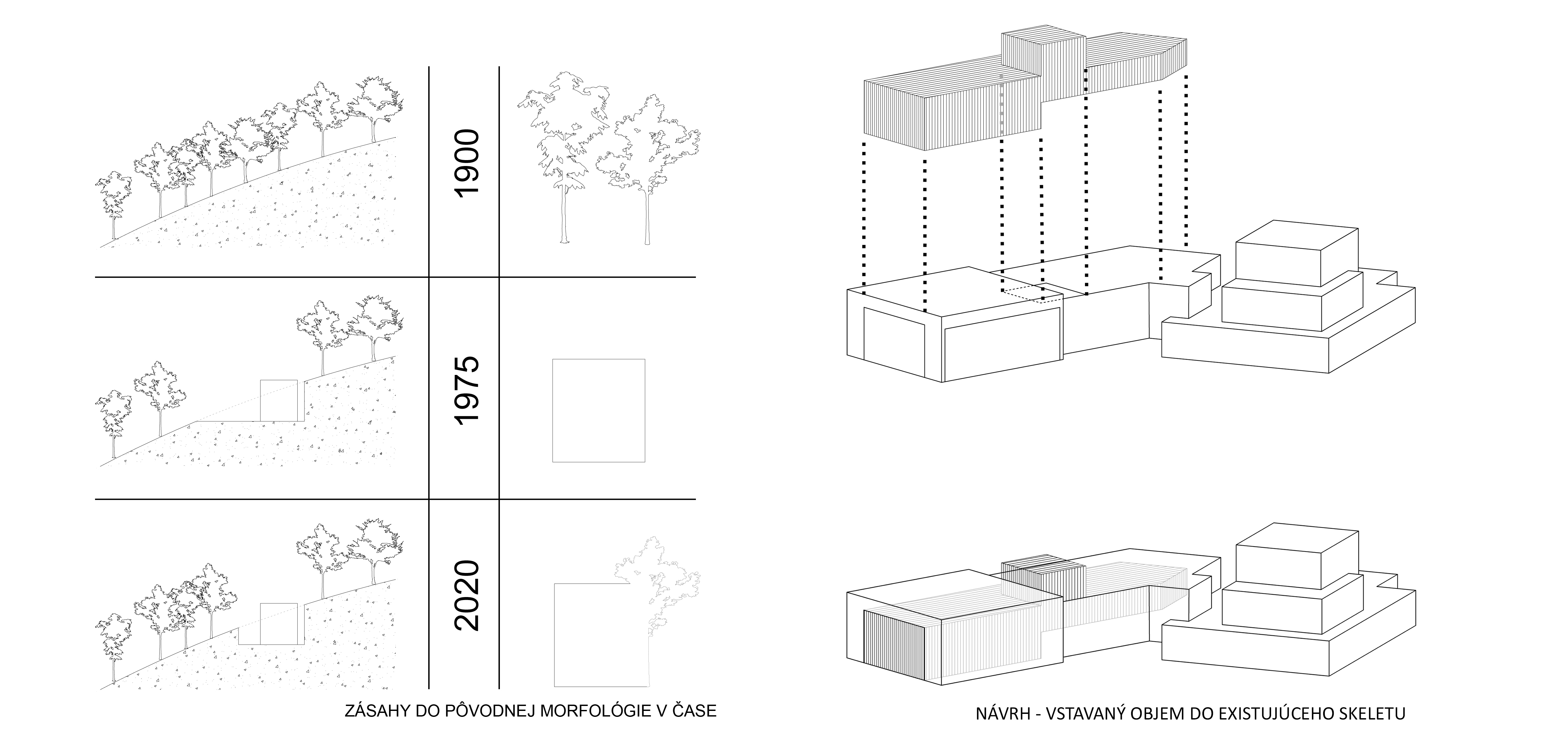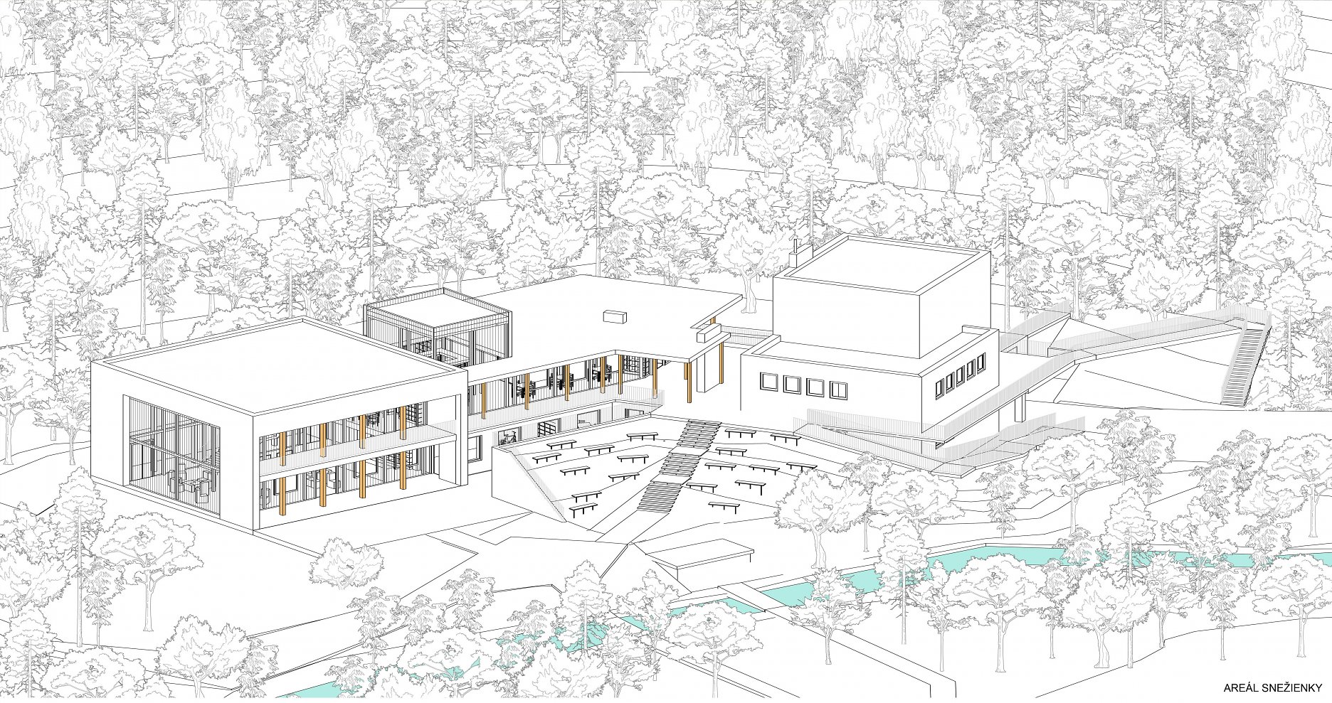 Od počiatku navrhovania bolo zrejmé, že kľúčovým pre zachovanie pôvodného objektu bude zhodnotenie možností jeho prípadného znovuuvedenia „do života“. Stav skeletu a výplňových múrov však nemožno považovať za vyhovujúci, ak by došlo len k bežným sanačným úpravám. Jeho komplexná sanácia by si však vyžiadala nadmernú investíciu a špeciálnu technológiu, čo z hľadiska racionálnej realizovateľnosti nepredstavuje ideálne riešenie. Práve preto navrhované riešenie predstavuje zapojenie torza reštaurácie do prevádzky len v obmedzenom rozsahu – stabilizáciou jestvujúcich prvkov je pôvodný skelet doplnený o samonosnú vstavanú konštrukciu, ktorá ho staticky NADMERNE nezaťaží a svojou jednoduchou formou mu povolí naďalej tvoriť „tvár“ Snežienky.
