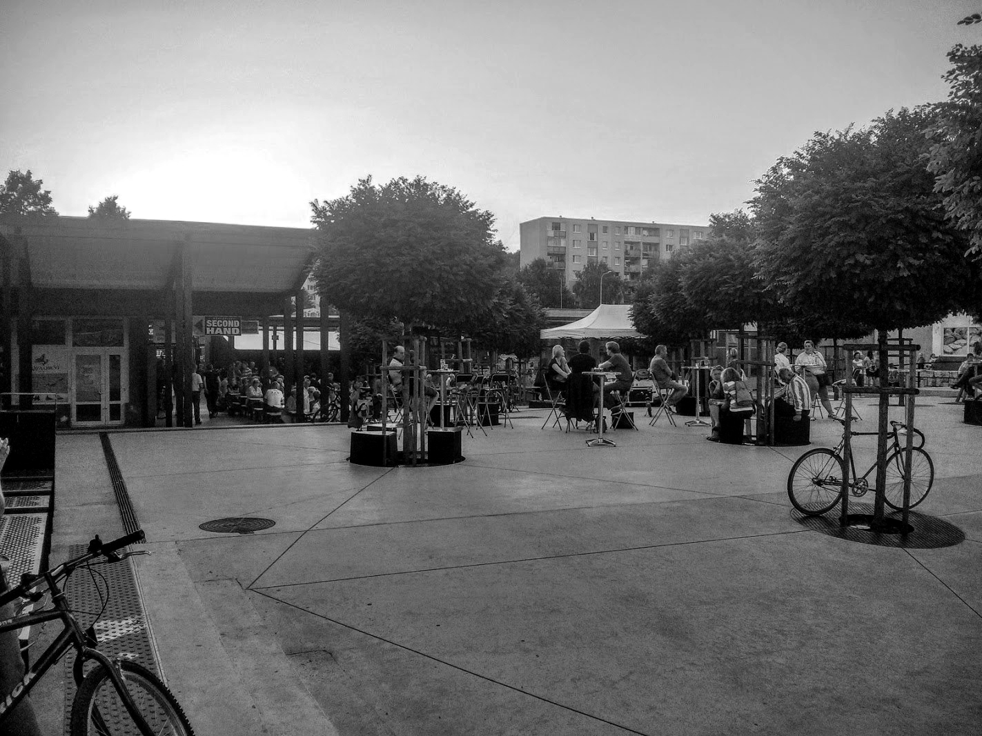 Pôvodné centrálne komponované námestie, ktoré pozostávalo zo systému schodov, rámp a chodníkov nahradil matematický raster zalomených betónových plôch, ktoré vyrovnávajú pôvodné výškové rozdiely. Plocha námestia sa stala zjednocujúcim prvkom v spleti nesúrodých budov, ktoré ho vymedzujú. Na prvý pohľad jednoliaty priestor zaujme množstvom funkčných detailov. Takisto ako v prípade Kulturparku v Košiciach sa autori snažili vytvoriť živý mestský priestor. Skejteri, korčuliari aj bajkeri tu majú vlastné spoty a stali sa akceptovanou súčasťou námestia.