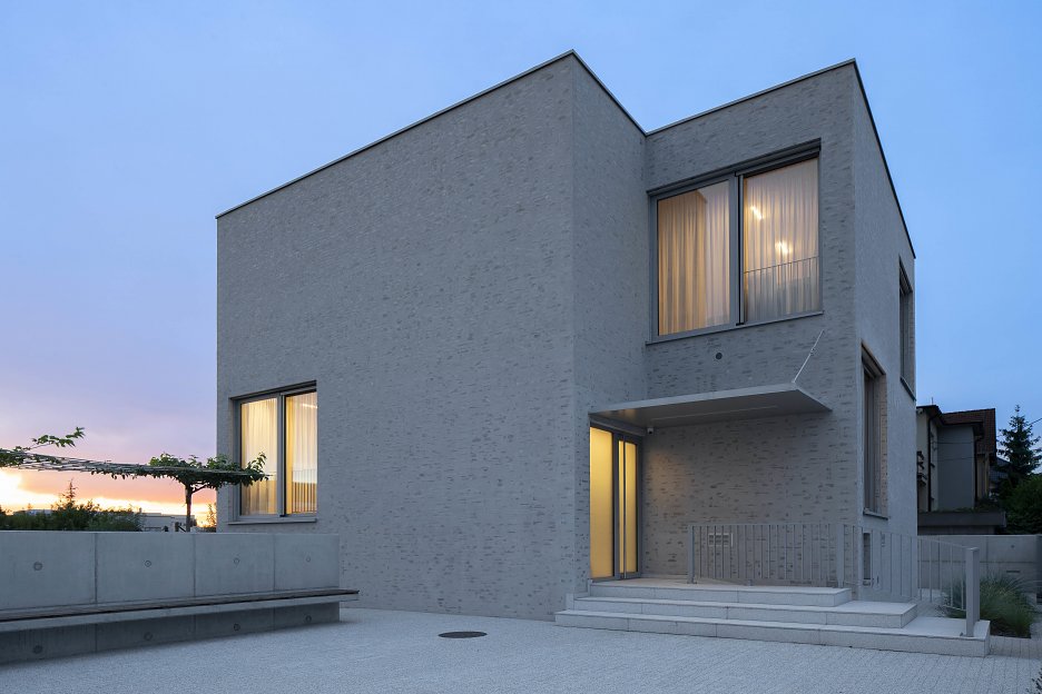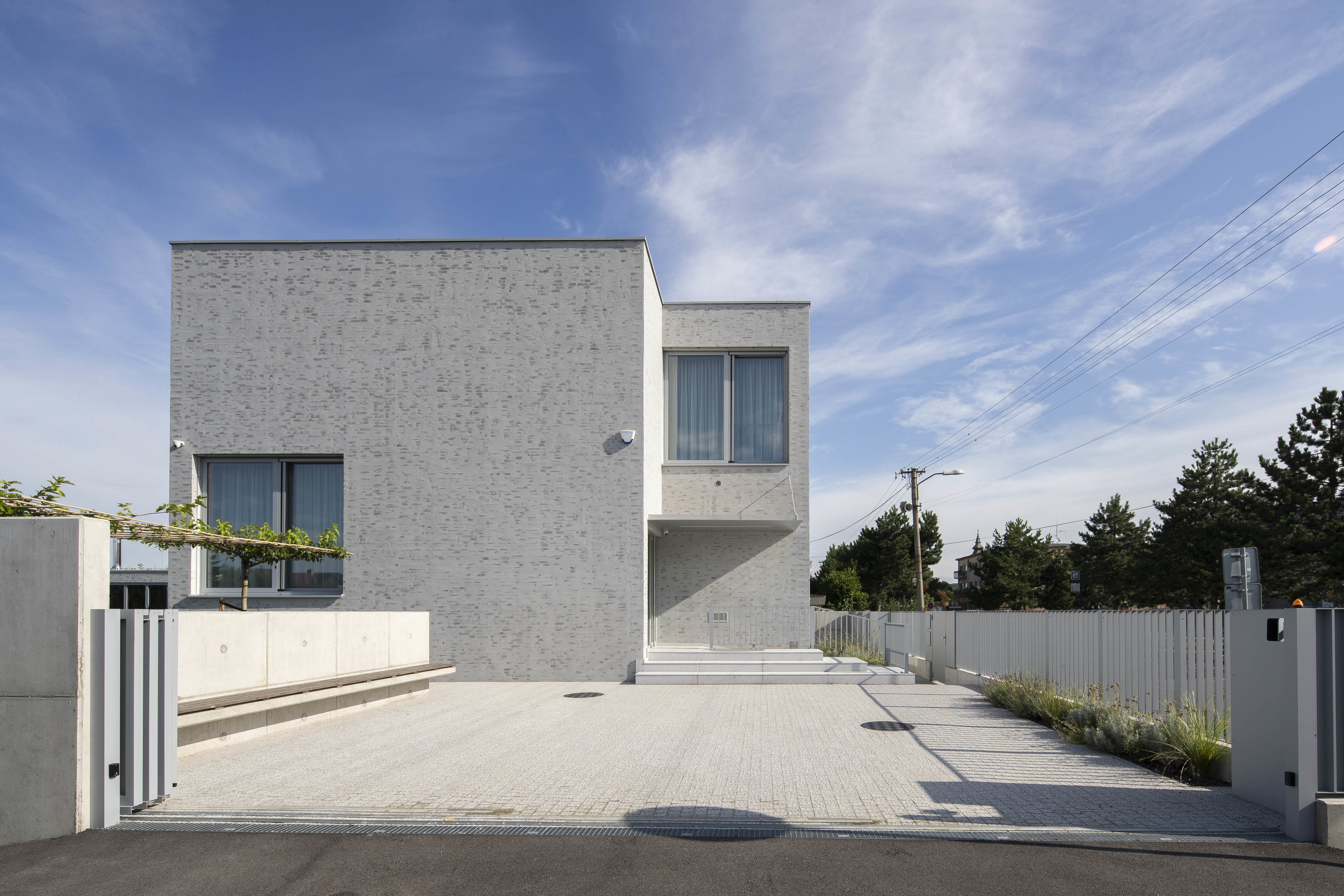 Rovnako ako vo viacerých predchádzajúcich rezidenčných projektoch ateliéru tvorí základ stavby monolitická železobetónová konštrukcia, ktorá je zároveň primárnou pohľadovou vrstvou v interiéri. Priznané surové povrchy s odtlačkami precízneho kladačského plánu debnenia dopĺňajú detaily ako bezlištový styk stien, parkiet a terazza, alebo precízne zámočnícke prvky. Trvácne jednoliate povrchy, bez akejkoľvek prebytočnej “kapotáže”, dopĺňajú vložené nábytkové bloky podľa autorského návrhu. Ich jemný odtieň, spolu s prírodnou kresbou dreva na podlahách, oživuje inak monochromatickú farebnú schému. Medzi zaujímavé detaily patria vnútorné zábradlia pred posuvnými plochami zasklenia, ktoré umožnili zachovať elementárnu podobu fasád domu. Zo strany exteriéru siahli architekti po rovnako overenom “tehličkovom” obklade, ktorý však tentokrát netradične pokryli vrstvou omietky. Následné prebrúsenie povrchov odhalilo charakteristickú textúru fasád domu. K vyniknutiu elementárnej architektonickej kompozície prispieva subtílne oplechovanie a odtieň rámov zasklenia, splývajúci so všadeprítomnou sivou farebnosťou.