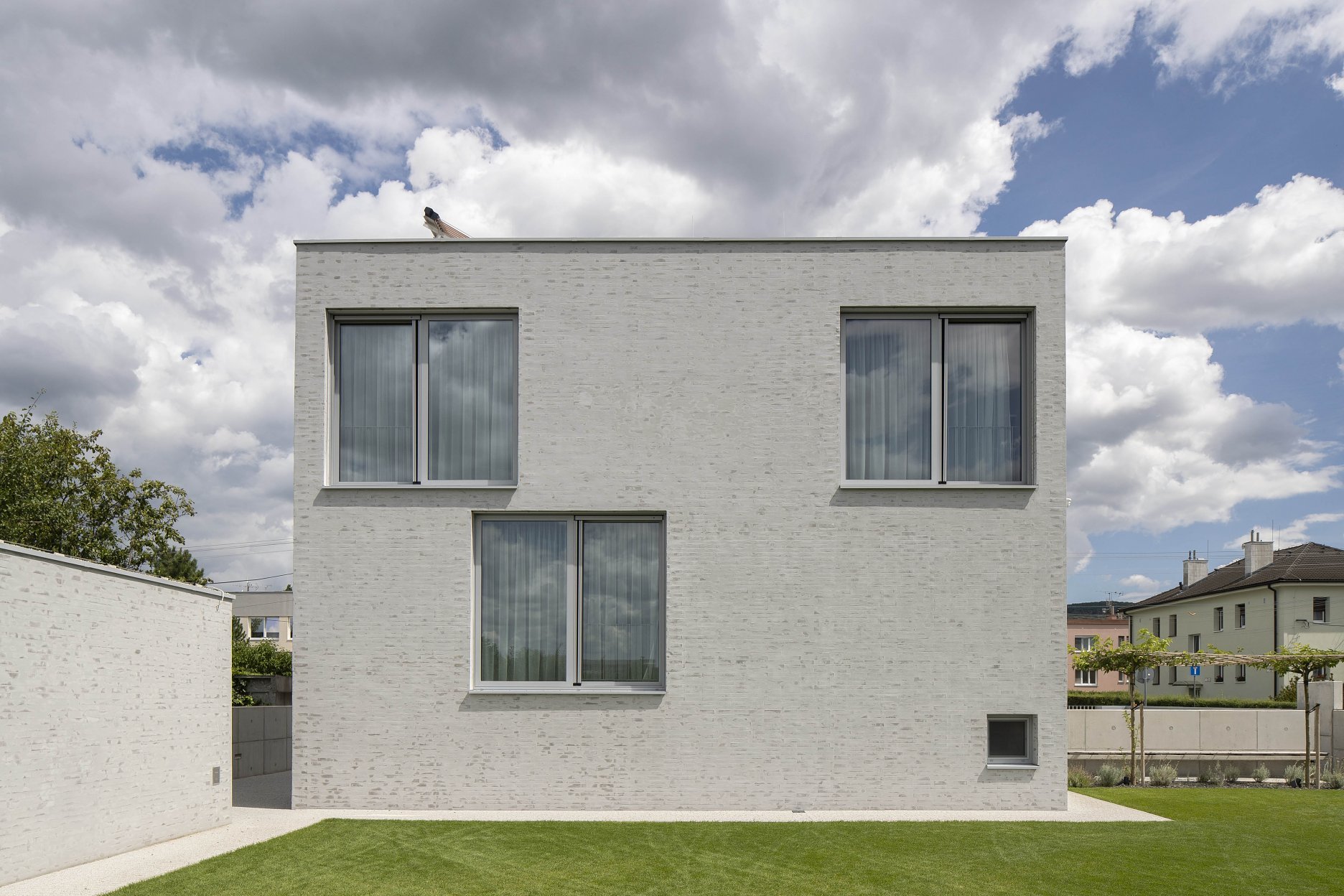 Dom v uličnej zástavbe Záhorskej Bystrice vznikol na pôdorysnej stope klasickej “kocky” zo 70. rokov. Architektonické riešenie ateliéru cakov + partners zachováva základné proporcie pôvodného objektu. Nový lokalitný program však na rozdiel od dobového riešenia zastrešuje dve nezávislé bytové jednotky. Novému využitiu priestoru v centrálnej zóne Záhorskej Bystrice zodpovedá dvojica vjazdov na pozemok a doplnenie hlavného objektu o menší pavilón. Ten slúži ako garáž, spoločenský priestor s letnou kuchynkou, sklad, alebo vizuálna bariéra zabezpečujúca súkromie v priestore záhrady.