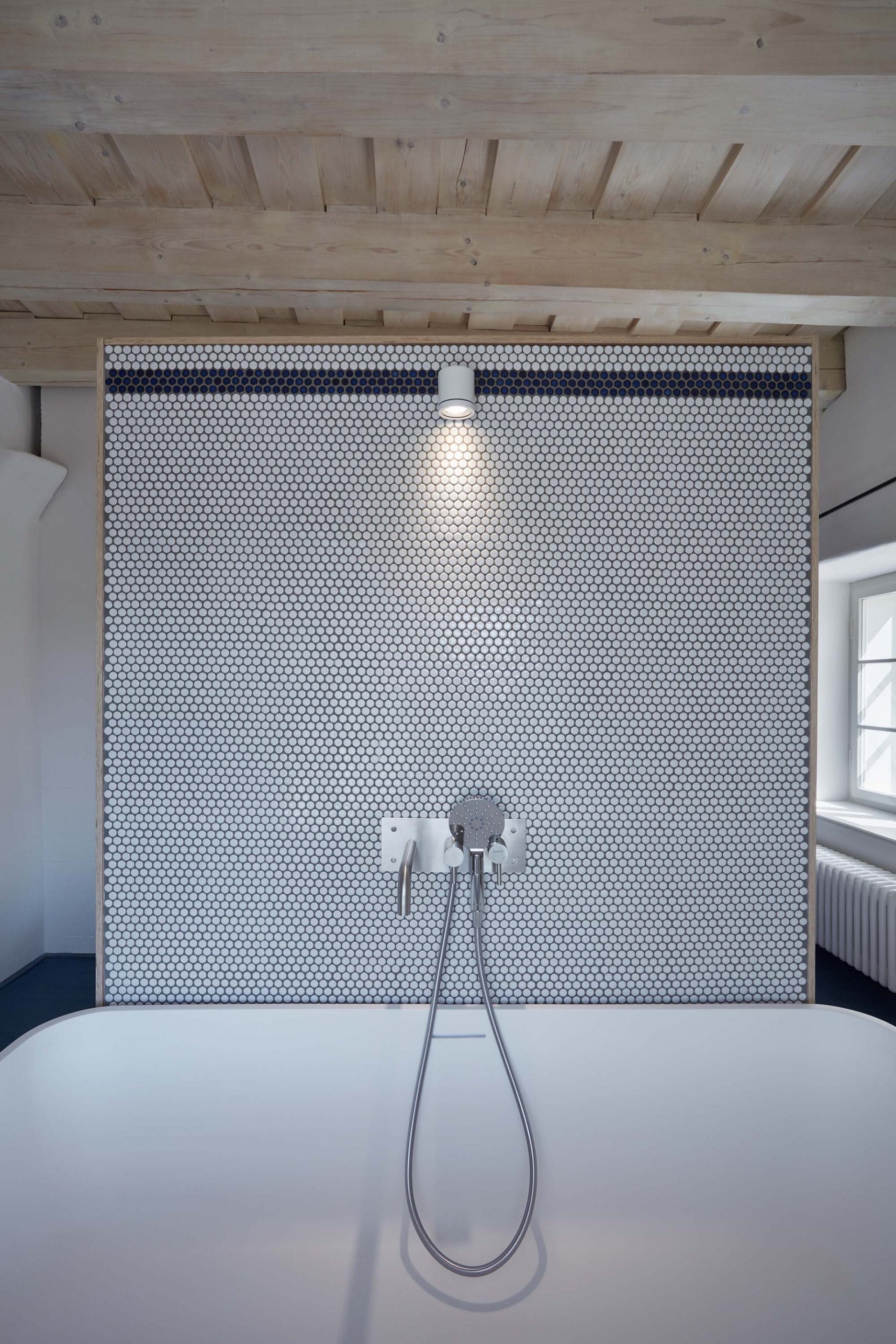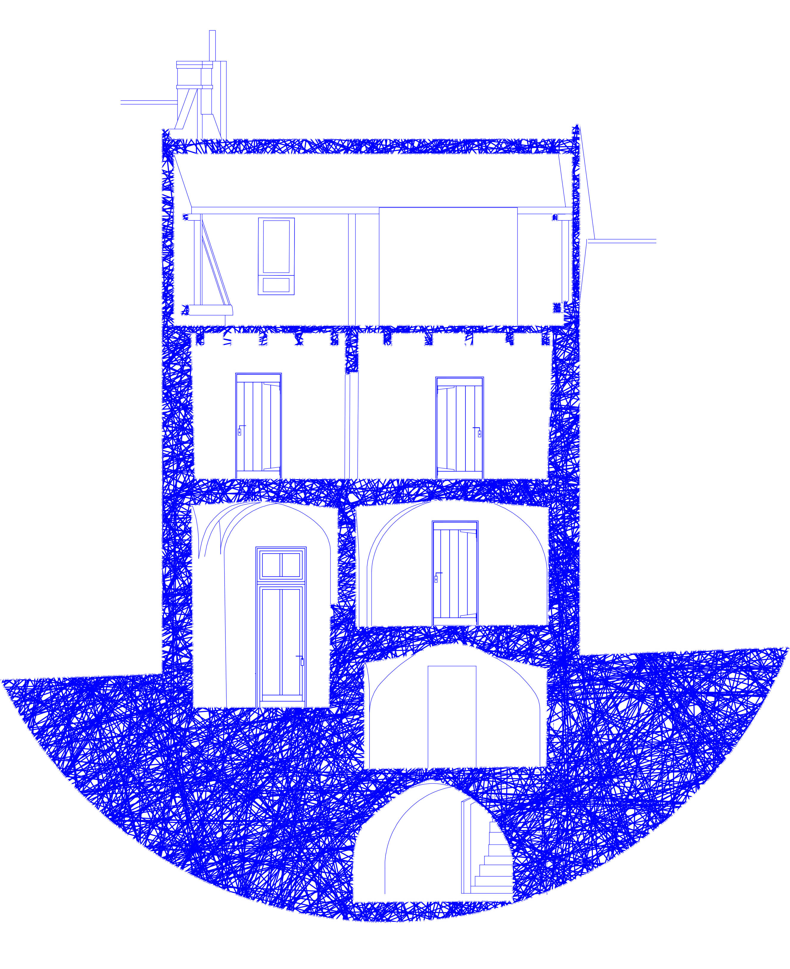 Štajnhaus nebyl projekt, Štajnhaus byl proces. Dům s renesančním jádrem stojí přímo na úpatí zámeckého kopce v bývalé židovské čtvrti Mikulova. Za svoji existenci utržil obrovské množství šrámů, prodělal desítky přestaveb a operací. Ty ho změnily k nepoznání, ale přesto si dokázal udržet středověkou pitoresknost. Přišli jsme ke slepenci. S postupným odkrýváním jednotlivých vrstev, prostorů a překvapivých souvislostí projekt procházel neustálým procesem revizí a úprav, v podstatě až do konce realizace. Na začátku jsme netušili, kam na konci dojdeme.