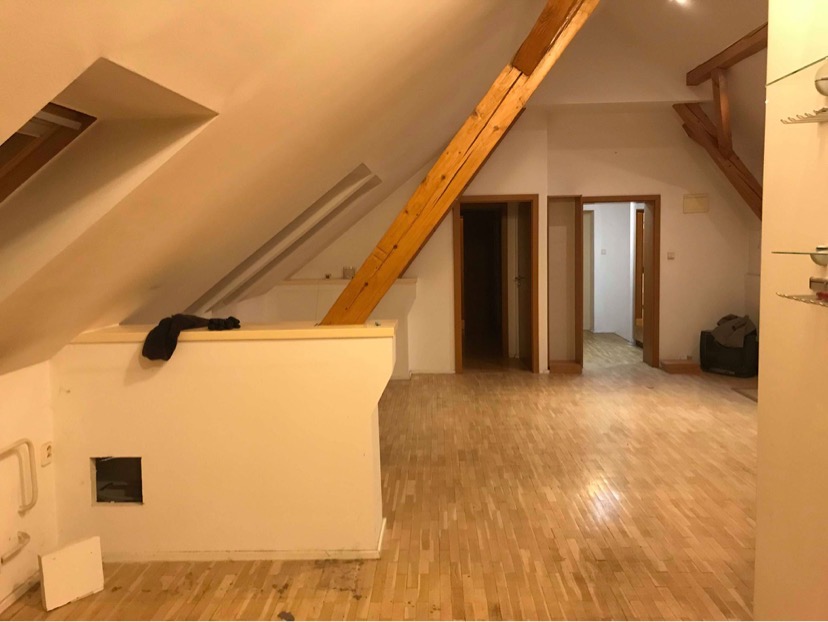 Premena dennej časti obytného podkrovia na Kollárovej ulici v tesnej blízkosti futbalového štadióna. Drevený krov očistený od nánosov sadrokartónu. Snaha nájsť odpoveď na otázku súčasného bývania - lacno, svojpomocne/s kamarátmi, multifunkčne, vzdušne.