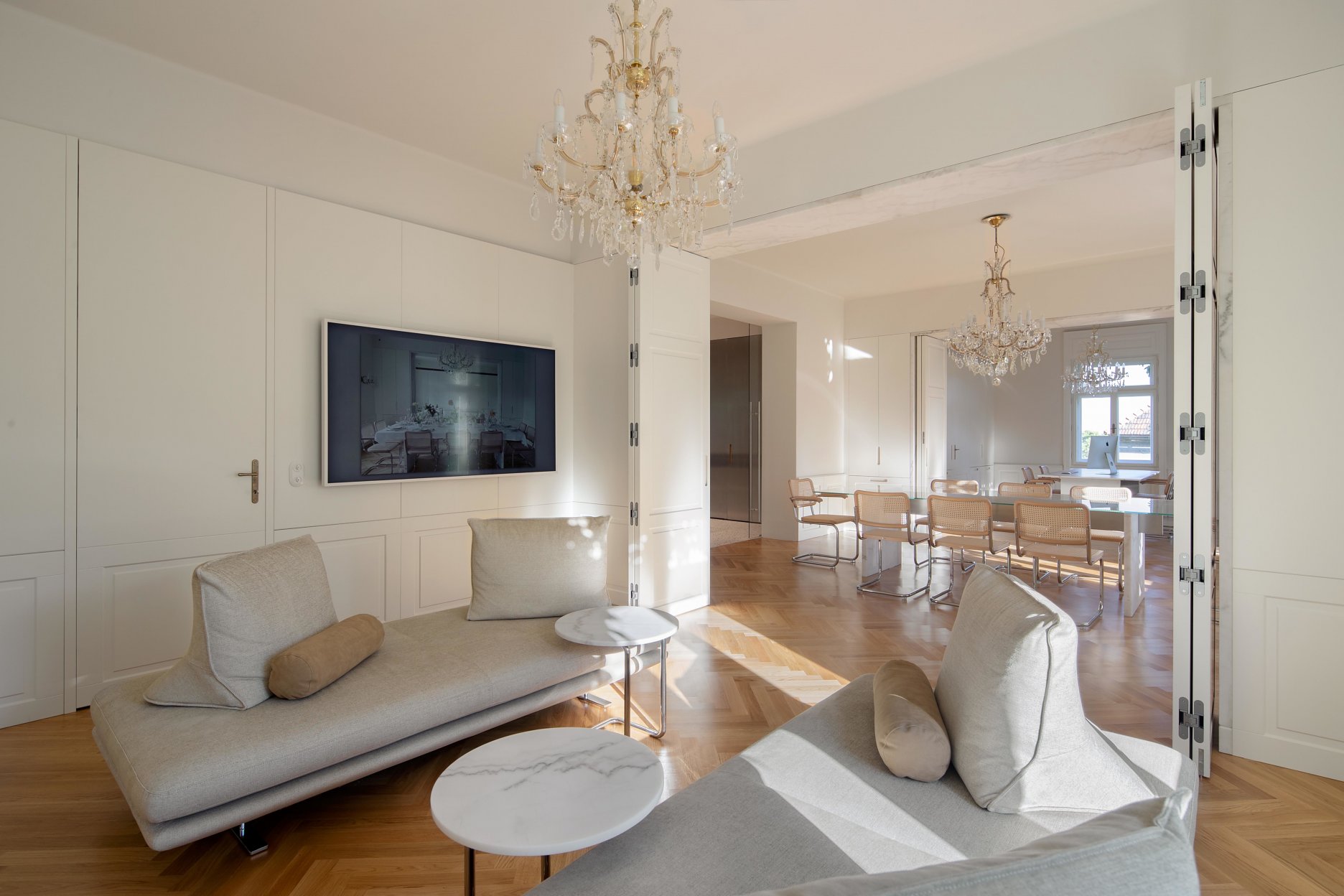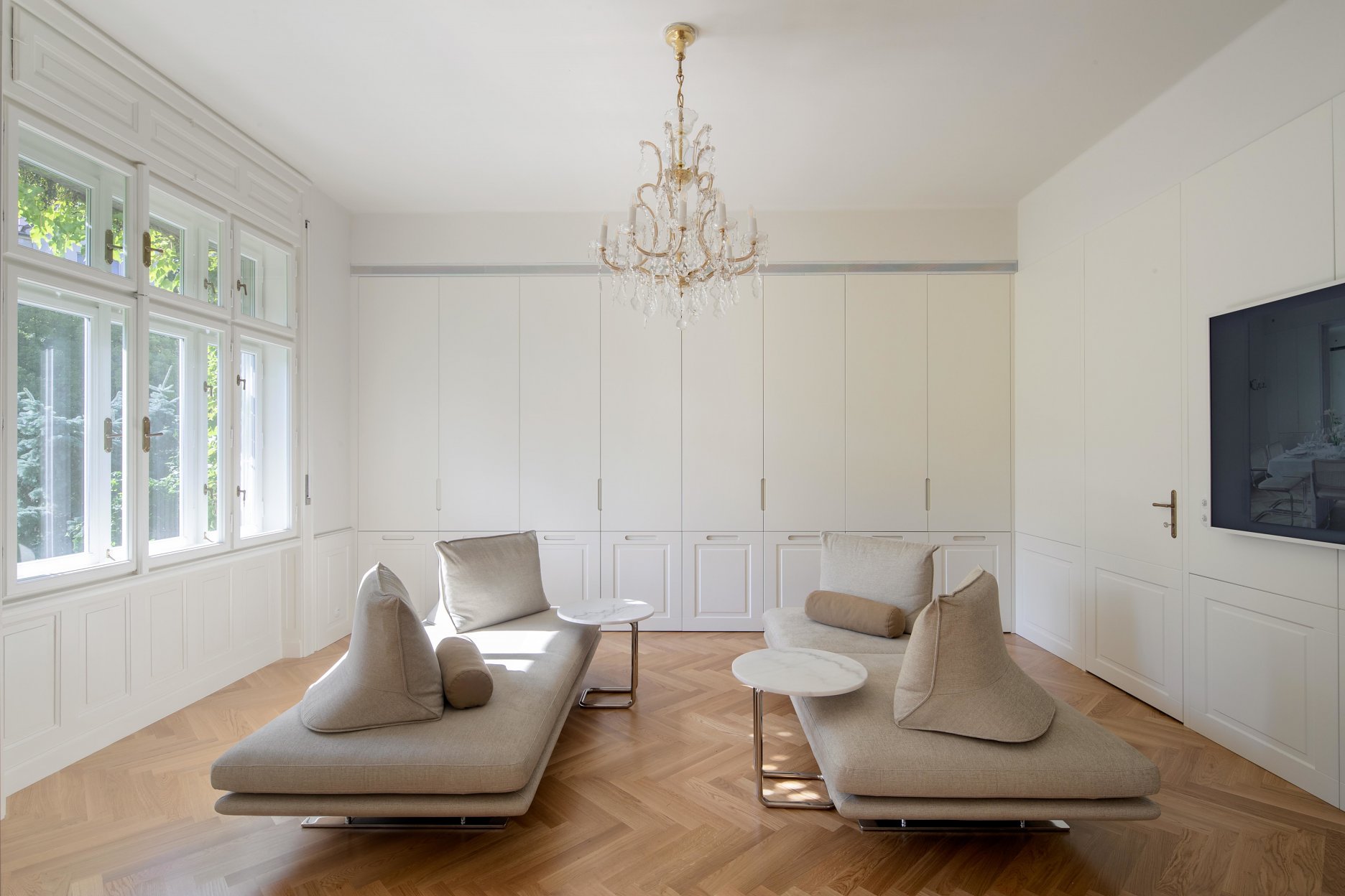Výsledkom je komplexný interiér, ktorý má pravdivý historický charakter, no zároveň ponúka kvality najmodernejších novostavieb. Inteligentná elektronika, osvetlenie, celoplošné podlahové vykurovanie, integrovaná vzduchotechnika, klimatizácia, inteligentný audio systém ako aj inteligentné zabezpečenie priestorov.