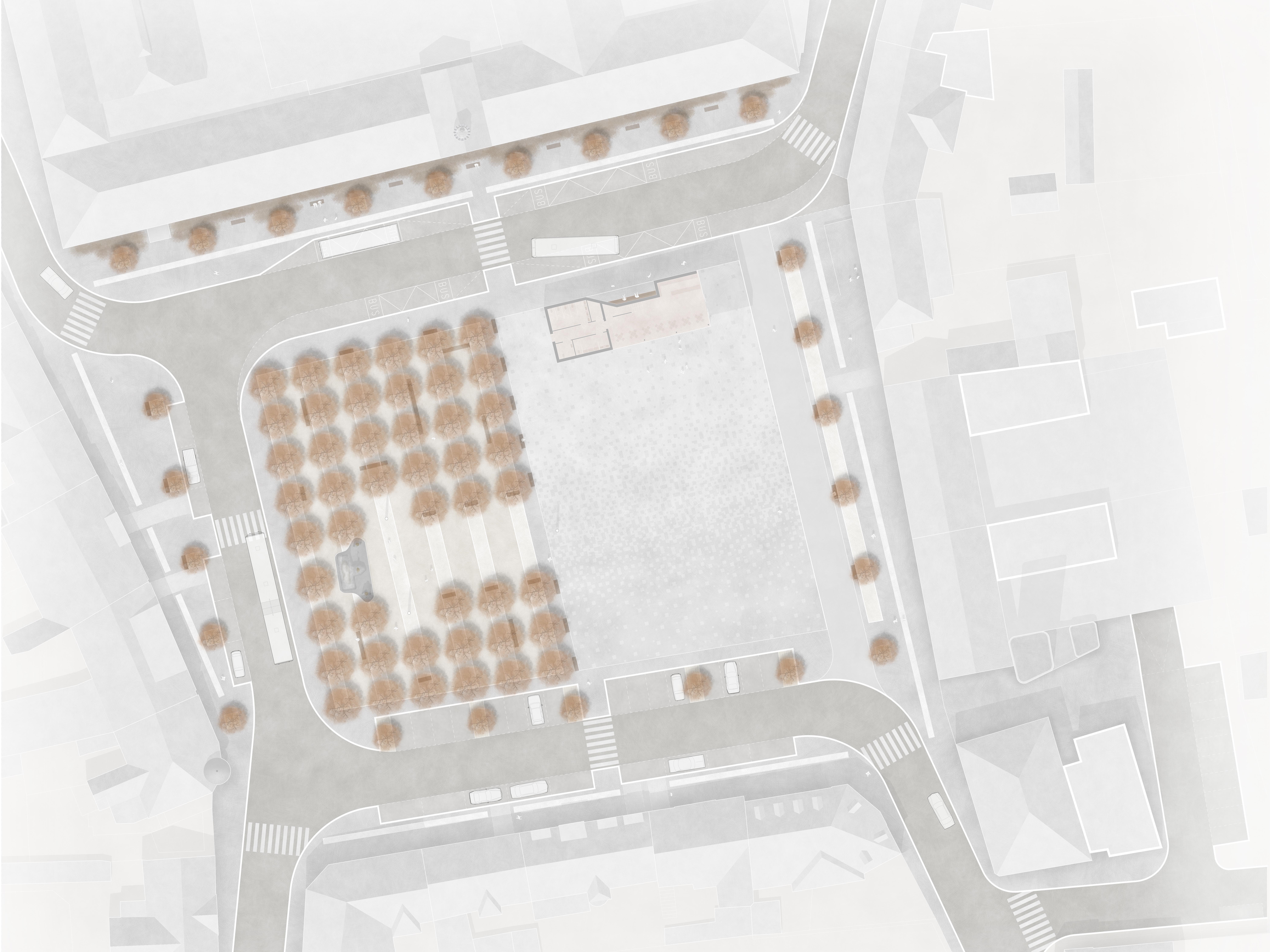 Zásadním cílem návrhu bylo vytvořit příjemné místo pro pobyt a jasně definovat prostor náměstí, rozšířit předprostor stávajícím domům na náměstí, navrhnout atraktivní místa ve stínu stromů a zejména umožnit tradiční kulturní a společenské aktivity na nově vydlážděném prostranství. Při návrhu jsme se ztotožnili se zásadami a principy uvedenými v Manuálu tvorby veřejných prostranství, dále navazujeme a souladně rozvíjíme podněty a doporučení vzešlé z analýzy a potenciálu území. Veřejný prostor náměstí je vnímán především jako zpevněná plocha, proto jeho význam podtrhujeme kvalitou a formou uspořádání kamenné dlažby.