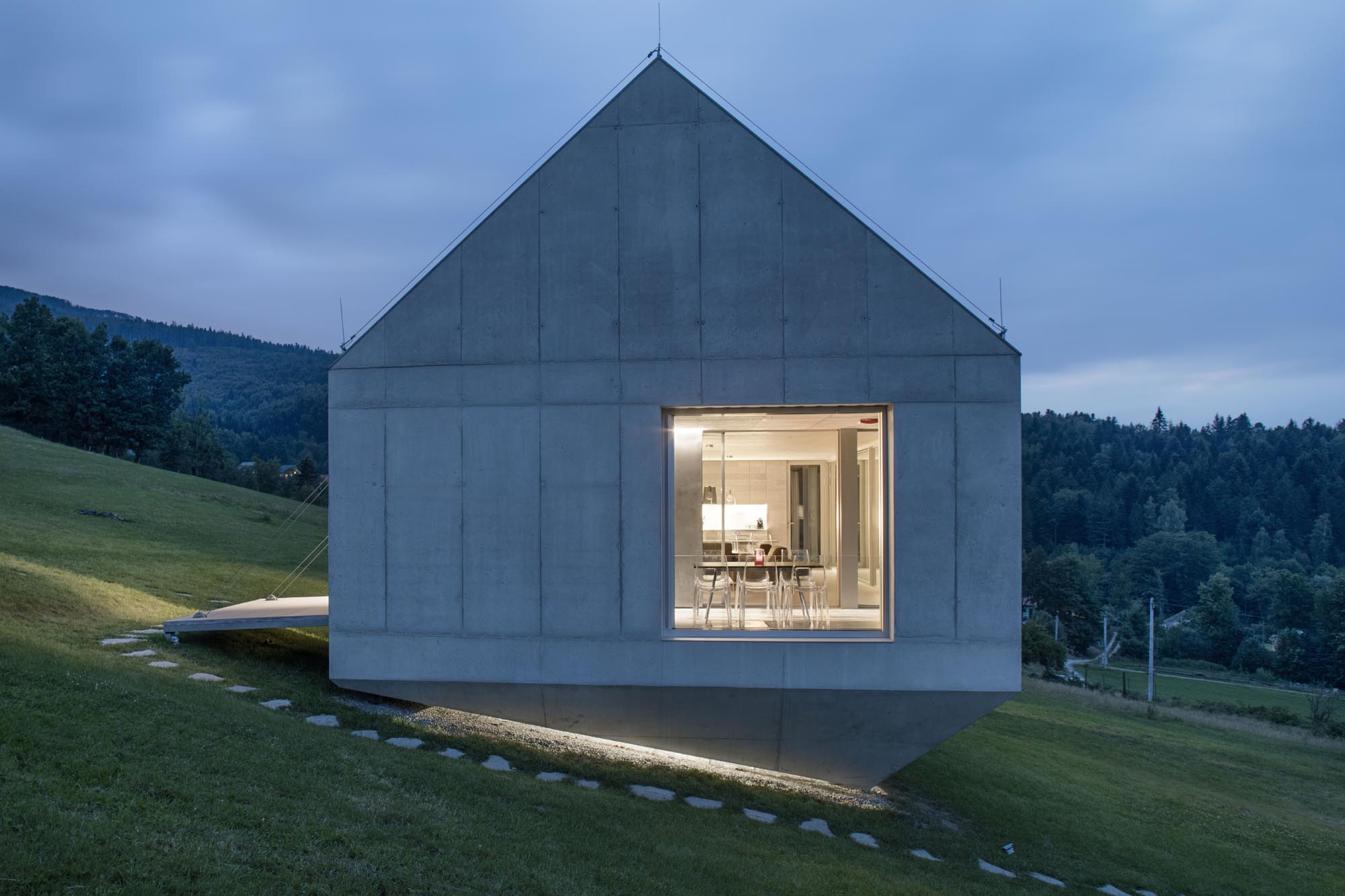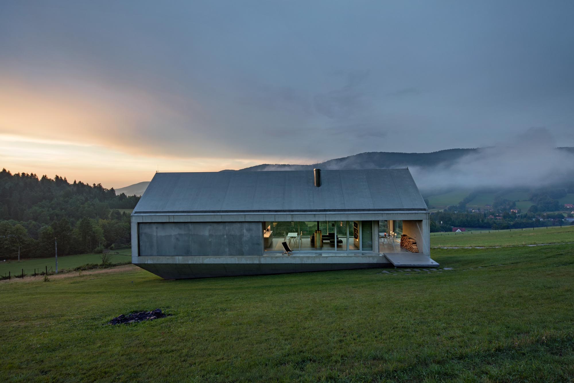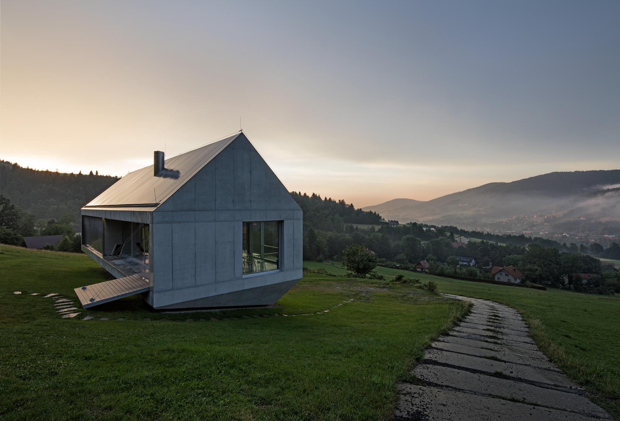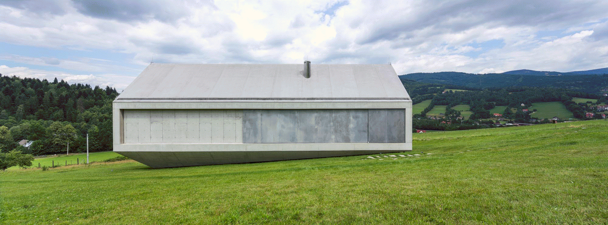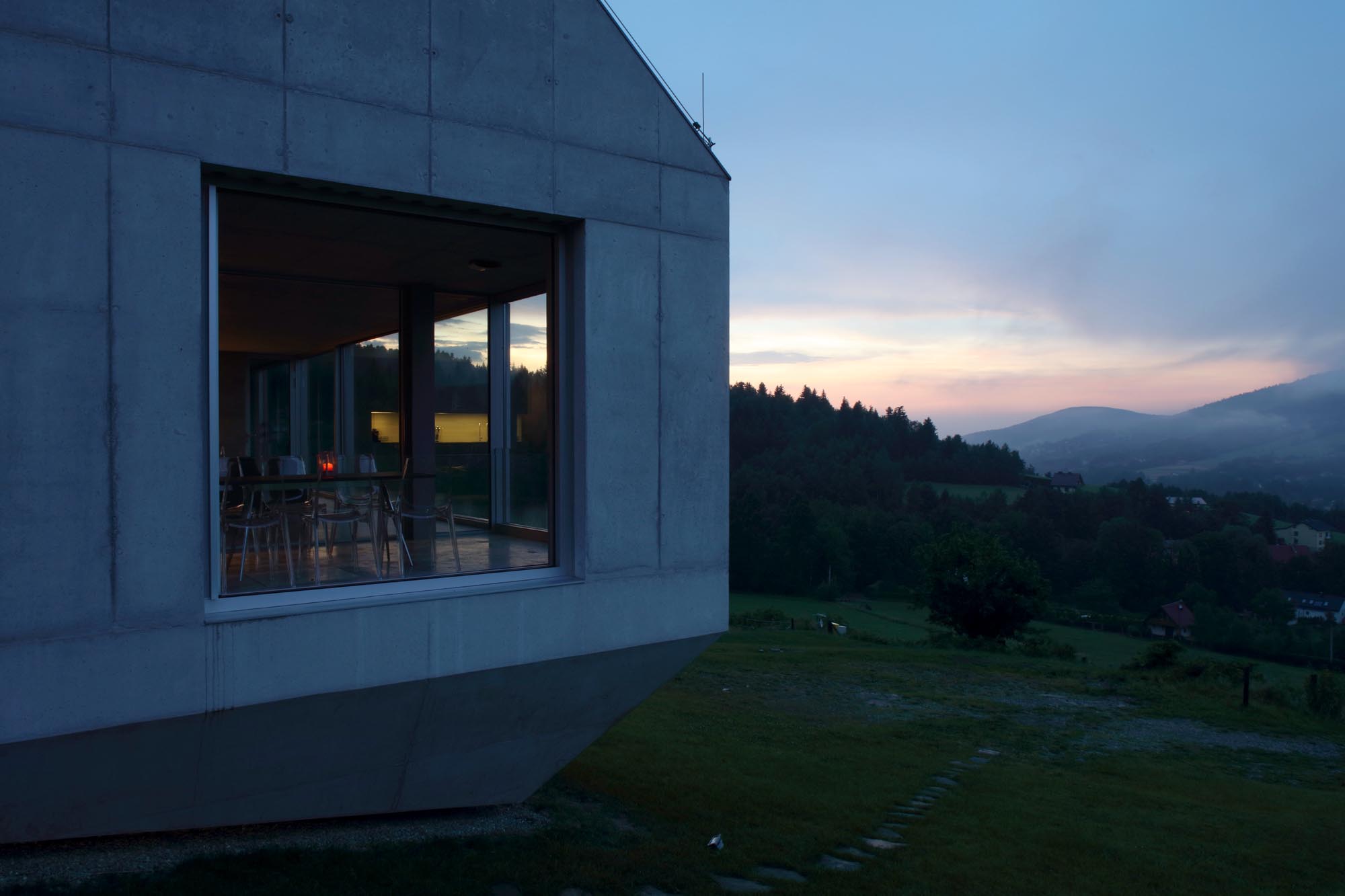 Architekt si pre vlastné bývanie vybral pozemok v rekreačnom stredisku Brenna v Sliezskzch Beskydoch. Nádherný pozemok, ktorý sa nachádza vo svahu pod lesom je sprístupnený úzkou panelovou cestou. Z tohto miesta sa otvára nerušený výhľad do celej doliny. Dom vytvára pevný rám, ideálne stanovisko pre pozorovateľa. Jednopodlažná obytná plocha je otvorená voči horskej krajine.