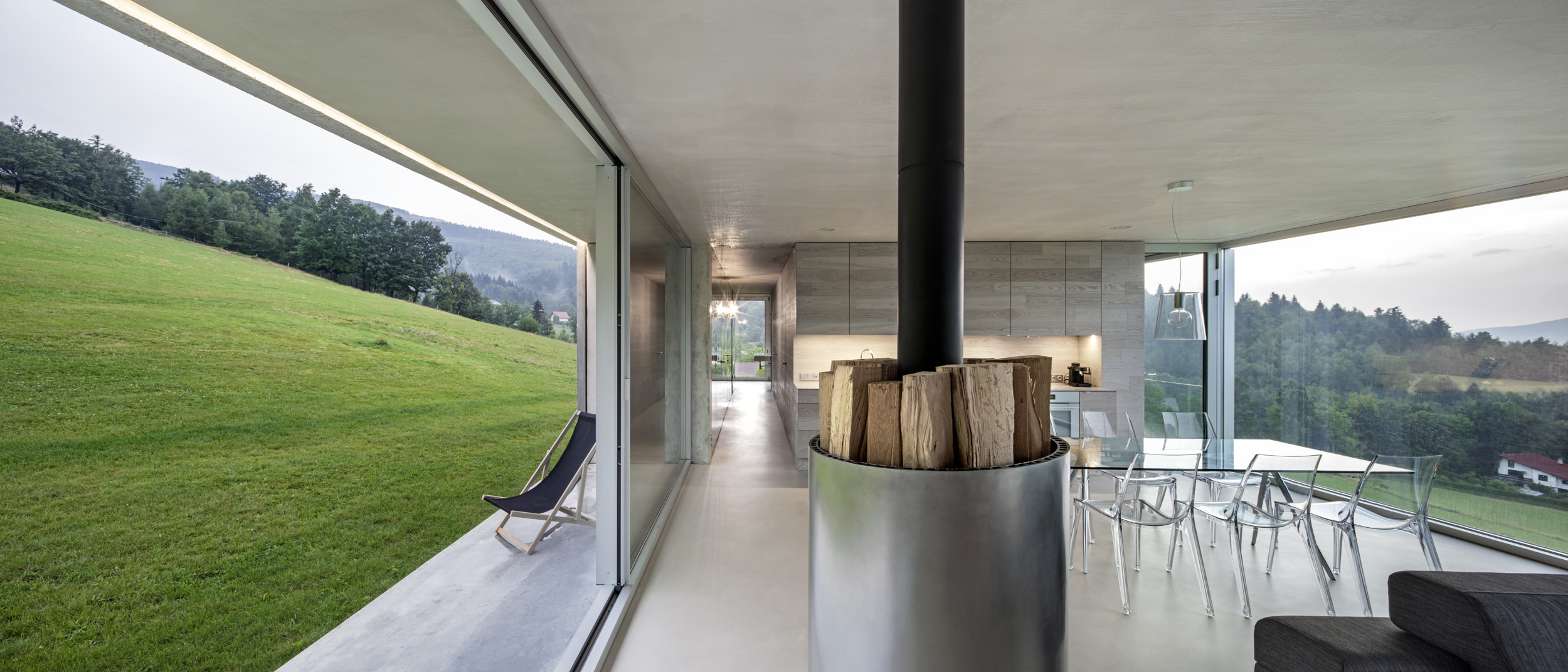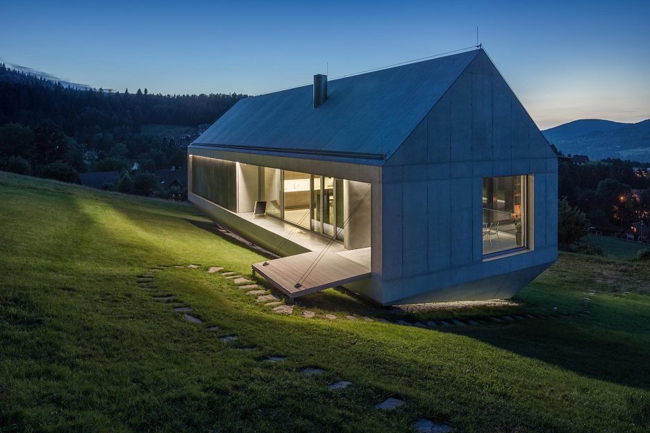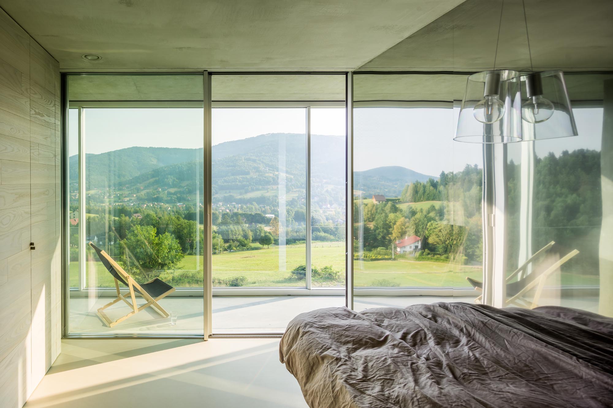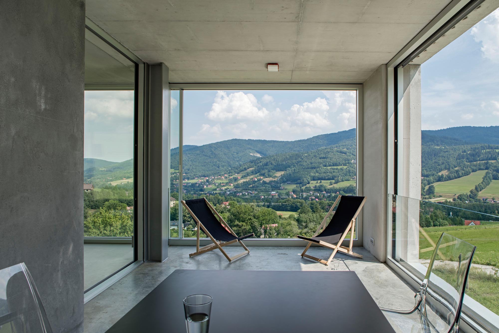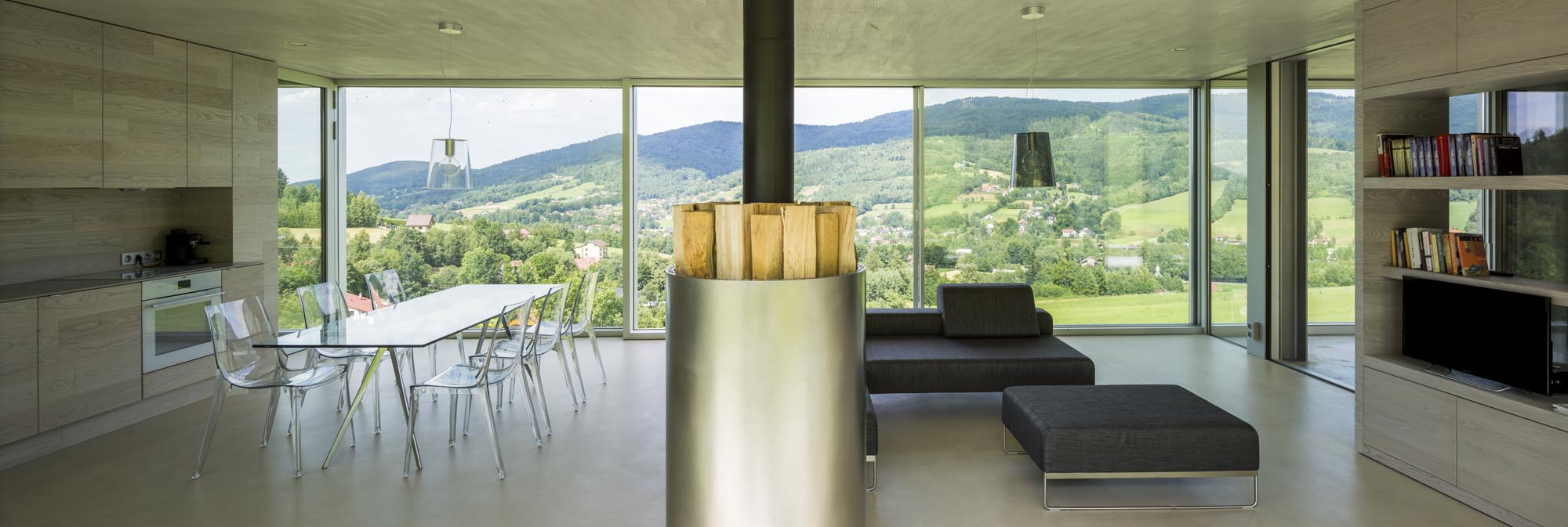 Architekt si pre vlastné bývanie vybral pozemok v rekreačnom stredisku Brenna v Sliezskzch Beskydoch. Nádherný pozemok, ktorý sa nachádza vo svahu pod lesom je sprístupnený úzkou panelovou cestou. Z tohto miesta sa otvára nerušený výhľad do celej doliny. Dom vytvára pevný rám, ideálne stanovisko pre pozorovateľa. Jednopodlažná obytná plocha je otvorená voči horskej krajine.