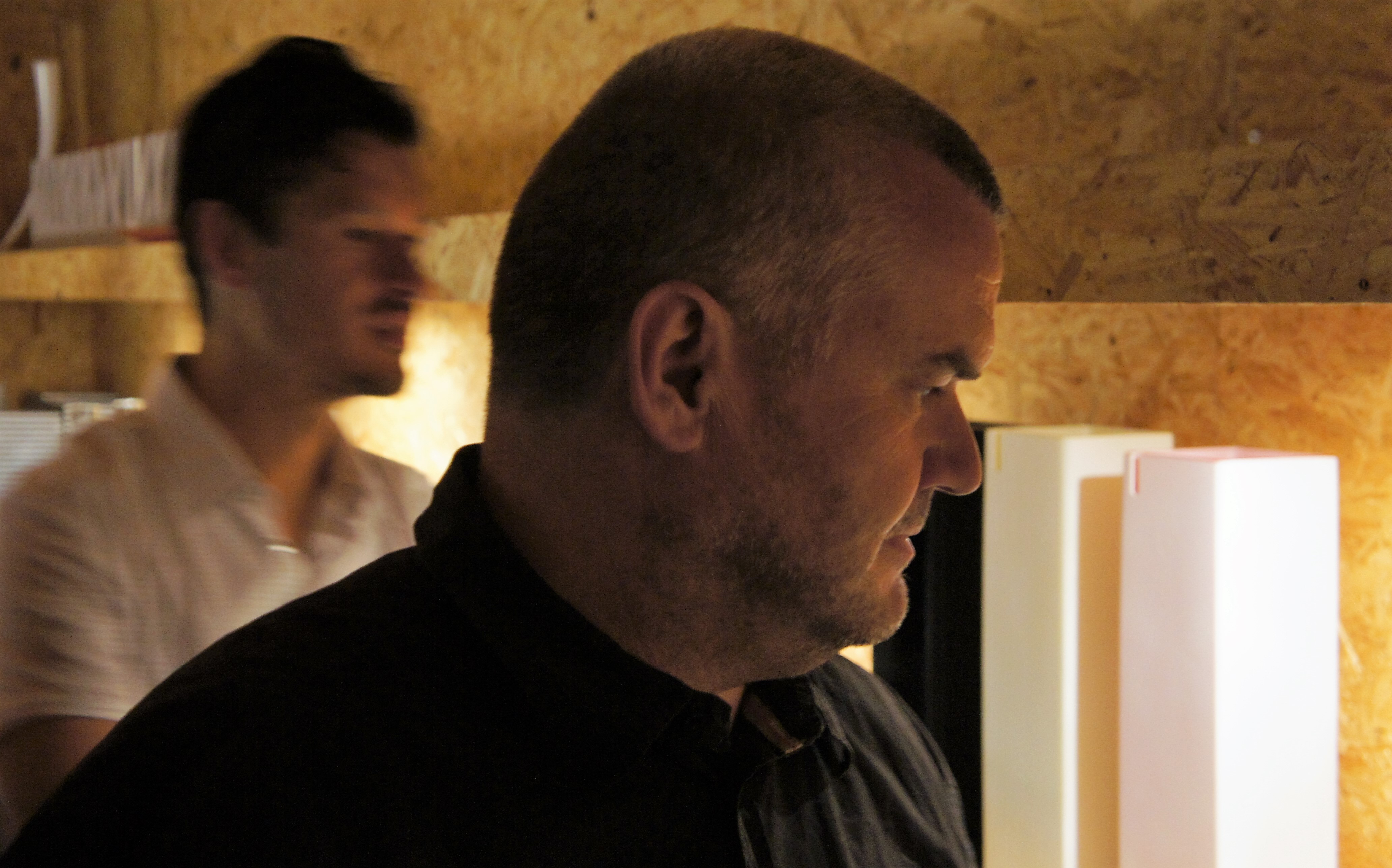 ŠM: Musíš sa aj niečím živiť. Máš širší záber, okrem architektúry robíš design, voľnú tvorbu. Aký je režim práce na dvoch miestach pôsobenia? V Bratislave a na vidieku "pánubohu za chrbtom" niekde na Strednom Slovensku. Práca typického architekta prebieha predovšetkým v štandardizovanom prostredí kancelárie. Ráno sa zobudím, na určitú hodinu prídem do kancelárie, čakajú ma ľudia, robím s nimi, večer odídem, zoberiem deti zo škôlky domov. Ale ty si povedal, že dosť veľkú časť roka si niekde, kde ťa ani ten investor nenájde a pravdepodobne to má svoje špecifiká.