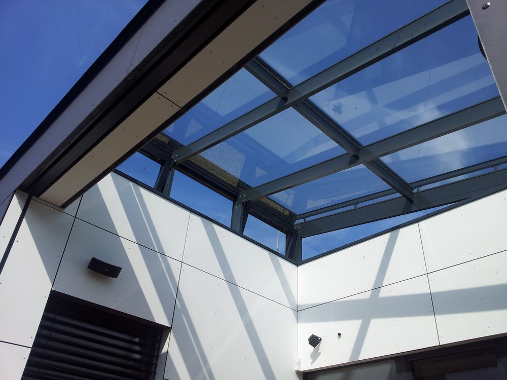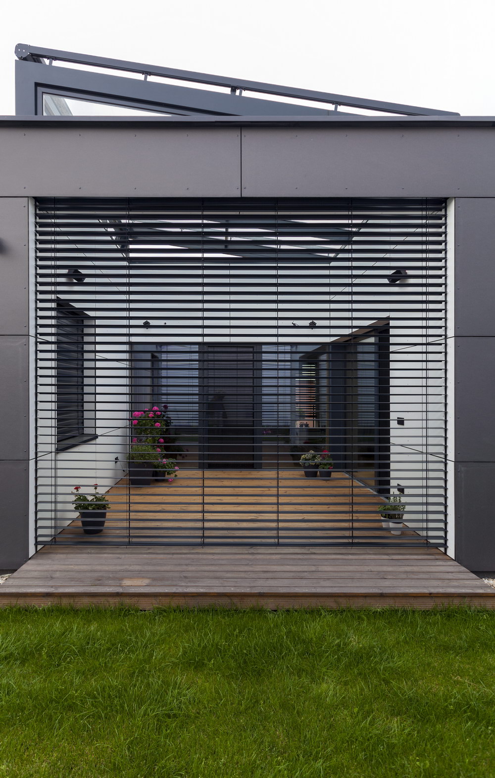 Átrium je možné uzavrieť exteriérovými žalúziam.