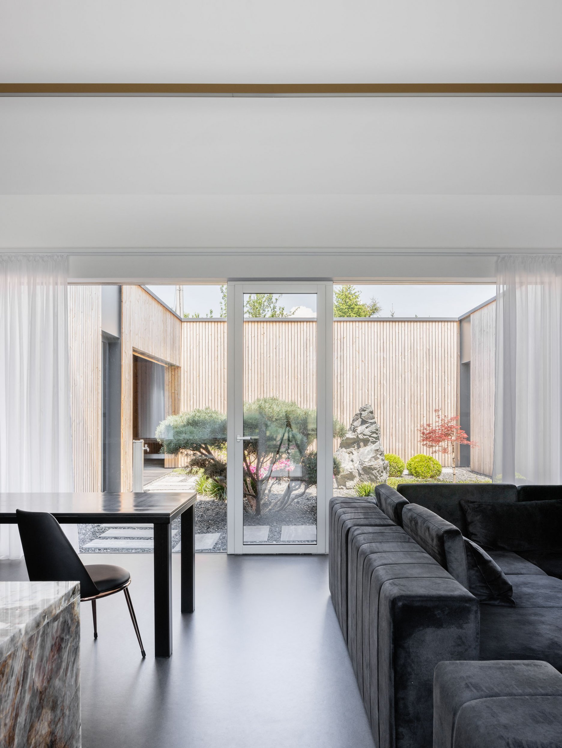 Obyvateľmi novostavby átriového domu je mladá rodina s dieťaťom, ktorá je s miestom a spôsobom života v obci silne spätá. Paradoxne ich radikálne iný koncept bývania nie je revoltou voči lokálnej tradícii. Počas spolupráce sa architekt nevyhnutne dostane do užšieho kontaktu aj s ostatnými rodinnými príslušníkmi klienta a tak som sa aj v tomto prípade sa stal súčasťou radostnej dynamickej koexistencie 3 generácií vrátane oboch rodín manželského páru. V kontexte spolunažívania generácií je zjavné, že nový a iný koncept bývania je prirodzenou potrebou “mladých” žiť po svojom (podporená zažitou skúsenosťou z “veľkého” sveta) tak, ako sa to deje v cyklicky sa opakujúcej generačnej výmene počas celej histórie obce a spoločenstva v nej.