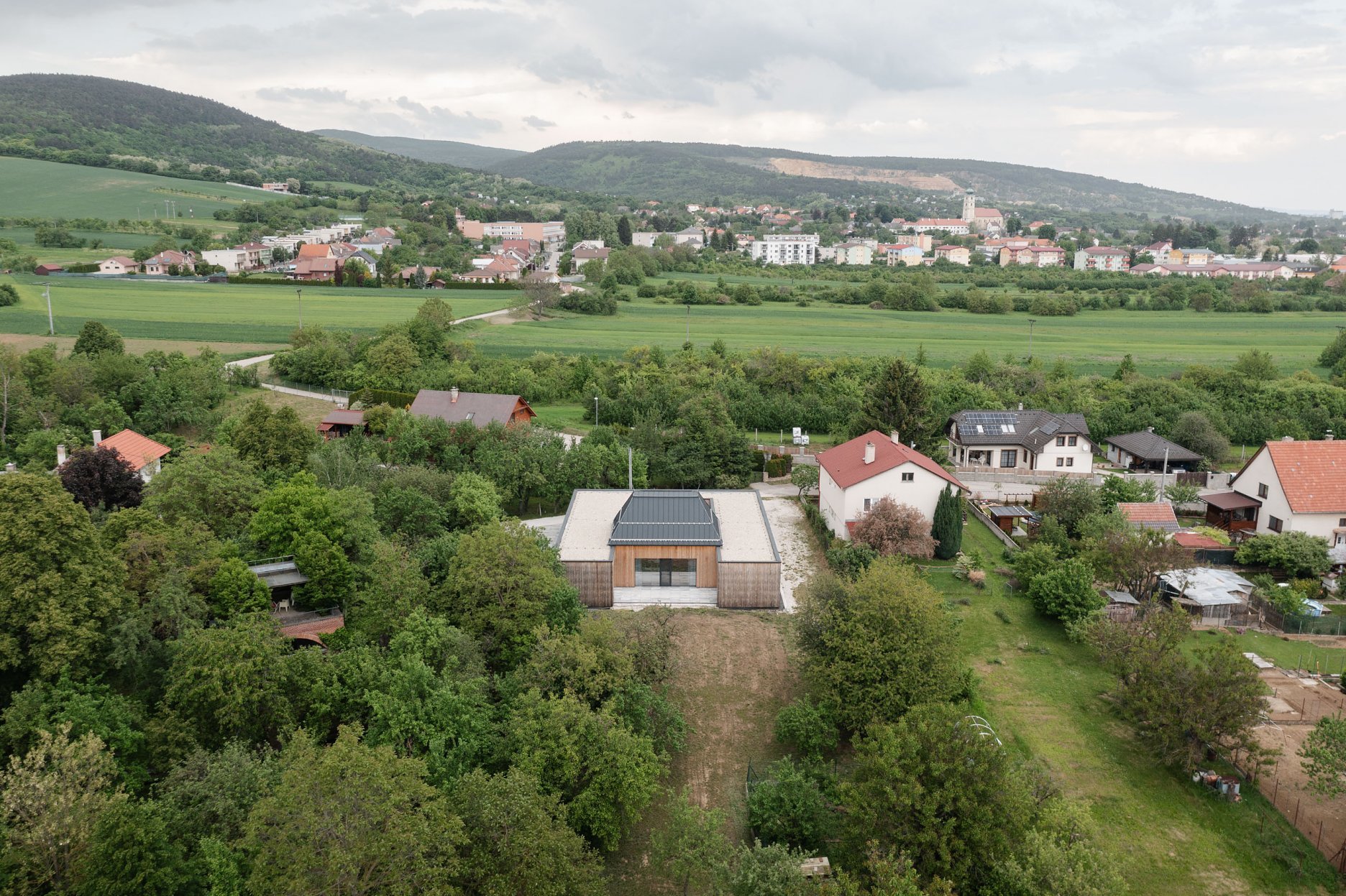 Stavebný pozemok sa nachádza v Čachticiach, v takej časti obce, akých sú typologicky a morfologicky na Slovensku tisíce - priestorová schéma = ulica + predzáhradka + dom + záhrada + sliepky / zajace. Okolitá zástavba je prevažne z 50. rokov 20. Storočia, kde spôsob života “práca vo fabrike versus práca v záhrade” bol reflektovaný v individuálnej výstavbe výsostne vo forme samostatných nezávislých stavebných entít bez subjektívnej potreby priestorového vyjadrenia v architektúre. Vo vnímaní bežného pracujúceho modernistické motto “prepojenie interiéru s exteriérom” v rodinných domoch nejestvovalo, pretože nemalo racionálne opodstatnenie v reálnych životoch obyvateľov týchto domov.