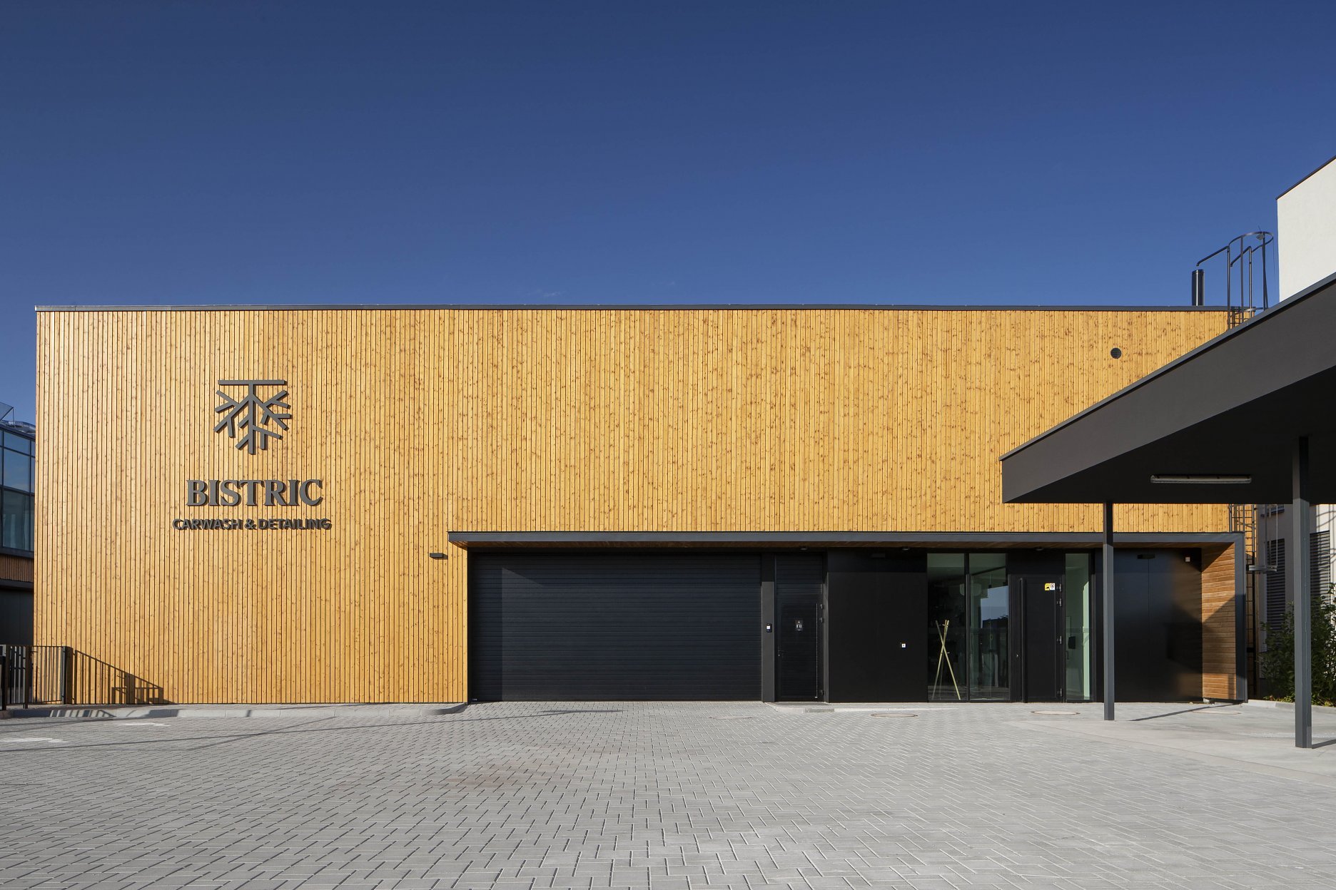 Architekti z ateliéru cakov + partners pracujú so zrejmým kompozičným rámcom. Striedajú veľkoplošný smrekovcový obklad a presklené fasády, bez ďalších drobných perforácií. Funkčná a hmotová skladba projektu Bistric je ľahko čitateľná aj vďaka zrozumiteľnému akcentovaniu vstupov do oboch prevádzkových blokov, ktoré tvoria nečakane fungujúci koherentný celok.